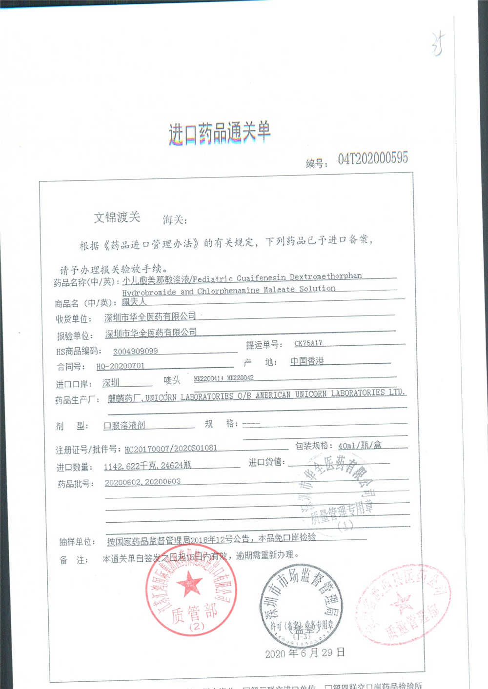 小儿愈美那敏溶液 | 40ml | 20200604(2/4) | 查看详情 |