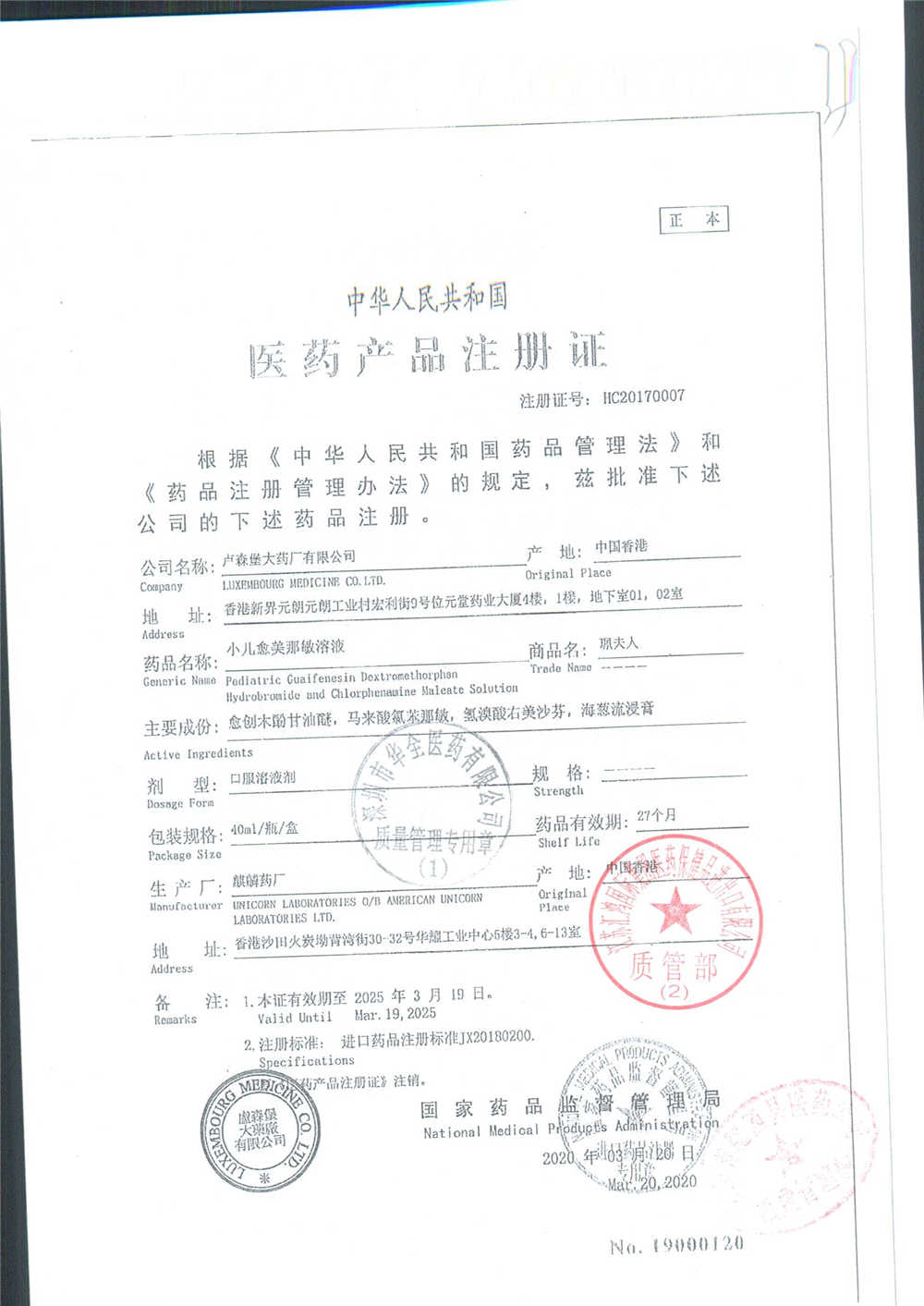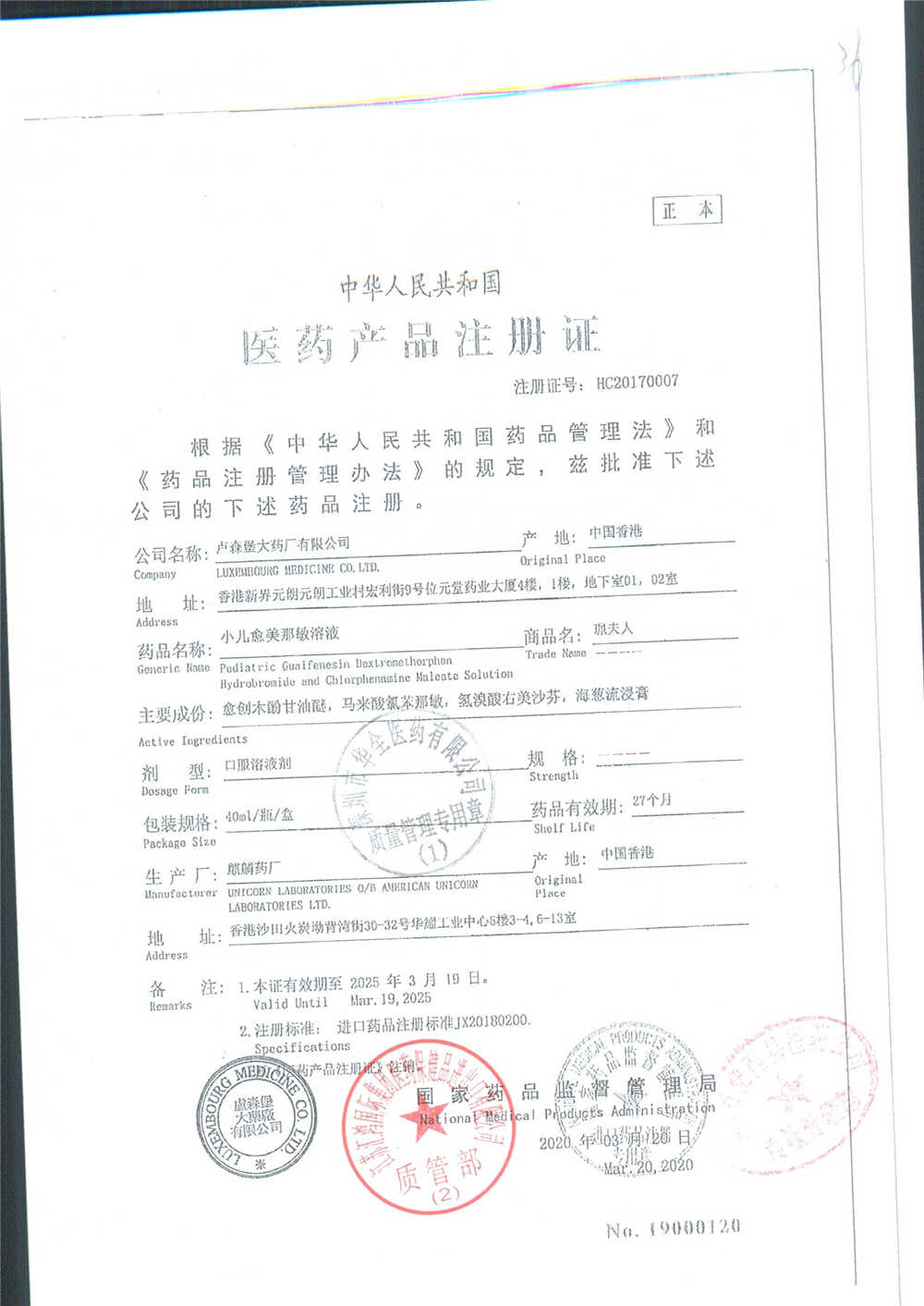 小儿愈美那敏溶液 | 40ml | 20200701(4/4) | 查看详情 |