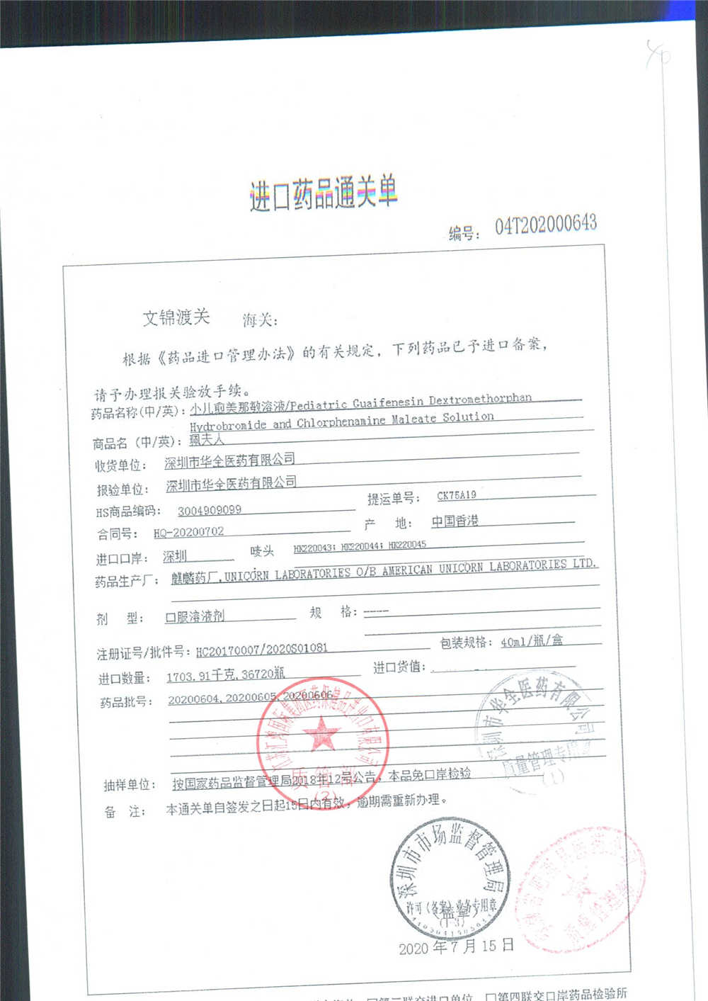 小儿愈美那敏溶液 | 40ml | 20200706(4/4) | 查看详情 |