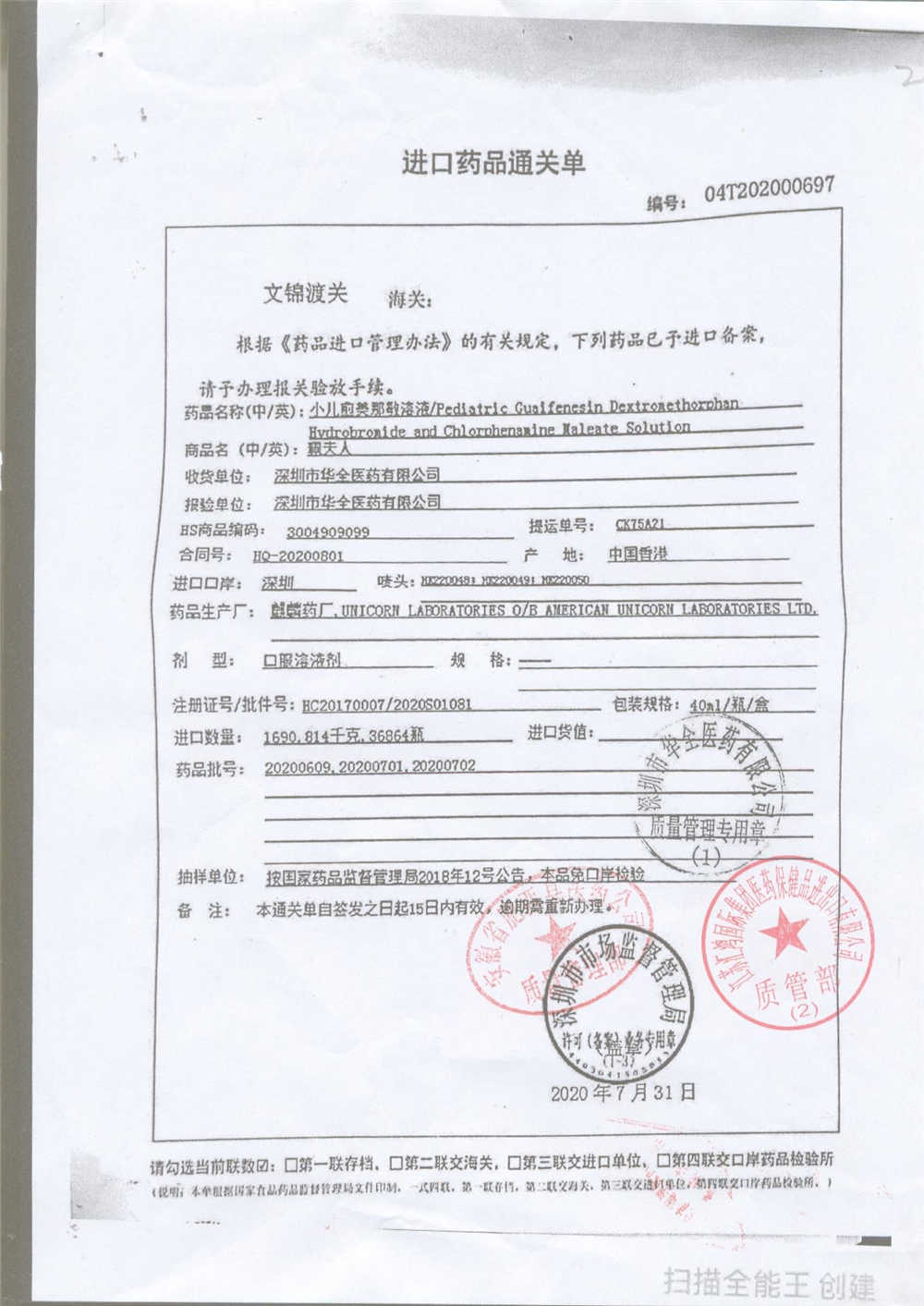 小儿愈美那敏溶液 | 40ml | 20200604(4/4) | 查看详情 |