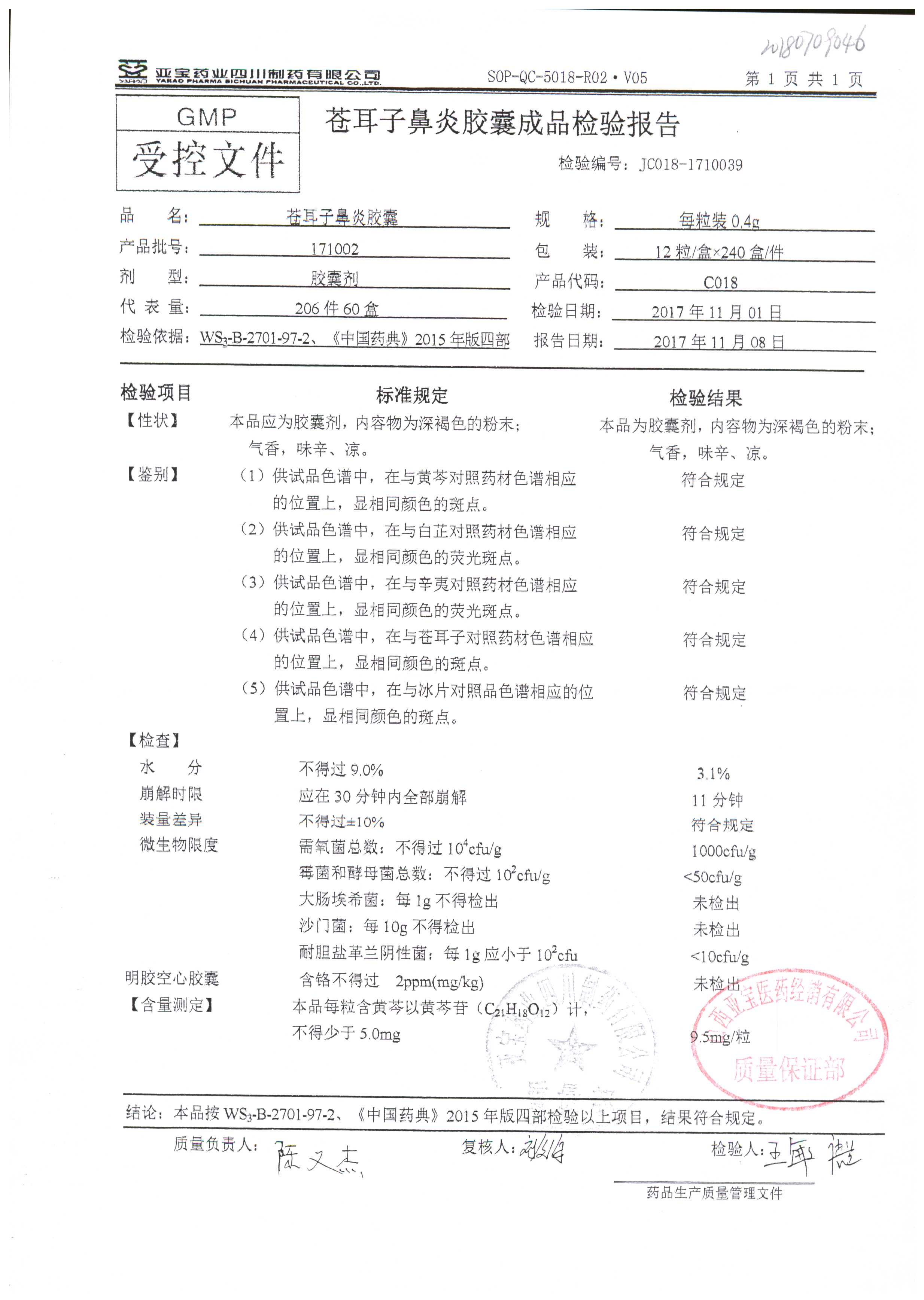 药检报告
