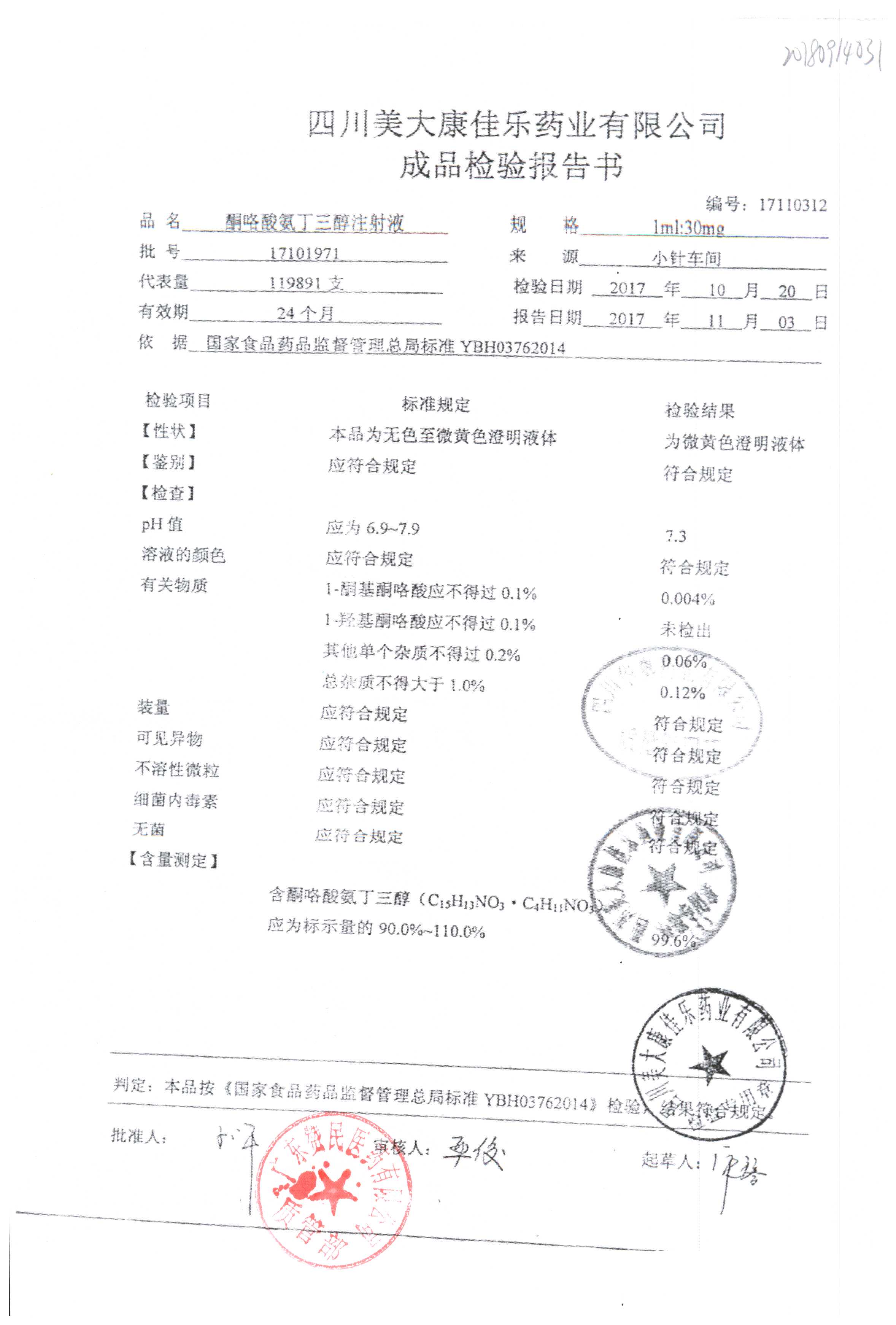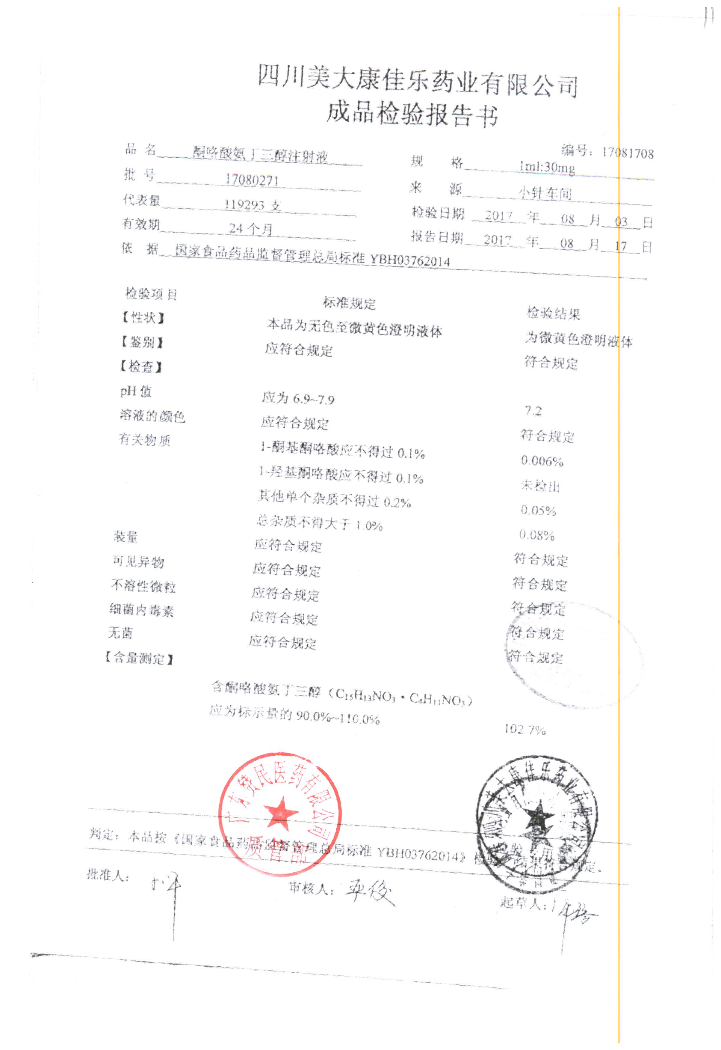 酮咯酸氨丁三醇注射液 | 1ml:30mg | 17101971 | 查看详情 |