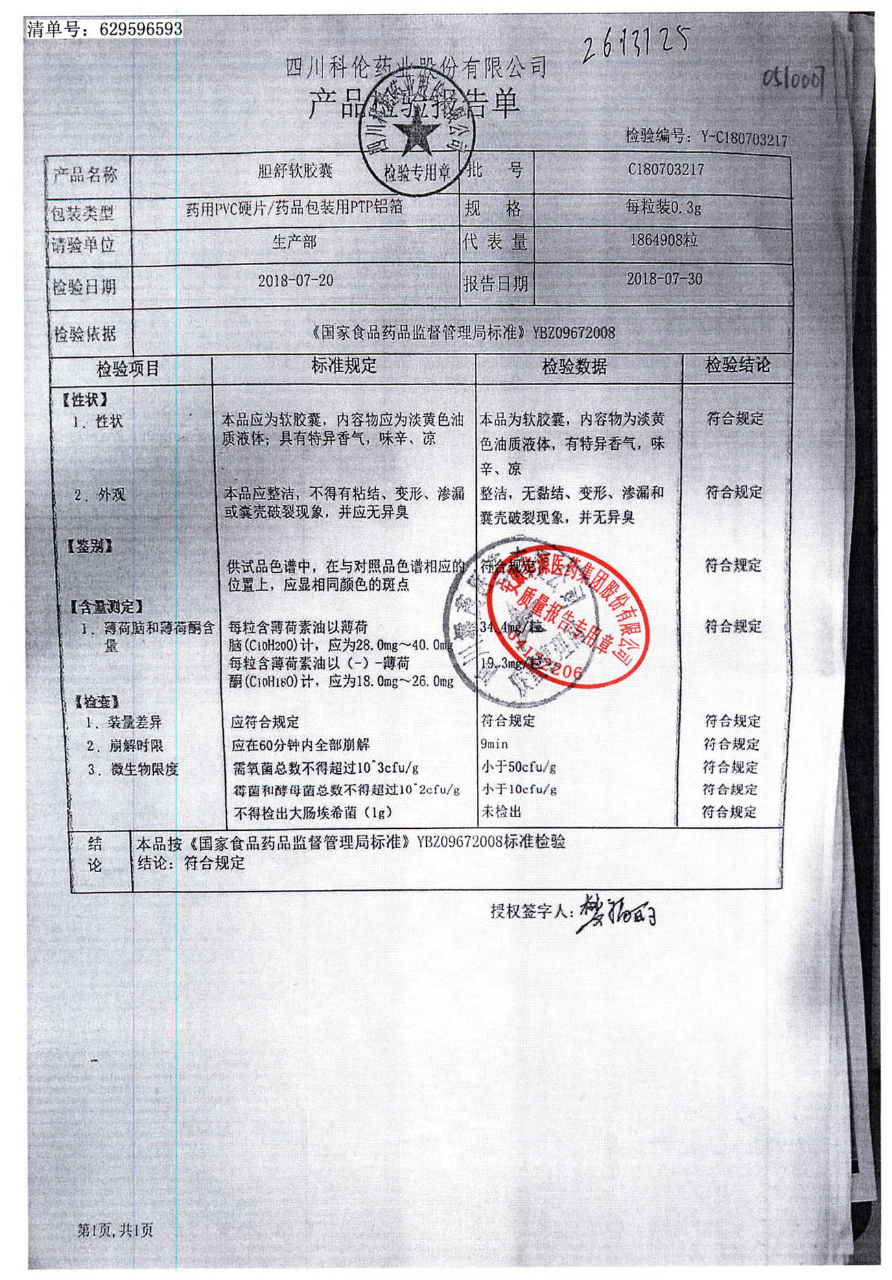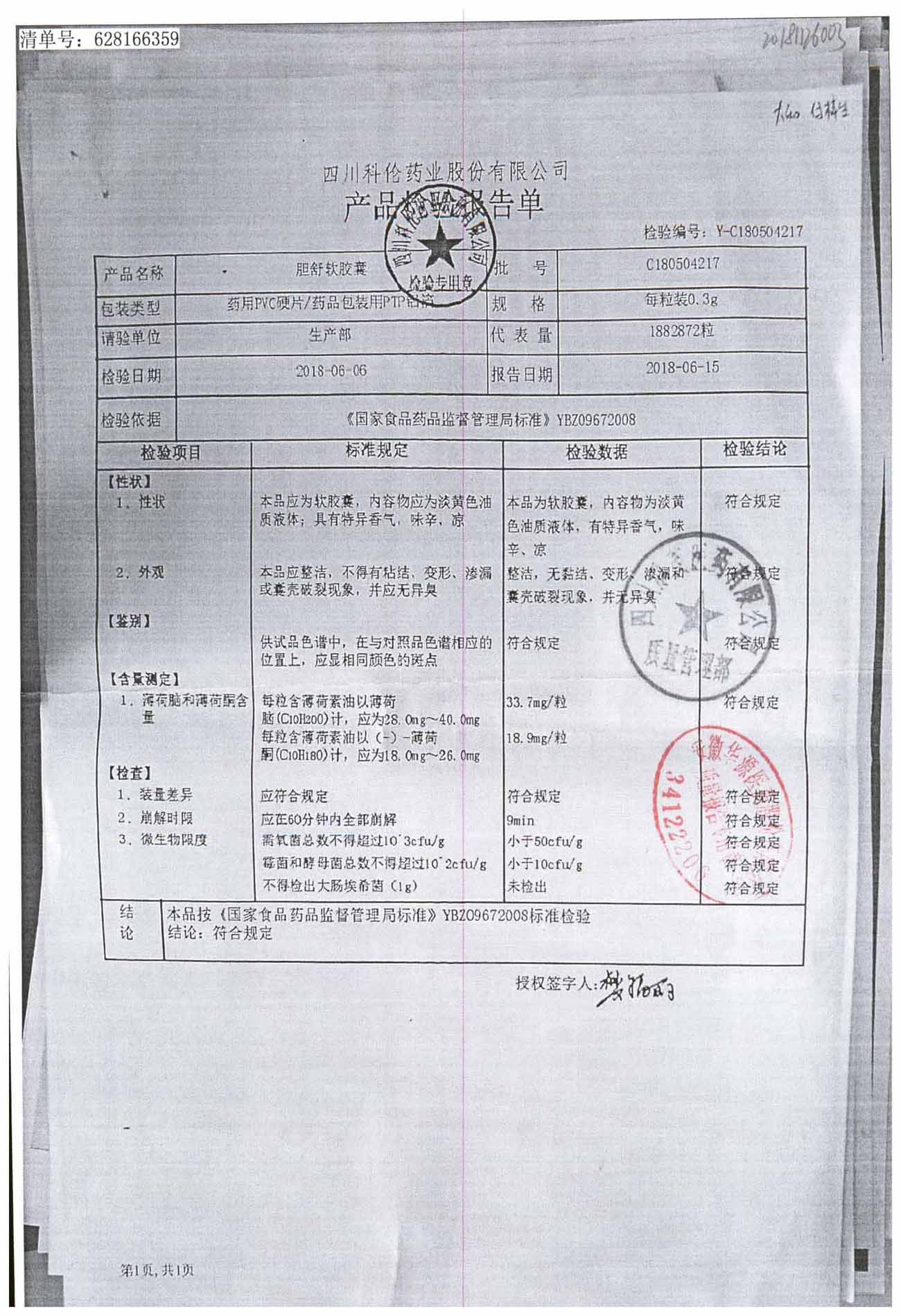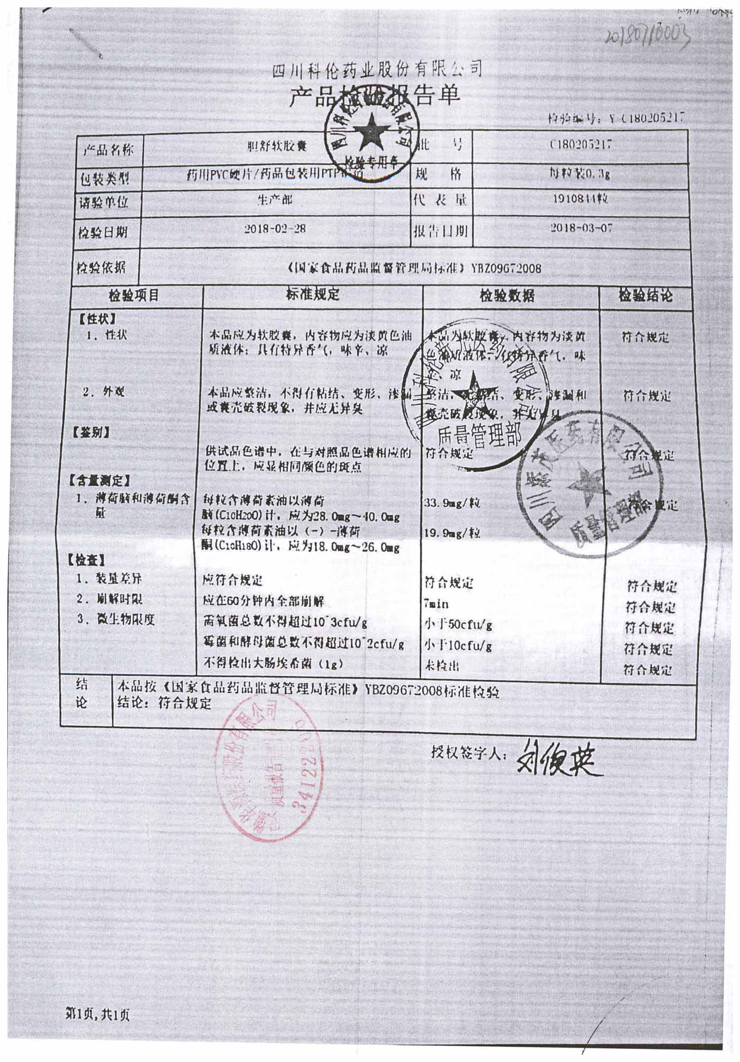 胆舒软胶囊 | 0.3g | C180205217(2/2) | 查看详情 |