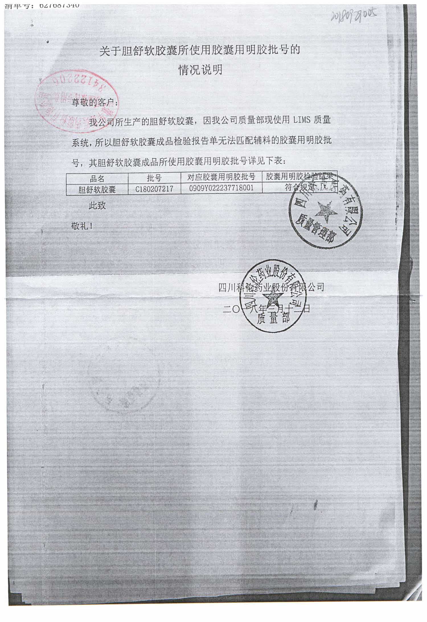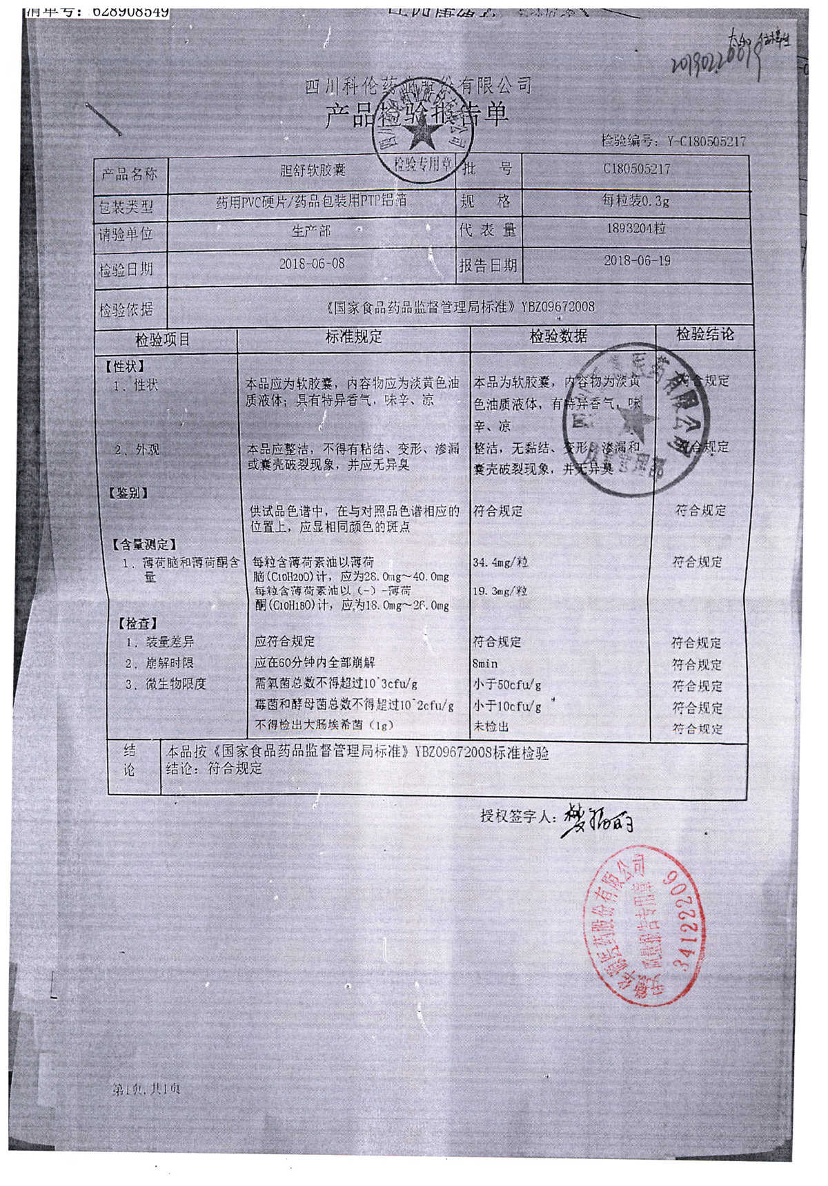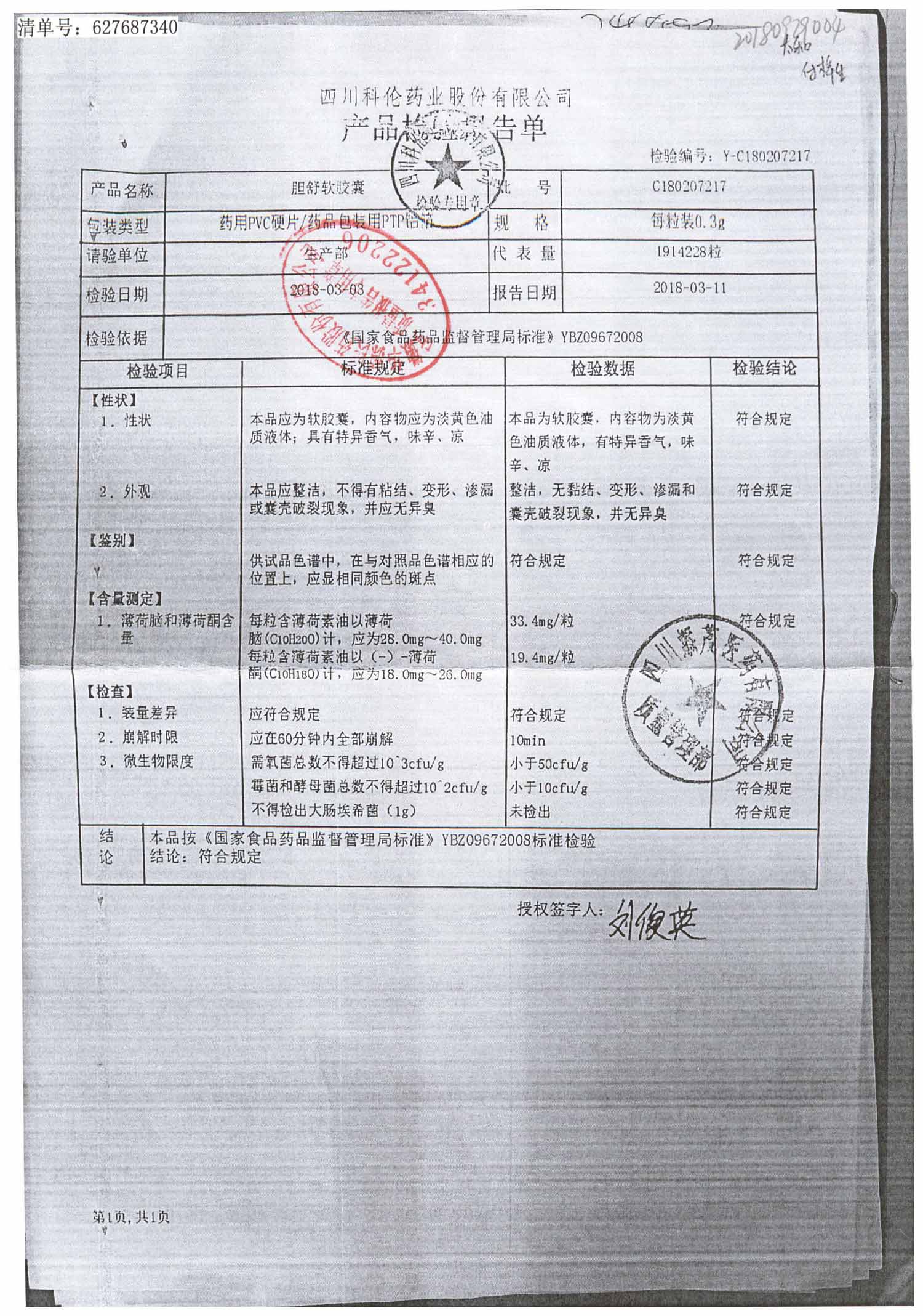 胆舒软胶囊 | 0.3g | C180205217(2/2) | 查看详情 |