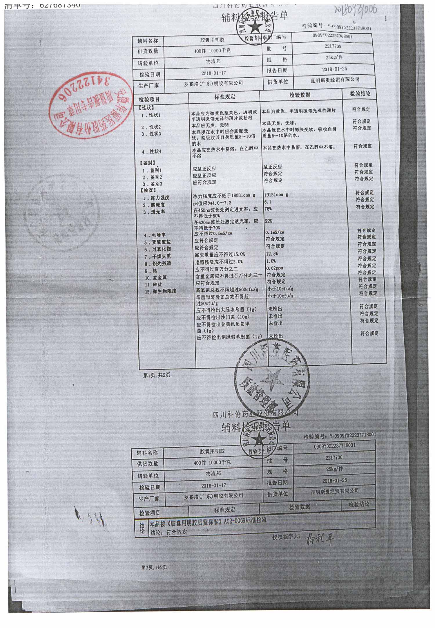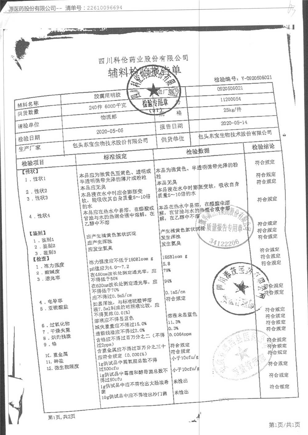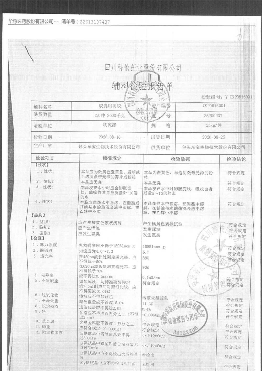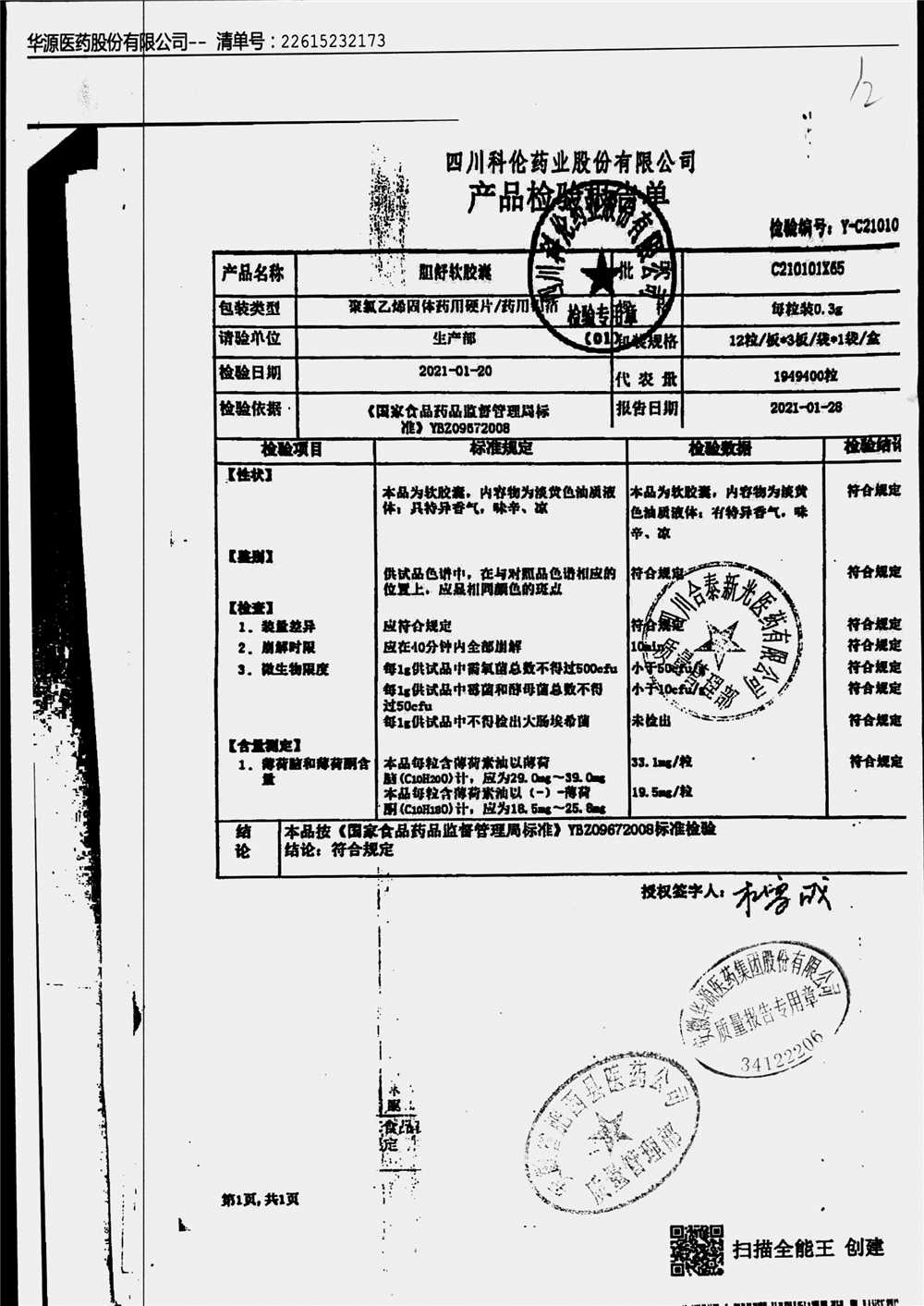 名称 | 规格 | 批号 | 药检报告 |