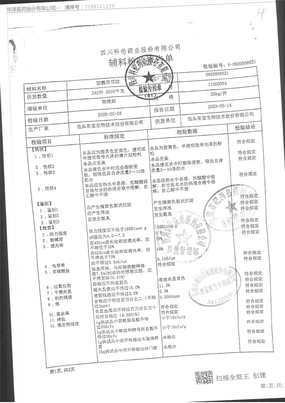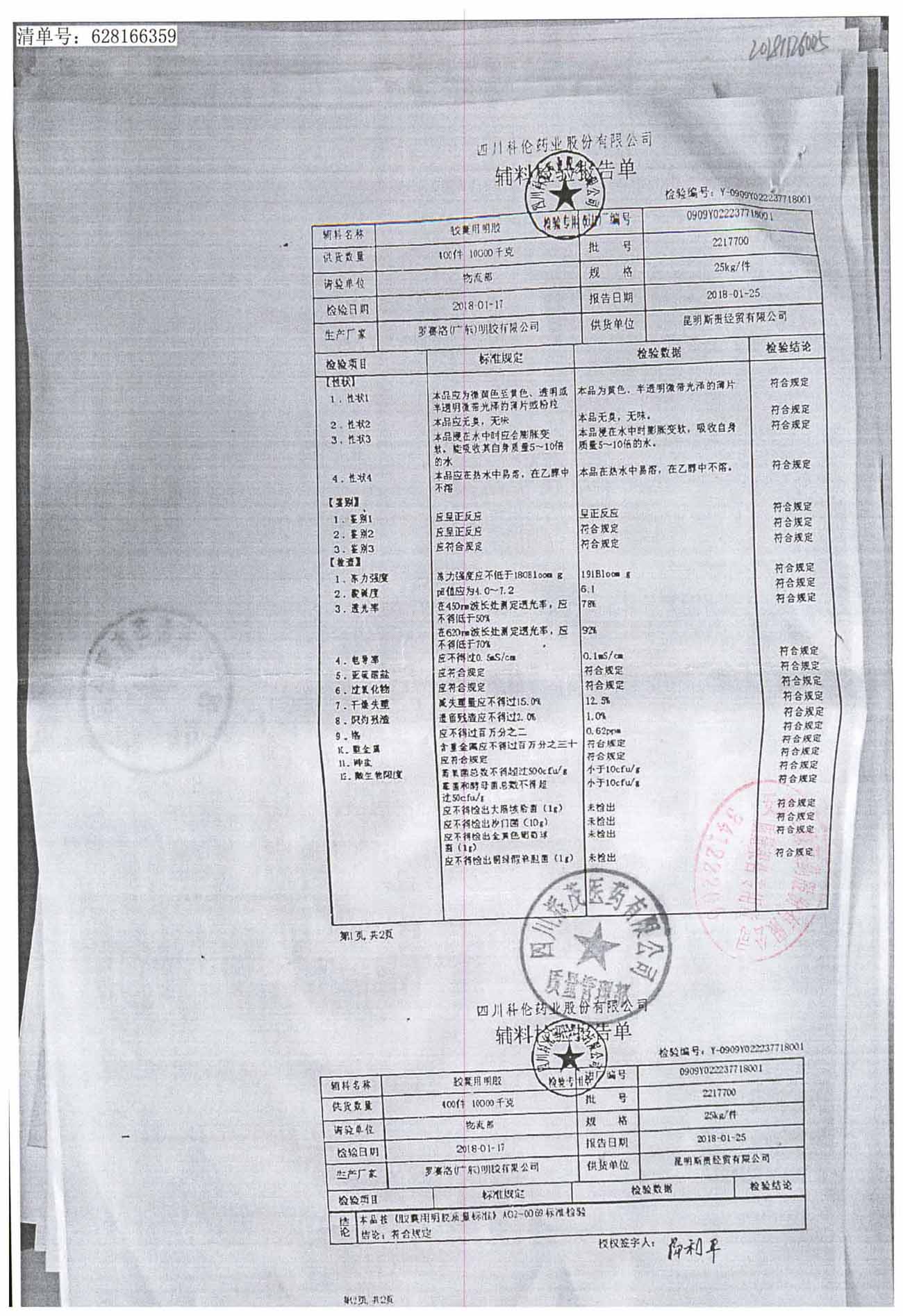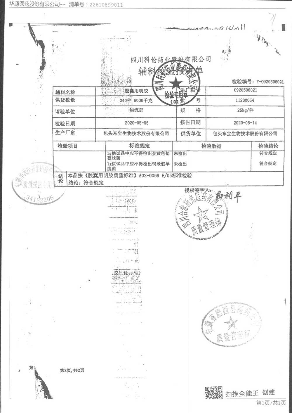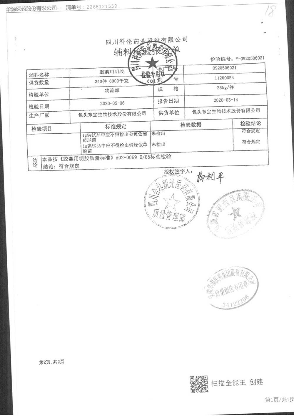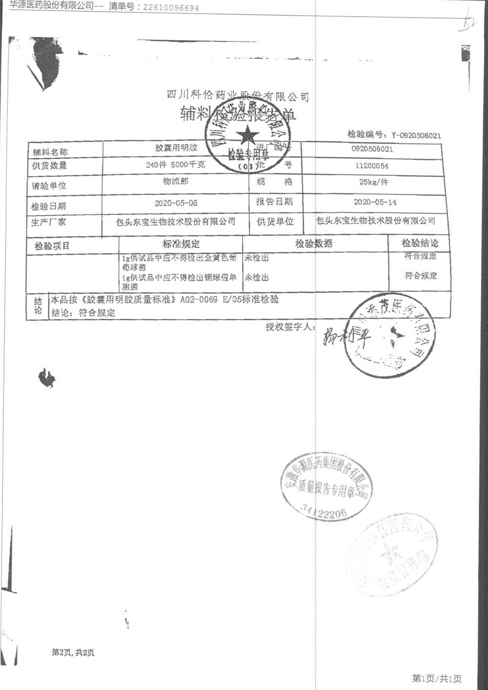 名称 | 规格 | 批号 | 药检报告 |