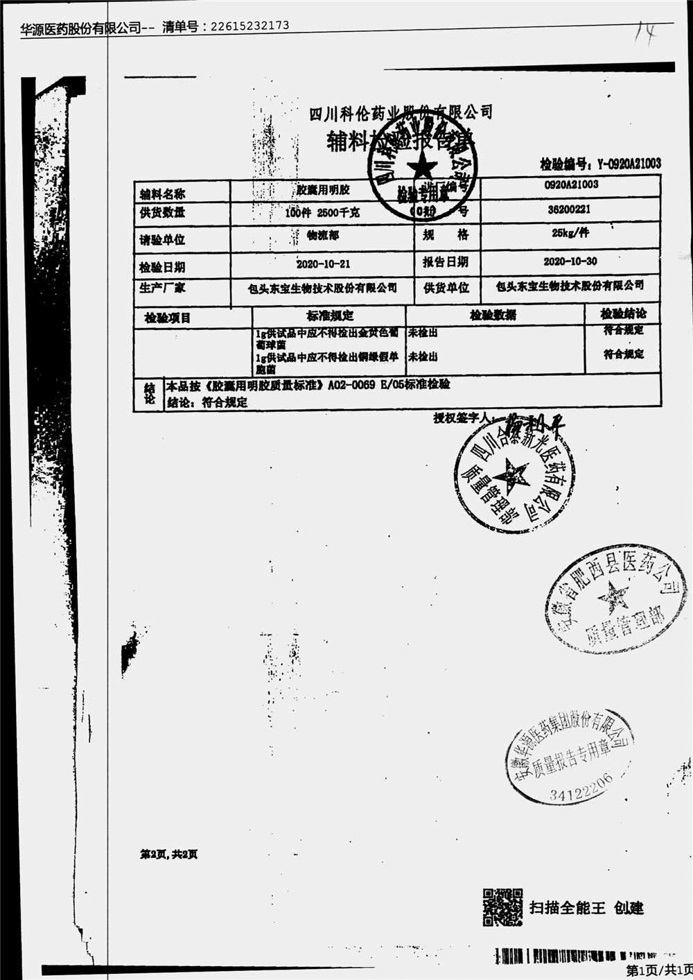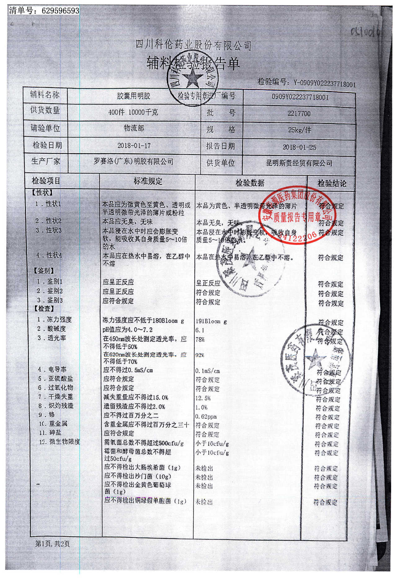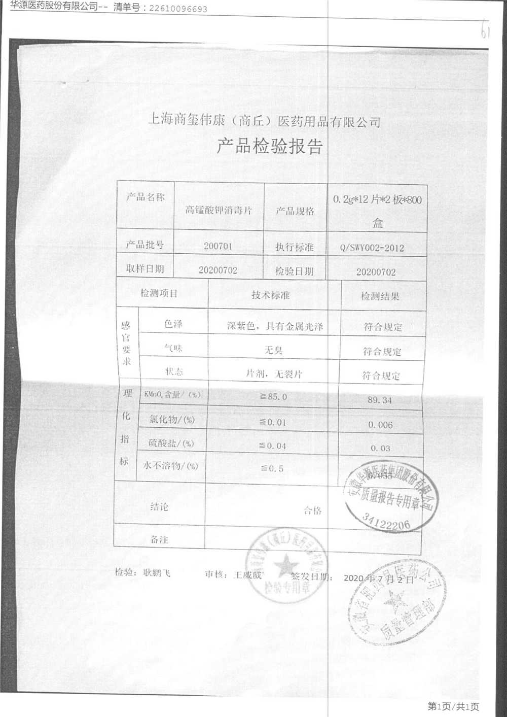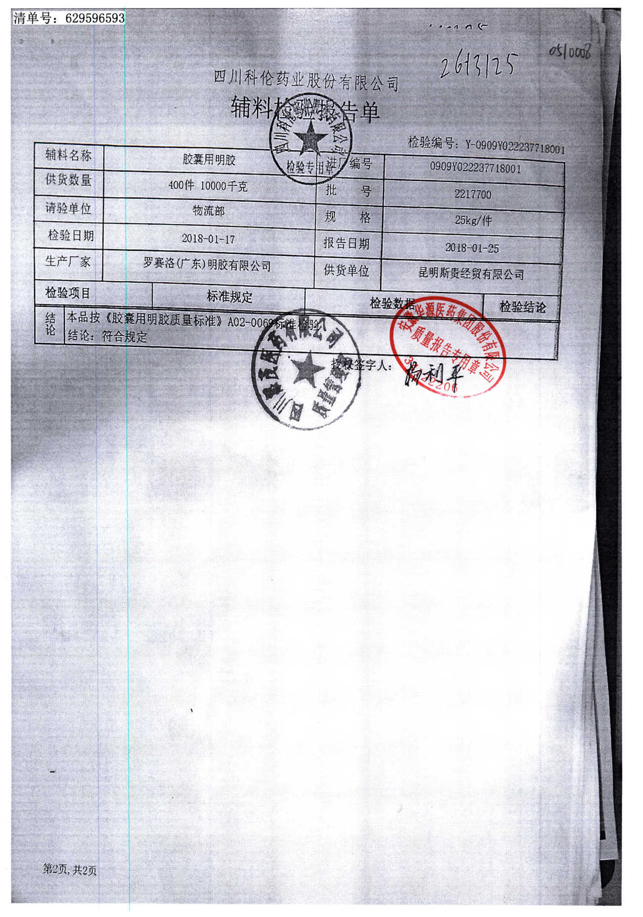 名称 | 规格 | 批号 | 药检报告 |