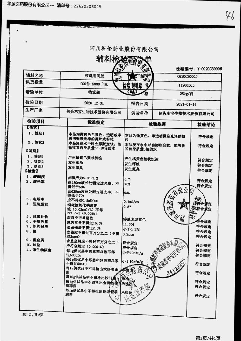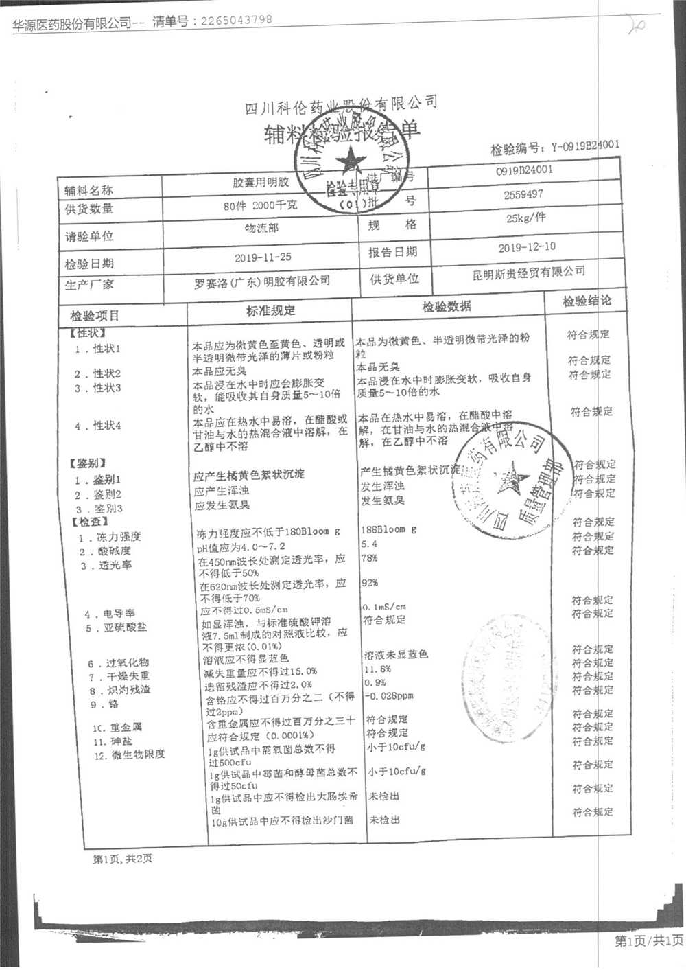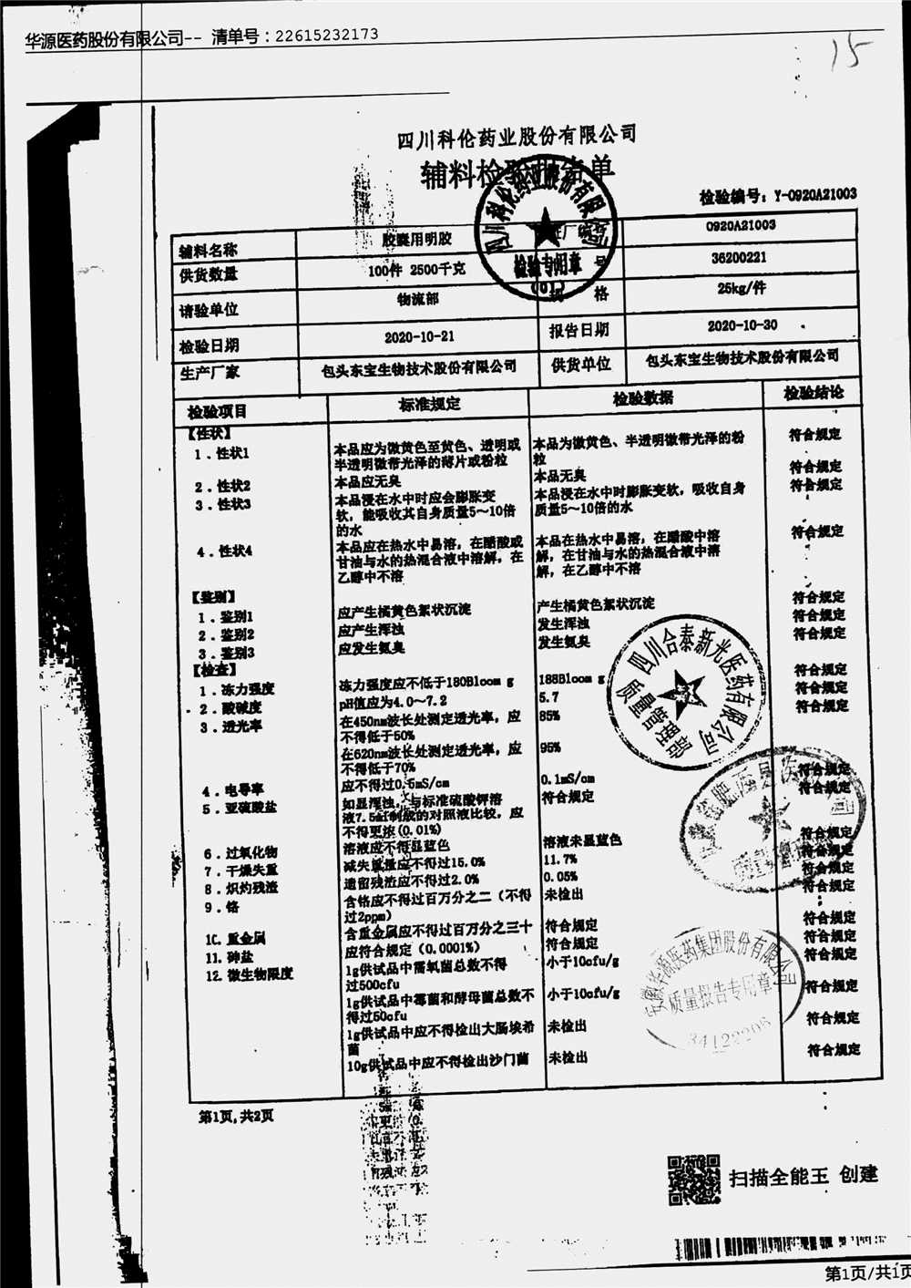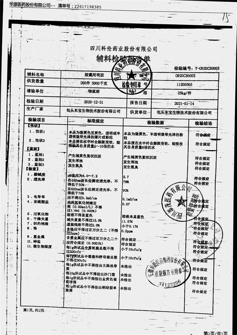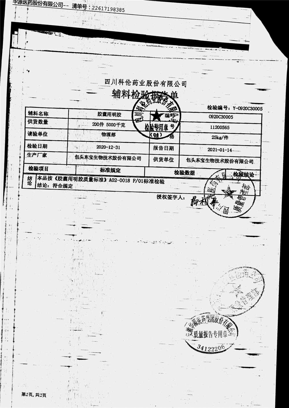 名称 | 规格 | 批号 | 药检报告 |