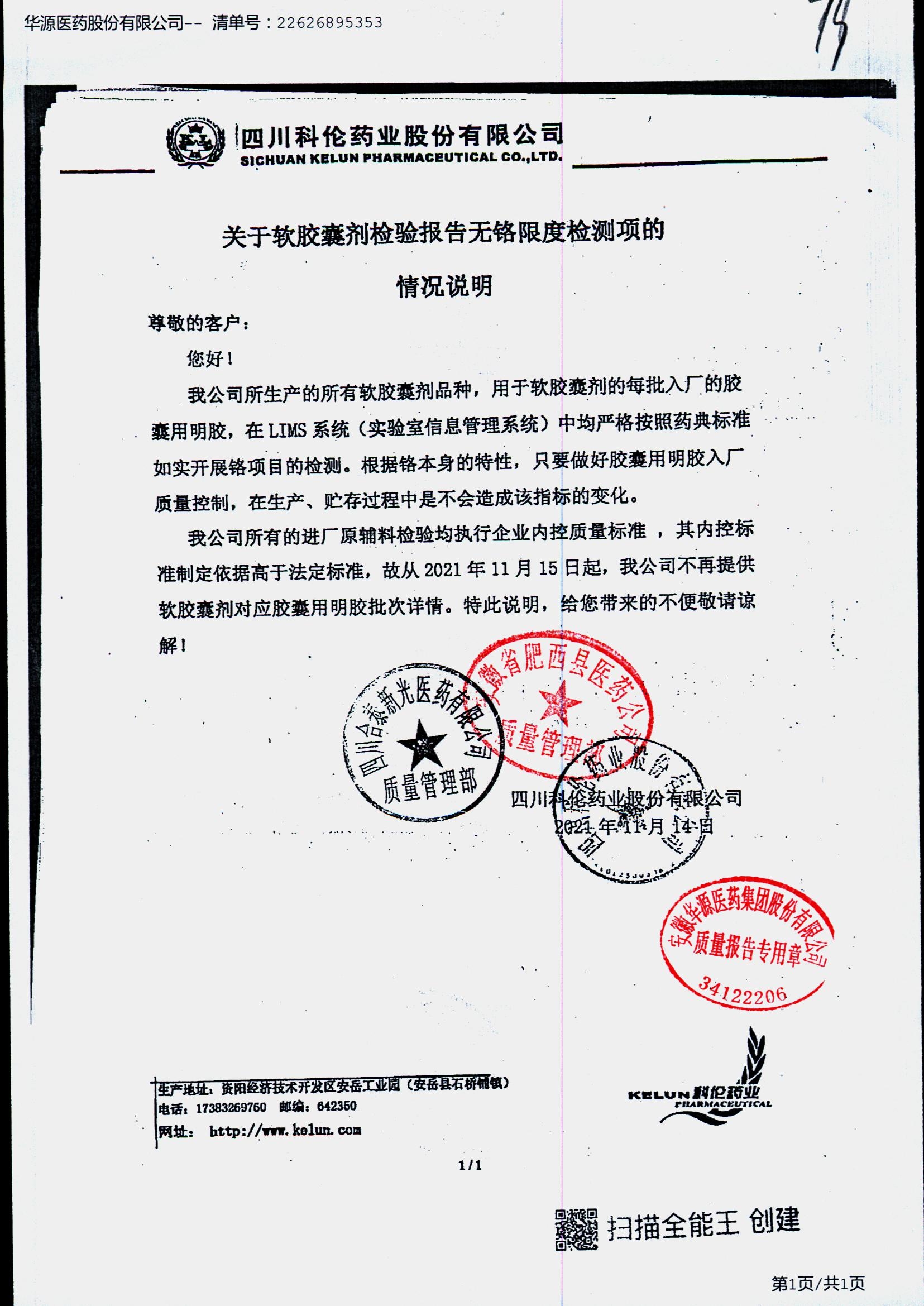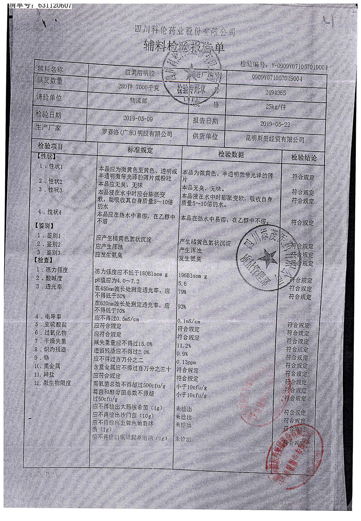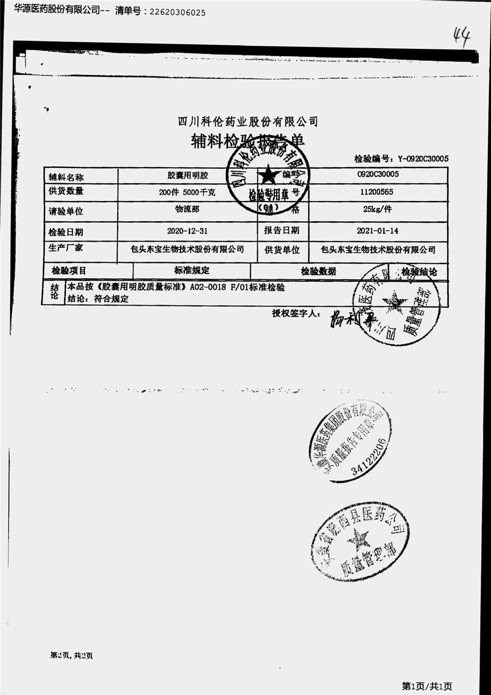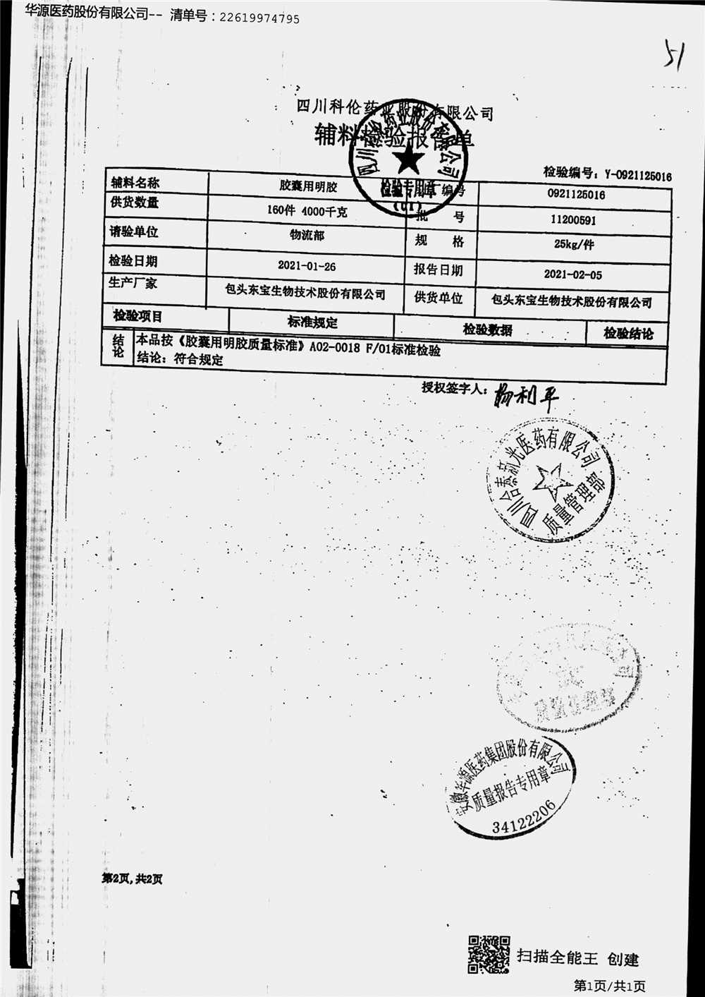 名称 | 规格 | 批号 | 药检报告 |