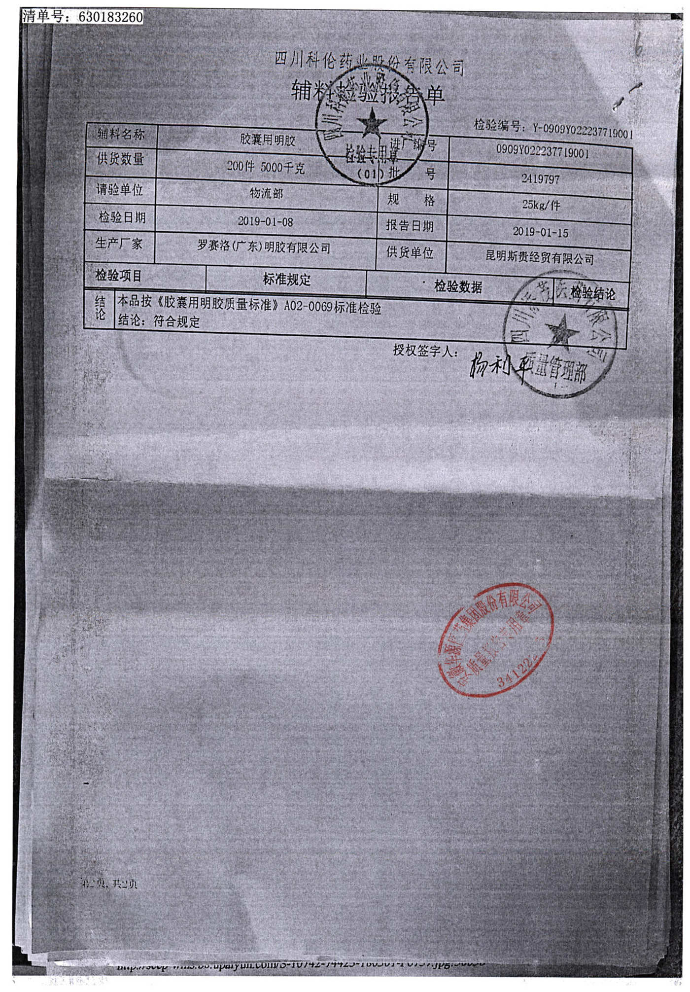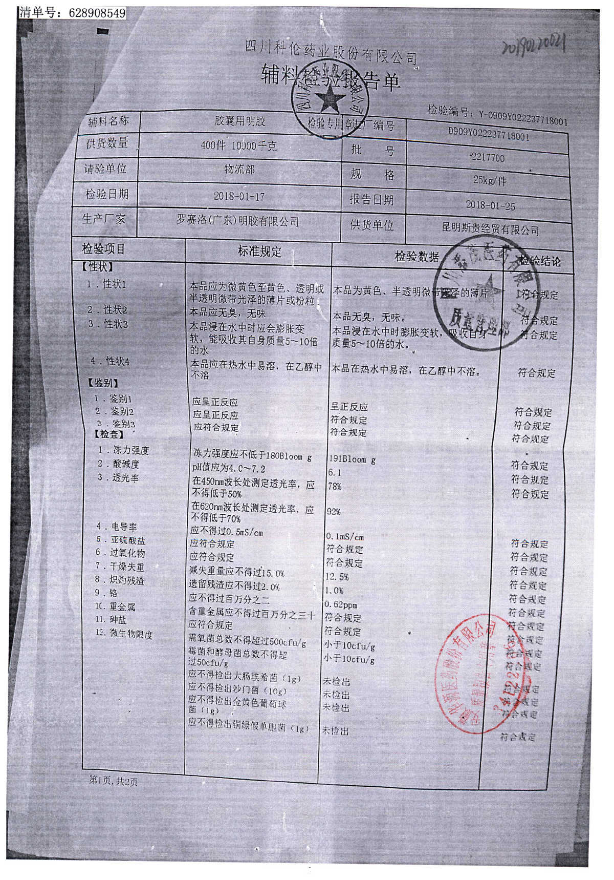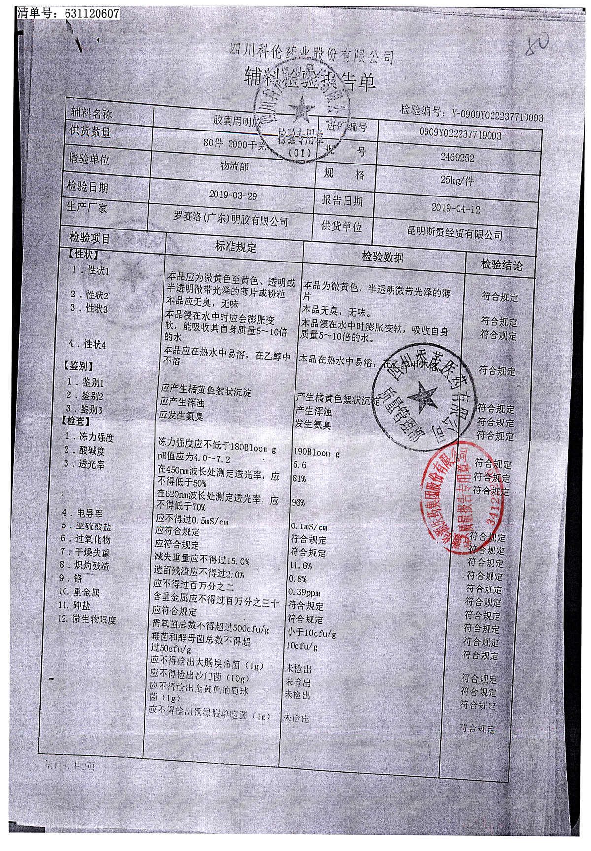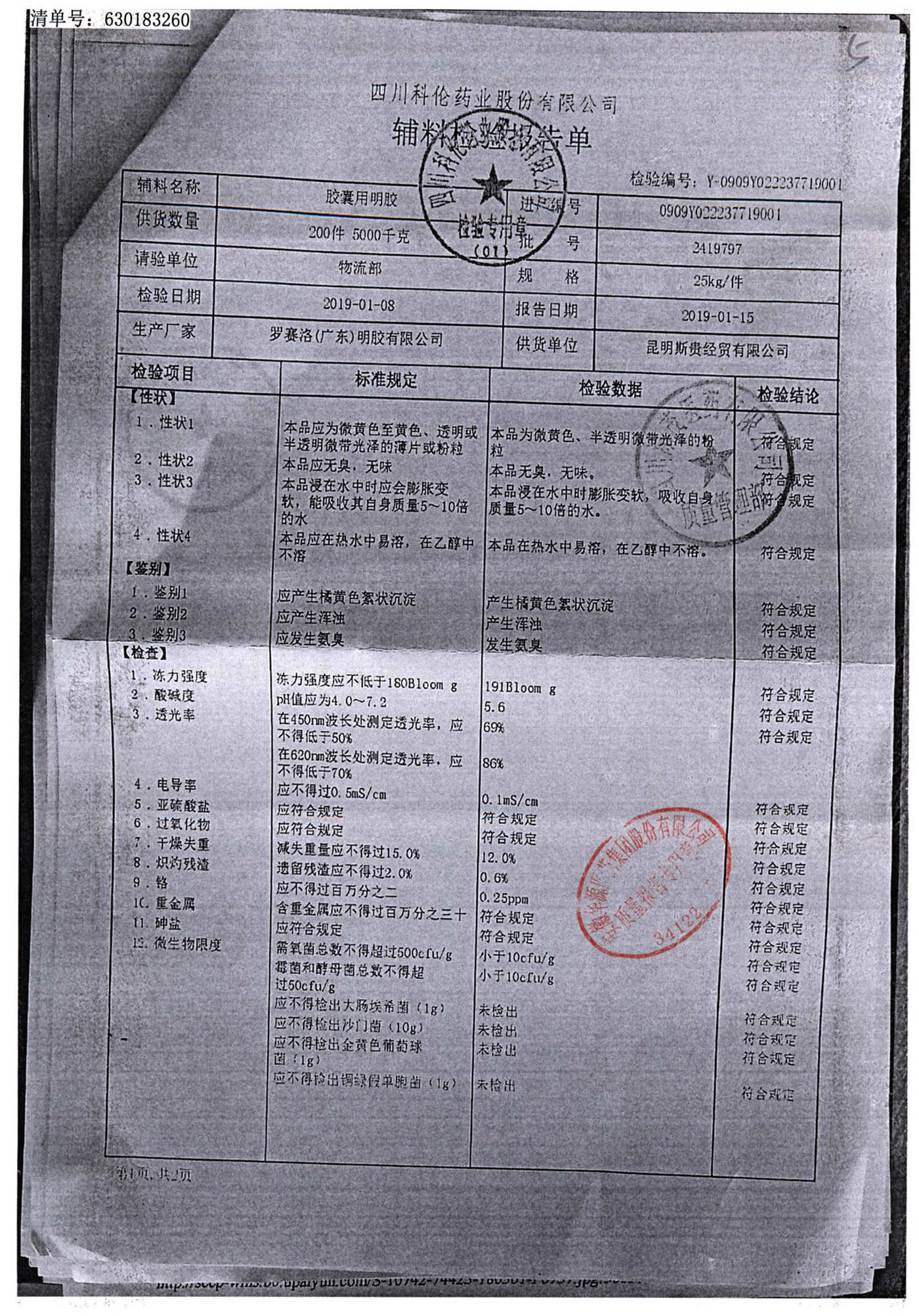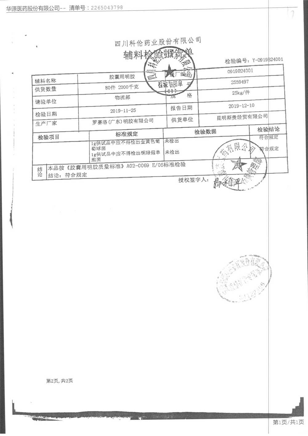名称 | 规格 | 批号 | 药检报告 |