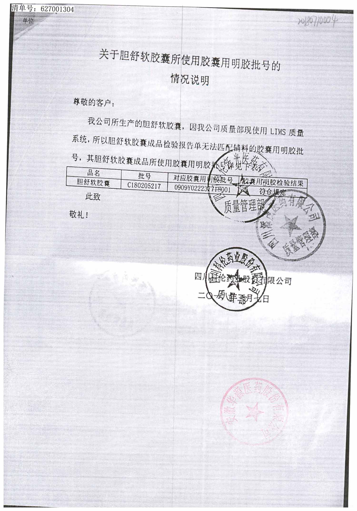 胆舒软胶囊 | 0.3g | C180703217(3/4) | 查看详情 |