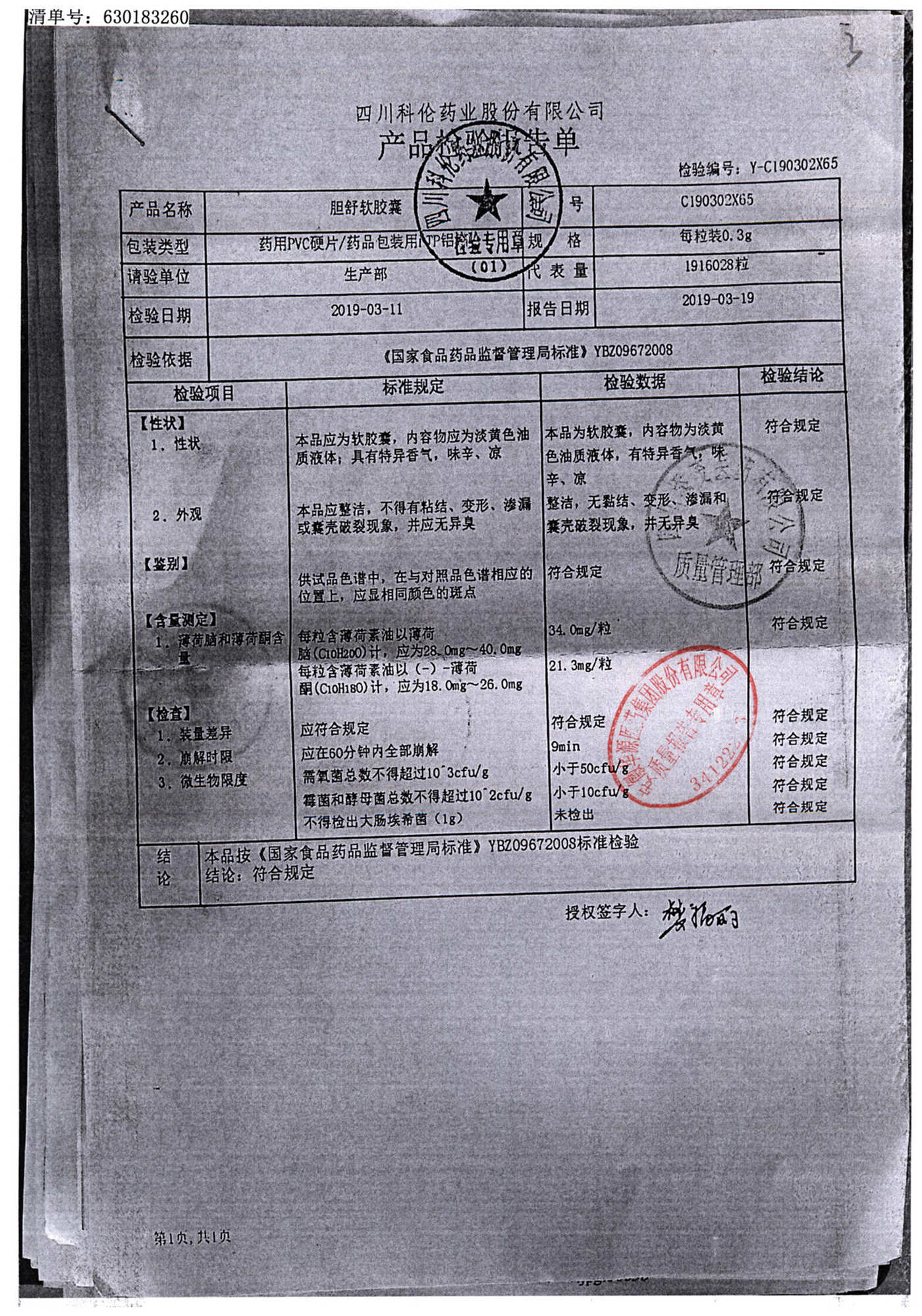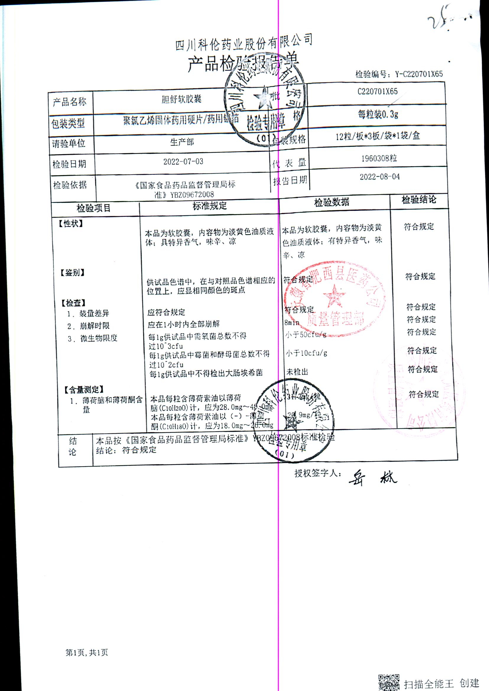 胆舒软胶囊 | 0.3g | C201101X65(2/2) | 查看详情 |