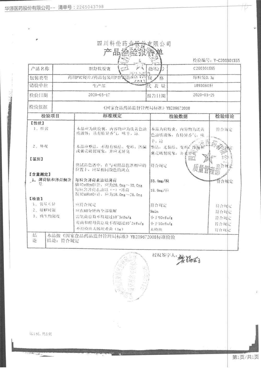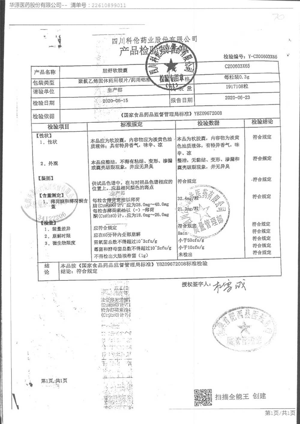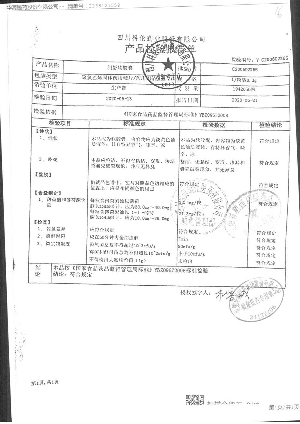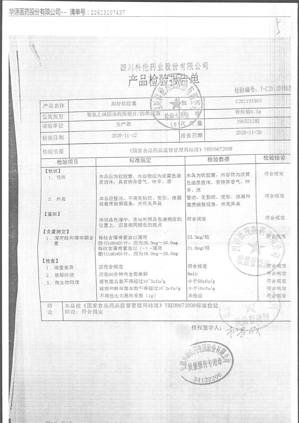 胆舒软胶囊 | 0.3g | C200508C65(4/5) | 查看详情 |