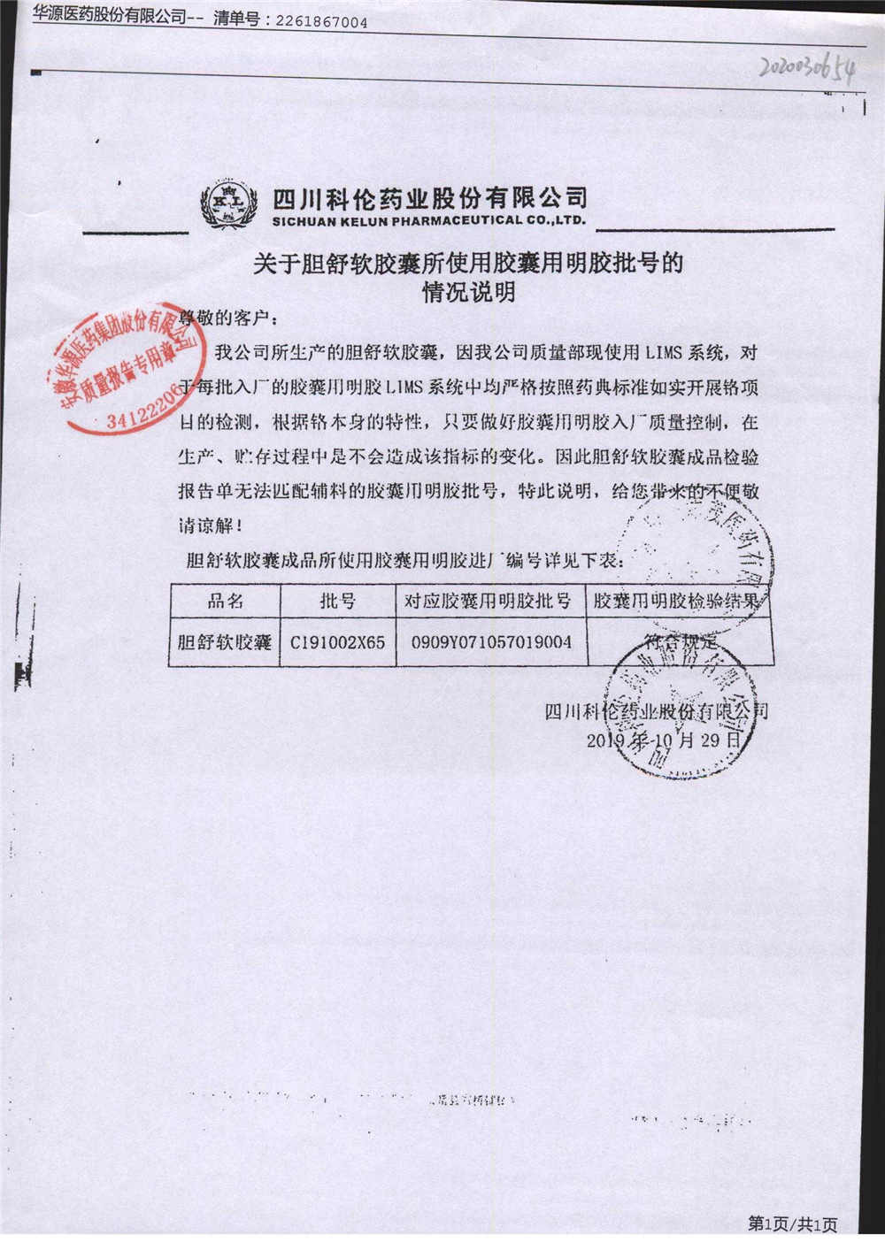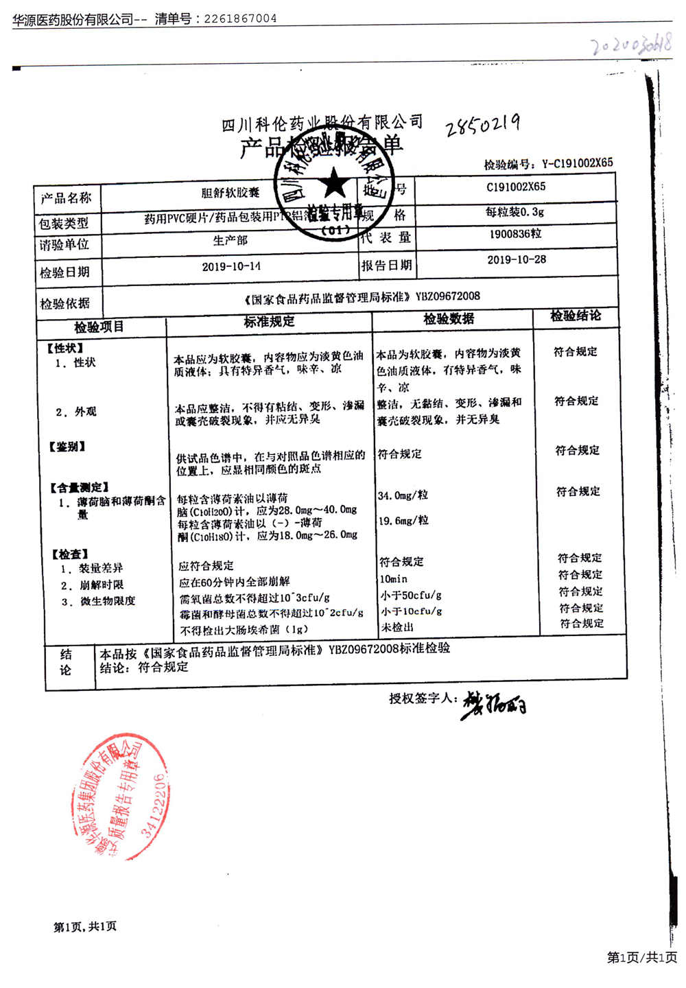 胆舒软胶囊 | 0.3g | C191002X65(2/2) | 查看详情 |