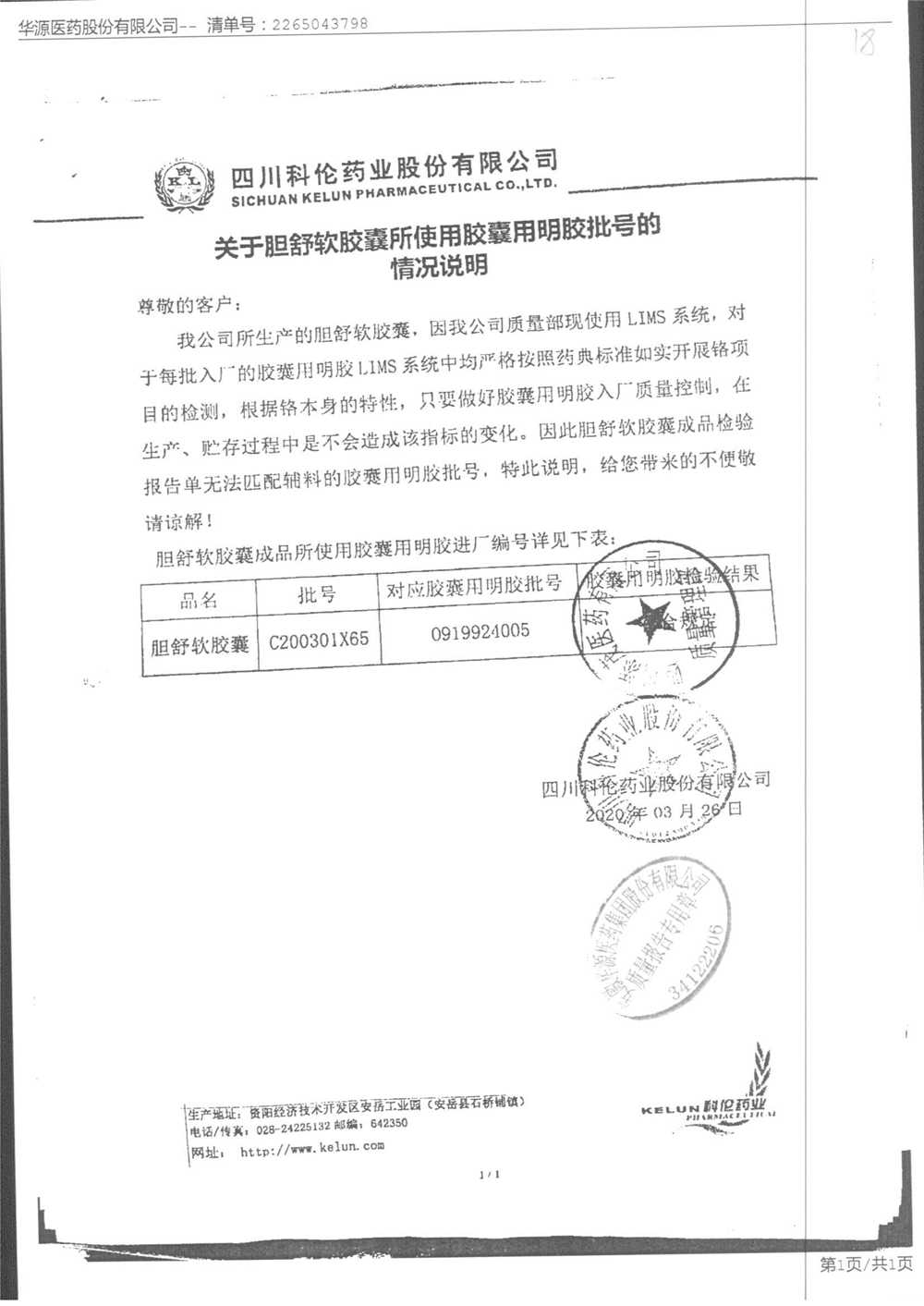 胆舒软胶囊 | 0.3g | C180505217(2/3) | 查看详情 |