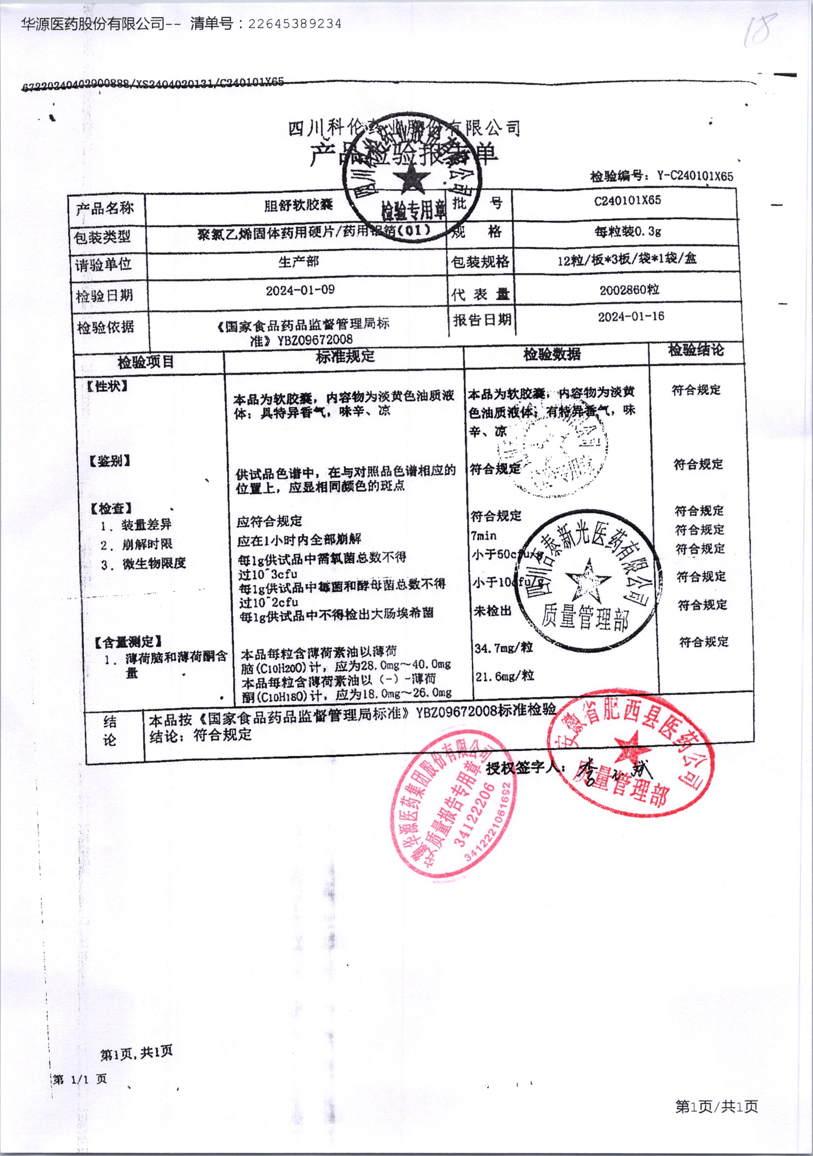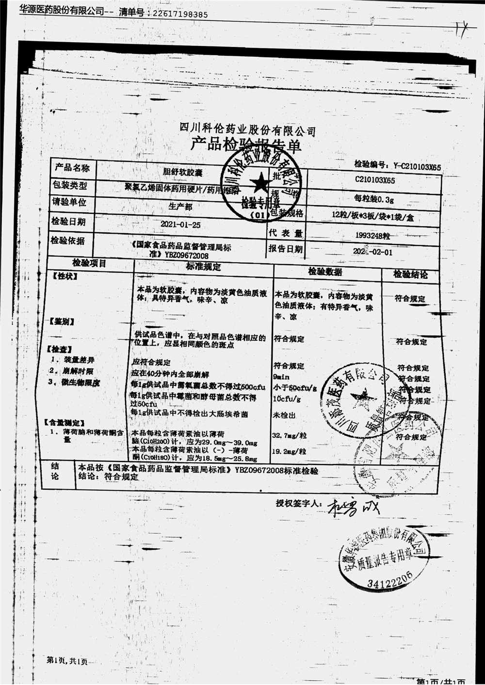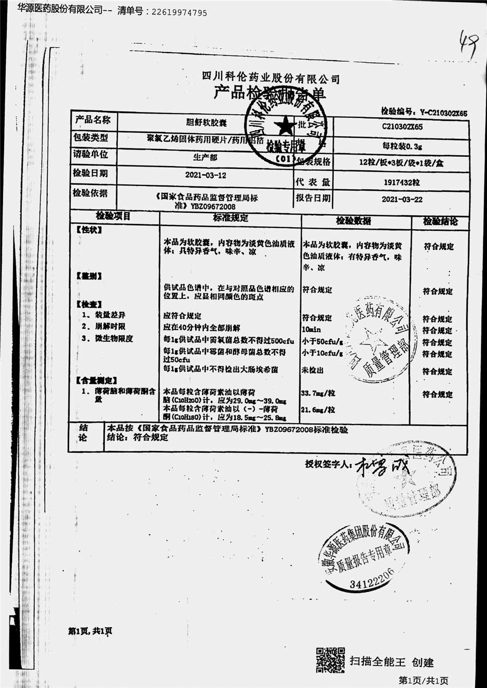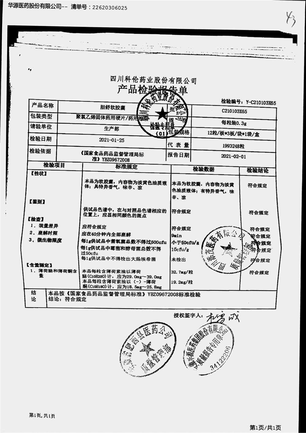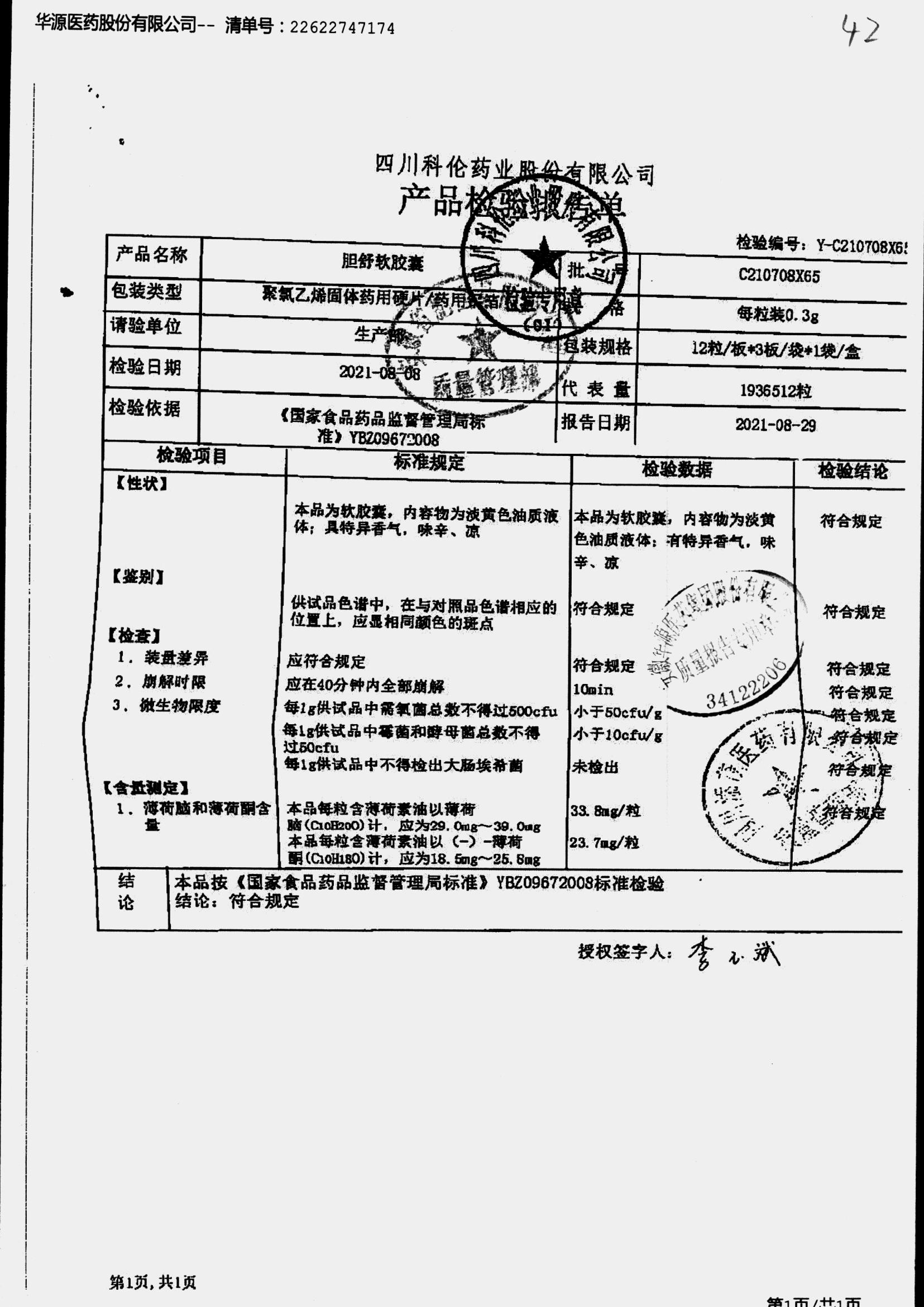 胆舒软胶囊 | 0.3g | C210103X65(4/4) | 查看详情 |