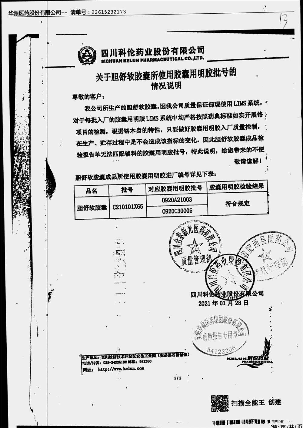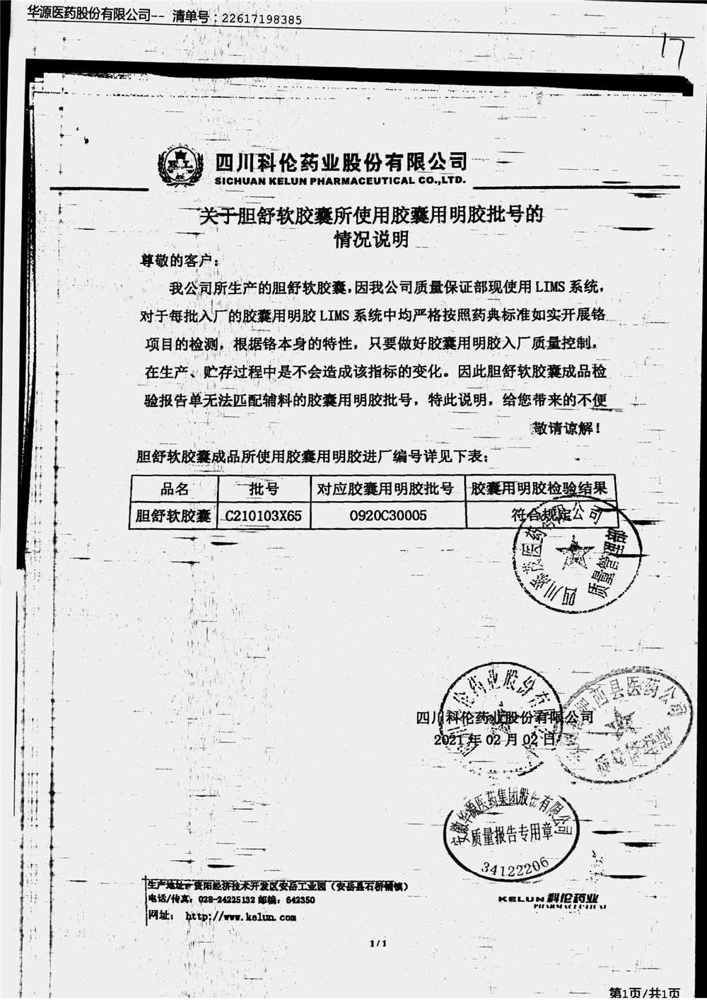 胆舒软胶囊 | 0.3g | C180205217(1/2) | 查看详情 |