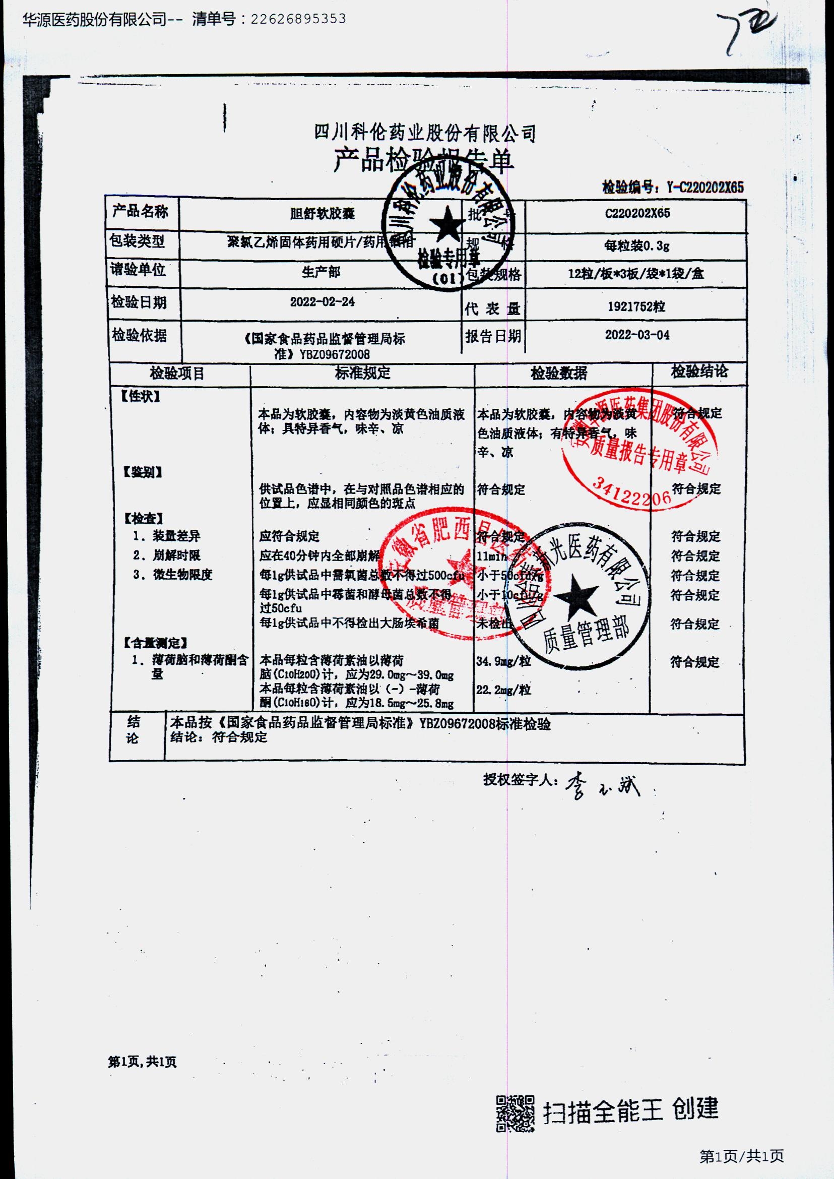 胆舒软胶囊 | 0.3g | C200602X65(2/4) | 查看详情 |