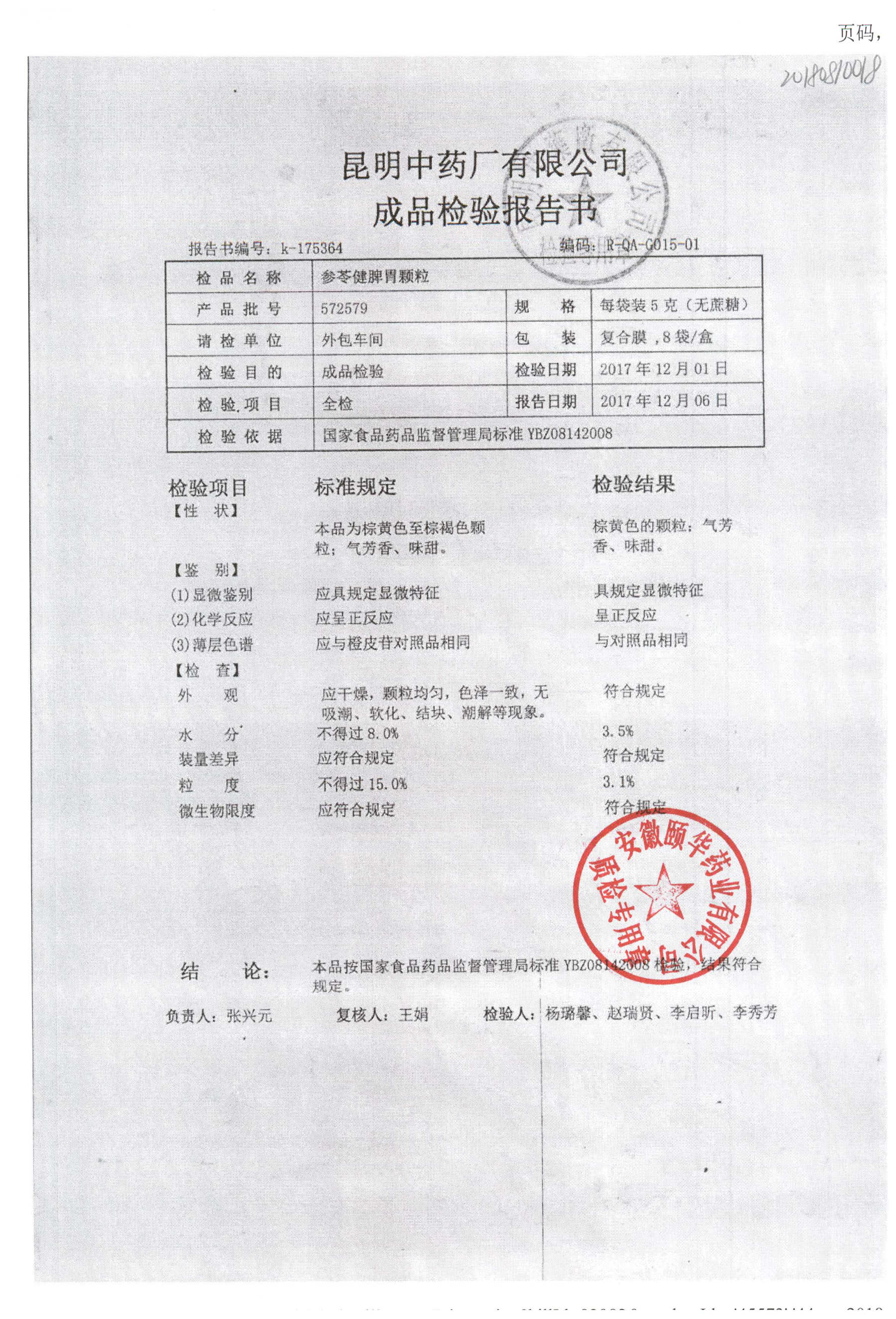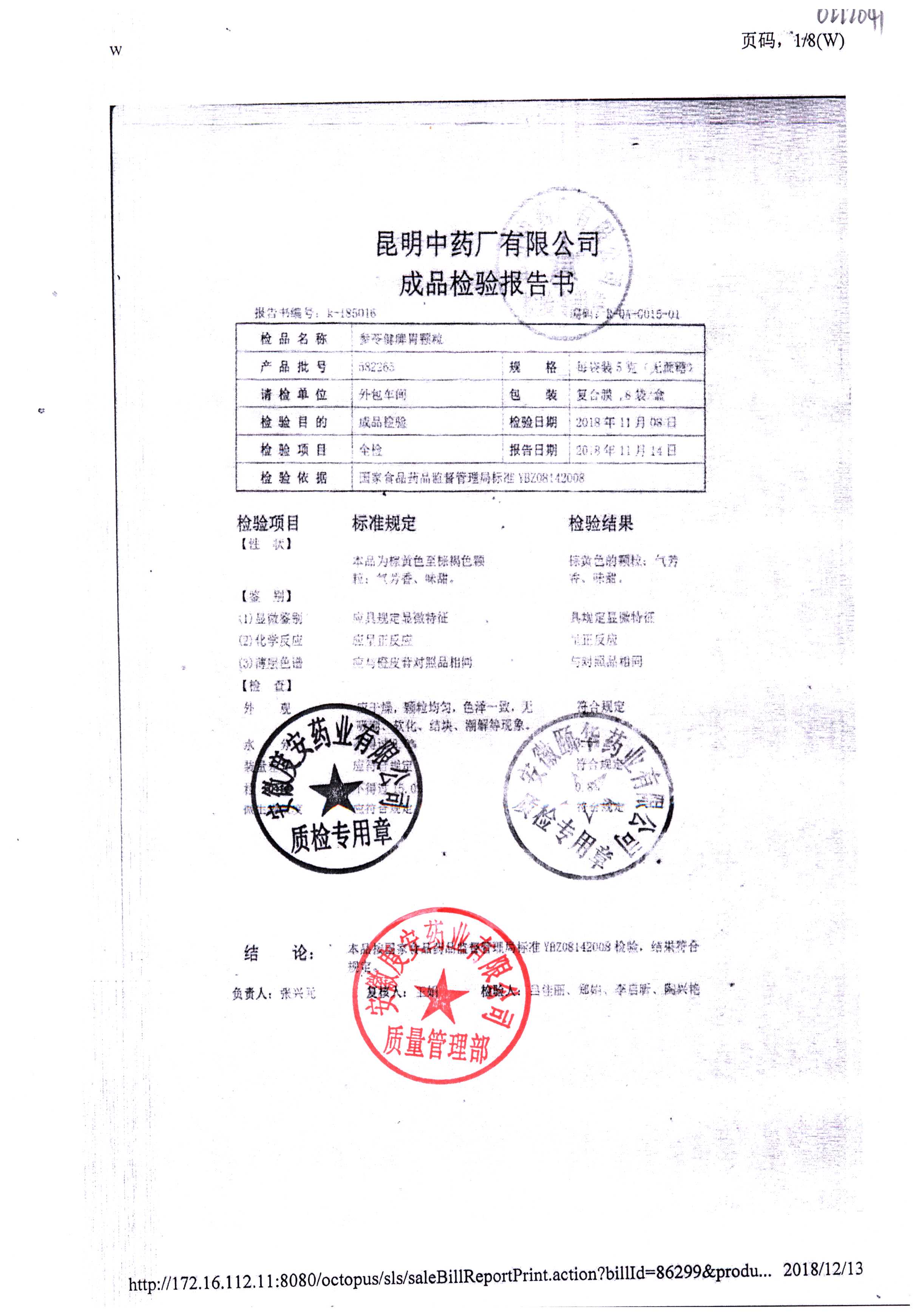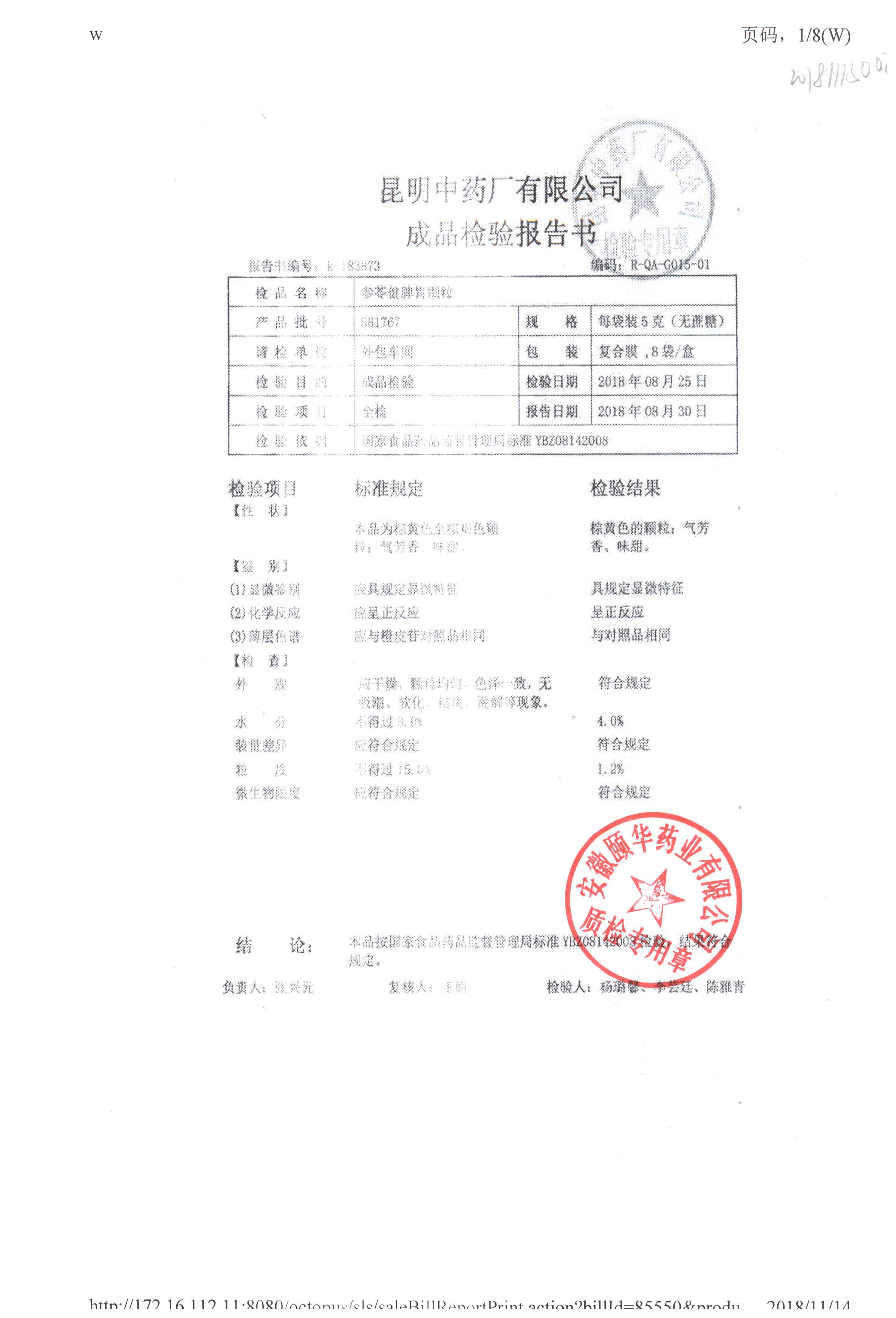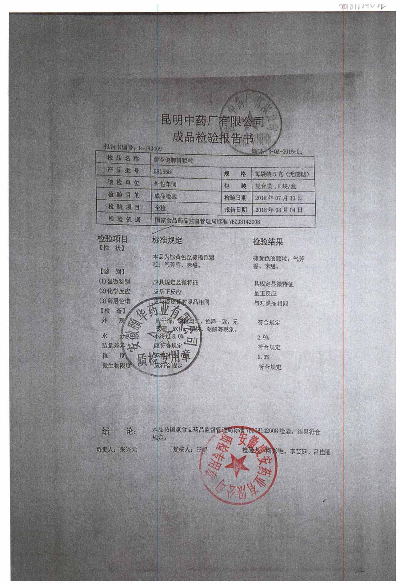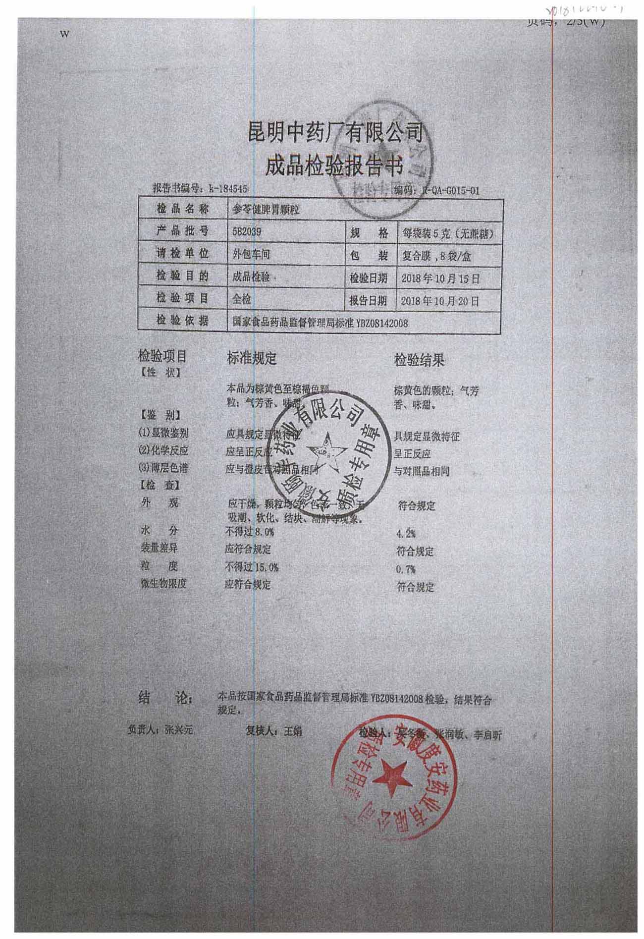 名称 | 规格 | 批号 | 药检报告 |