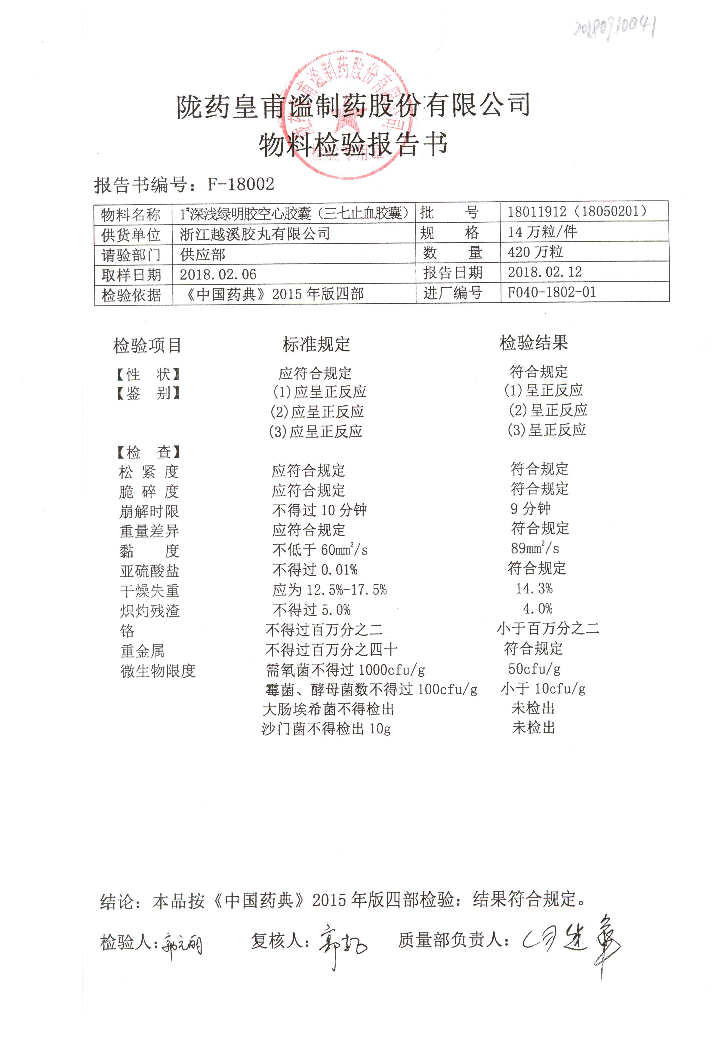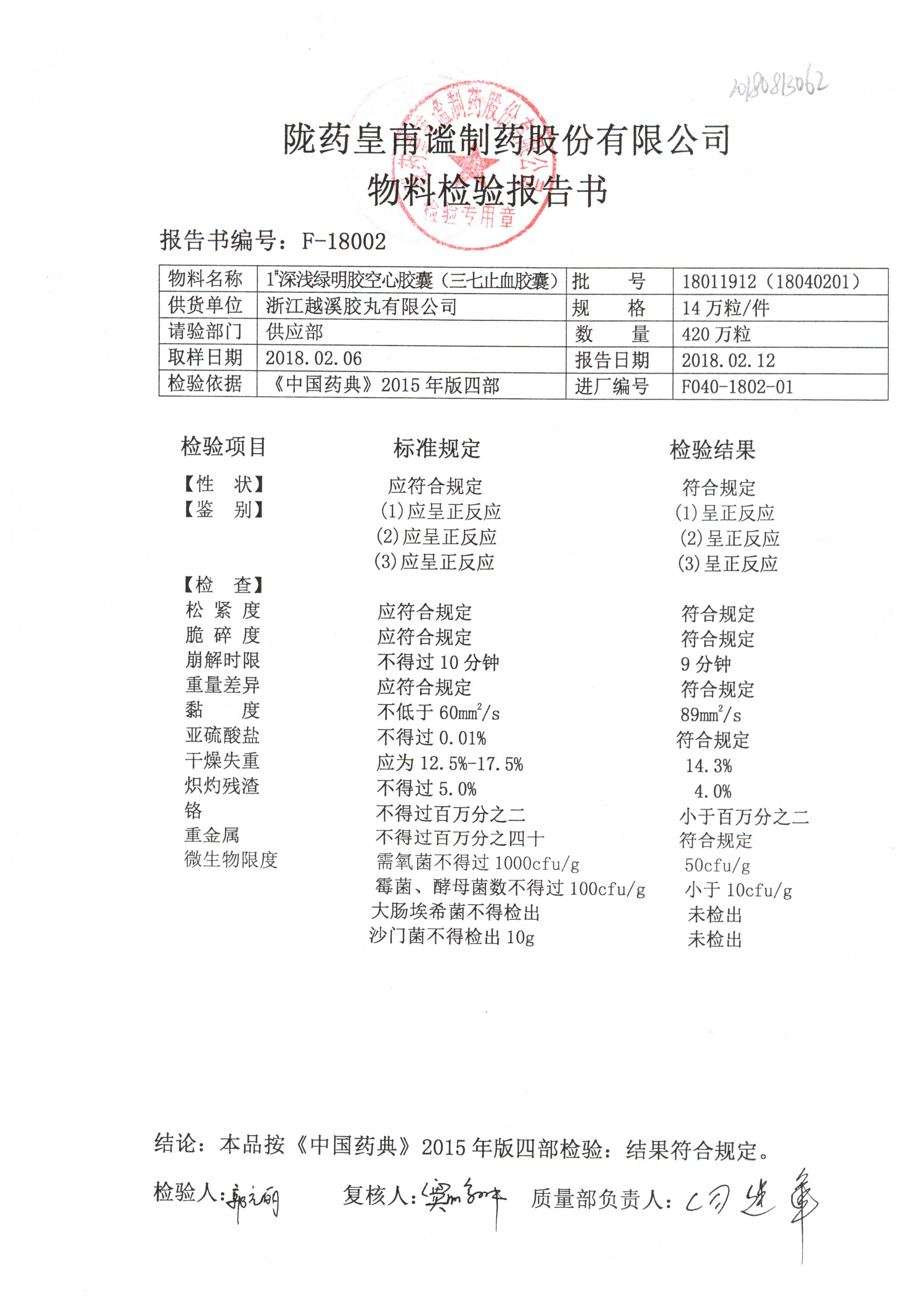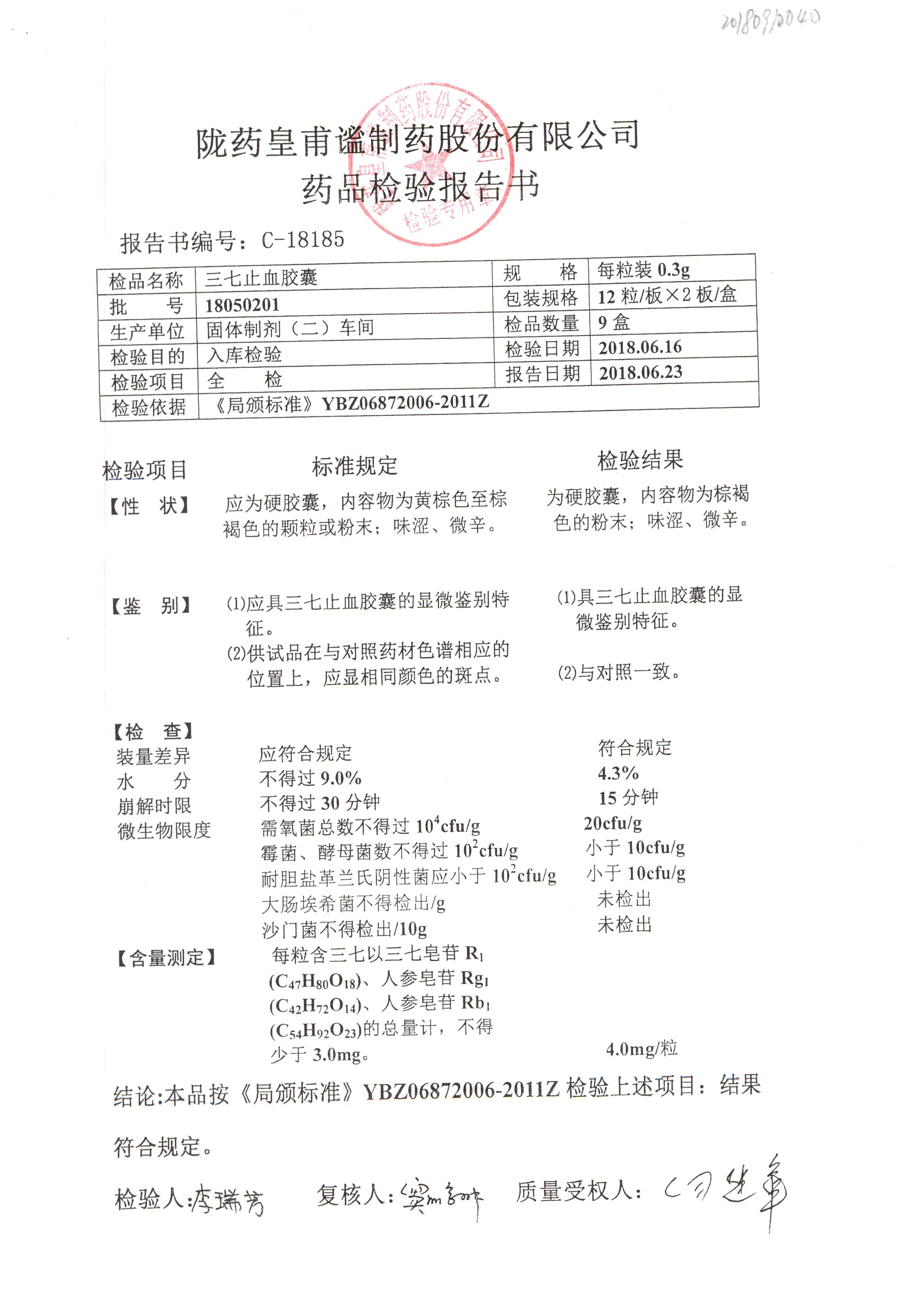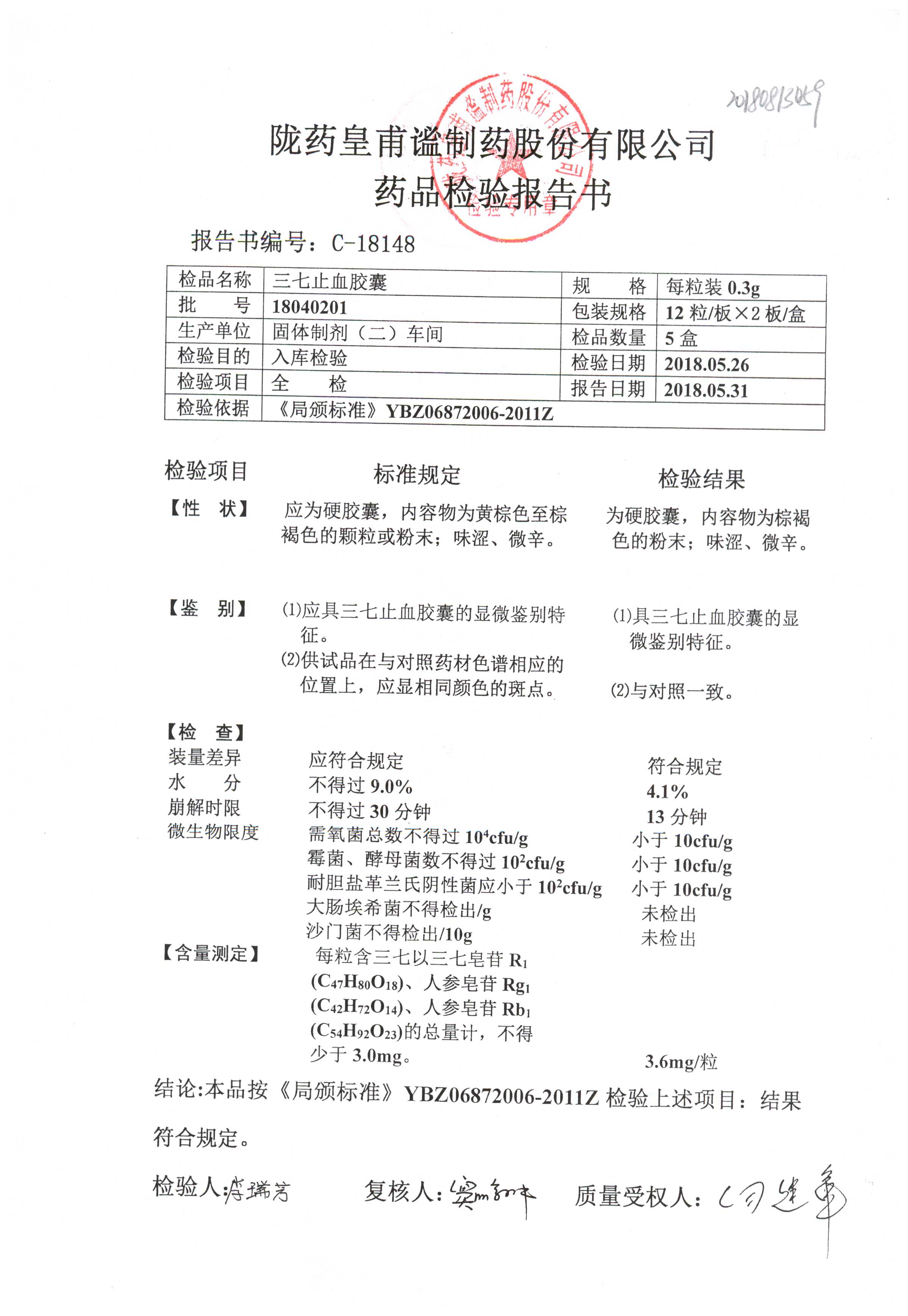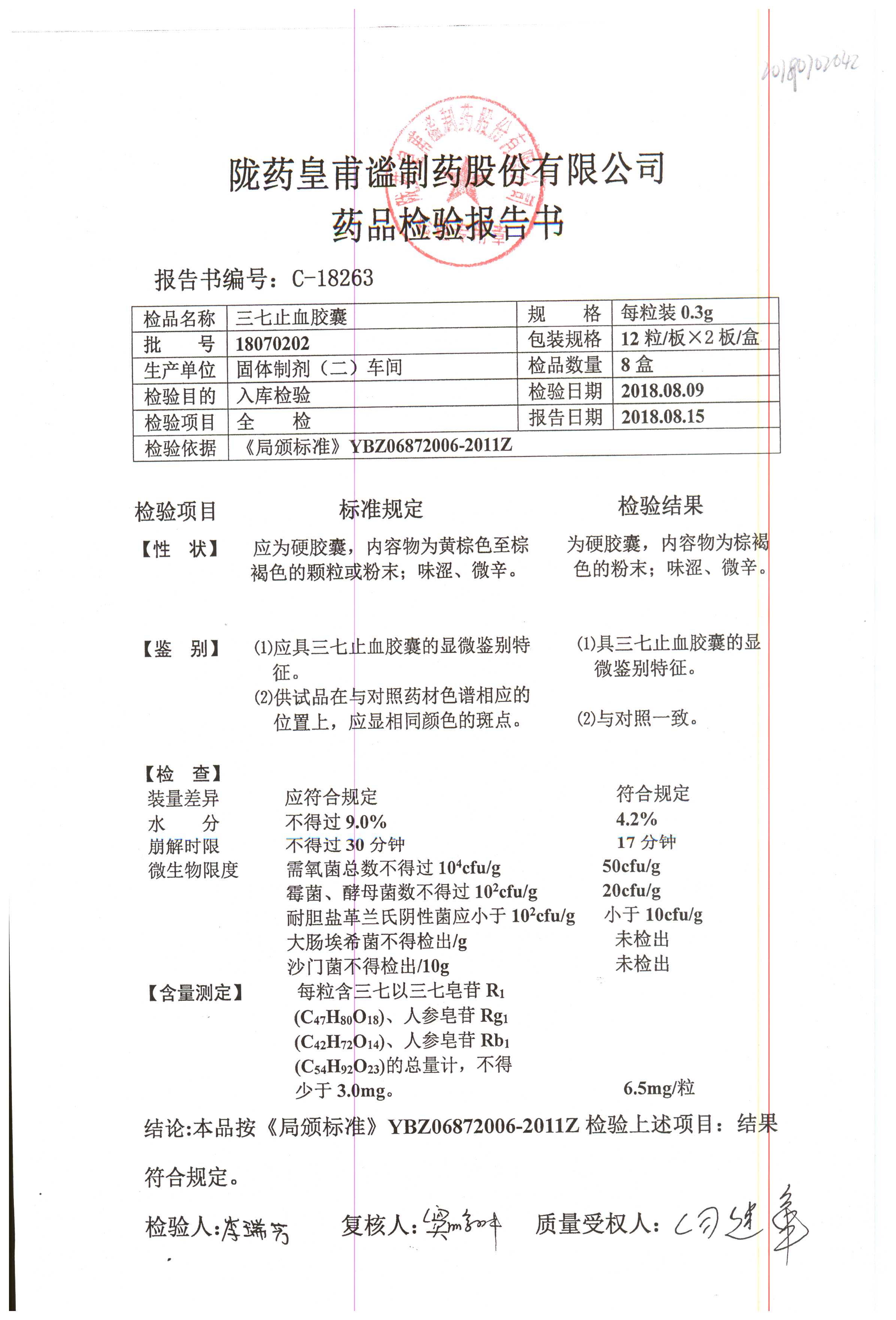 三七止血胶囊 | 0.3g*24粒 | 18050201(1/2) | 查看详情 |