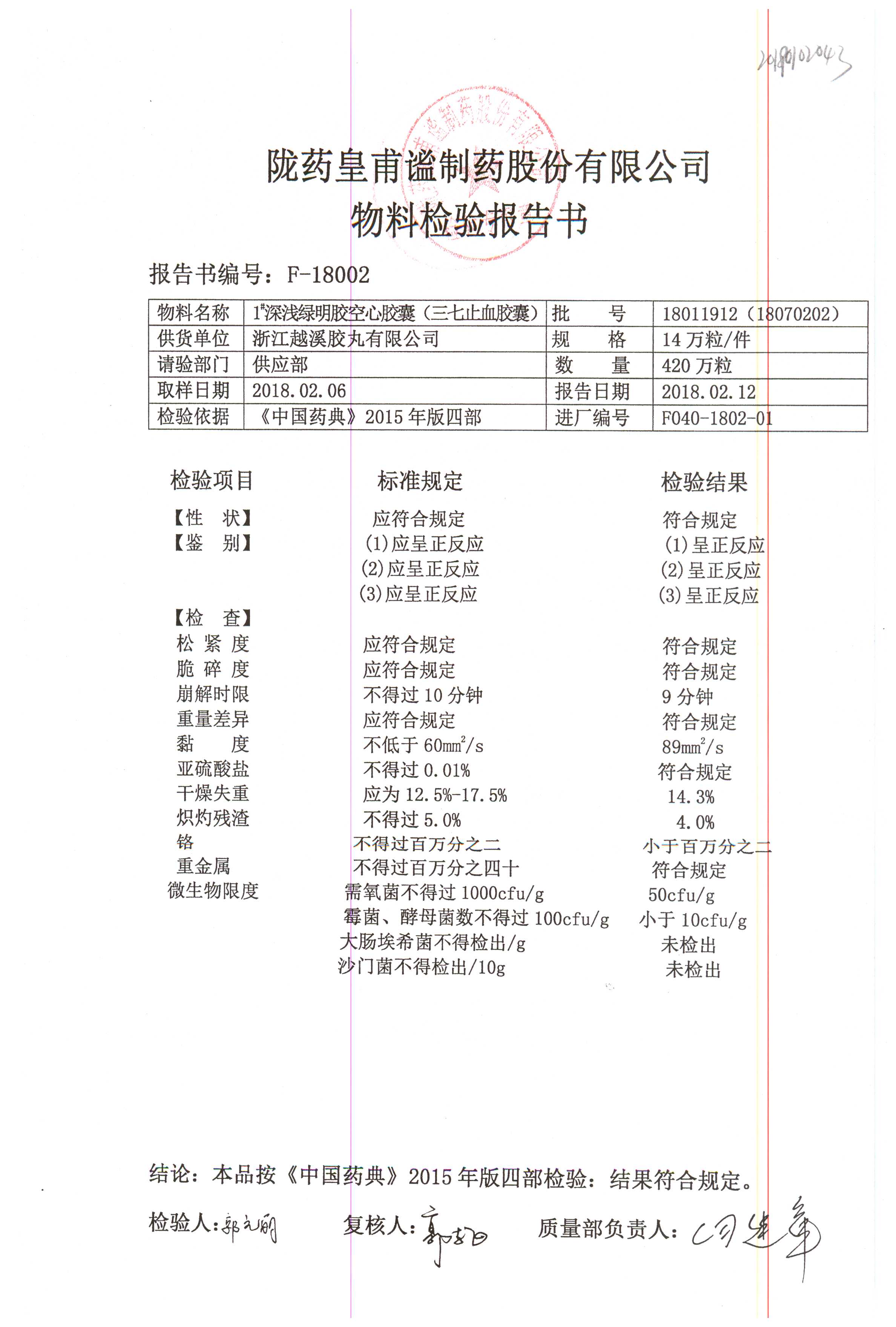 三七止血胶囊 | 0.3g*24粒 | 18040201(1/2) | 查看详情 |