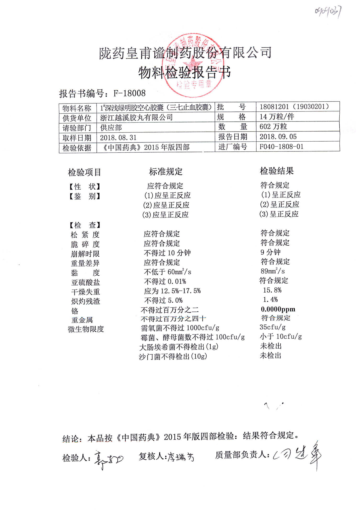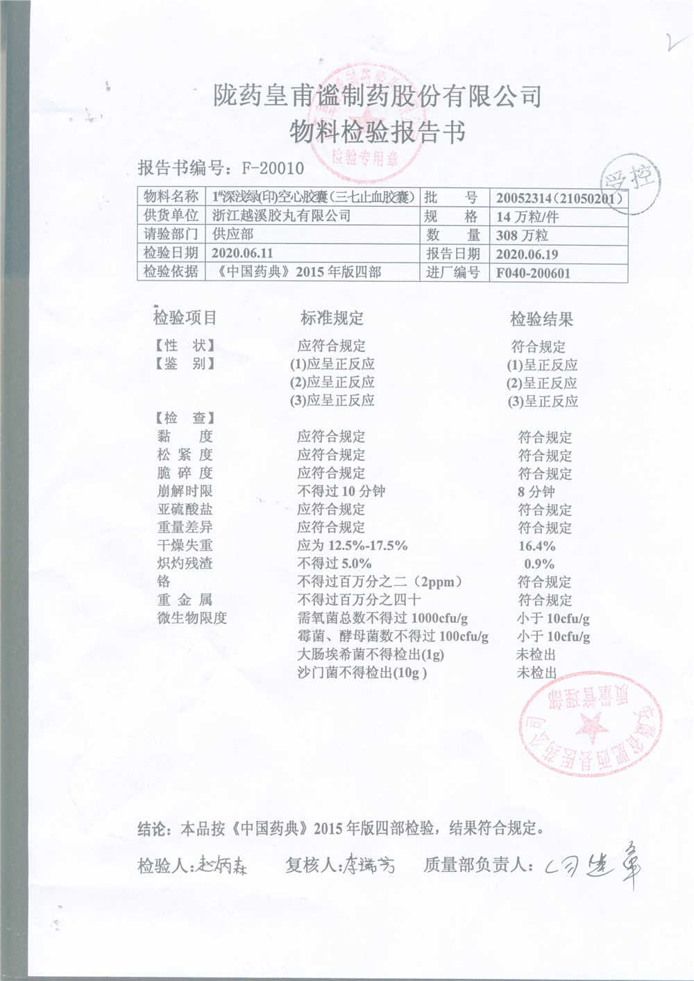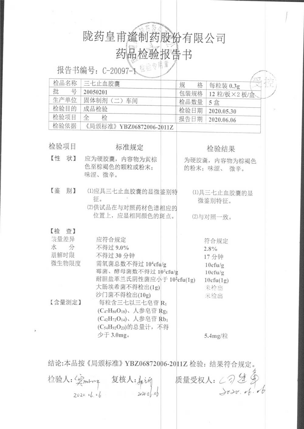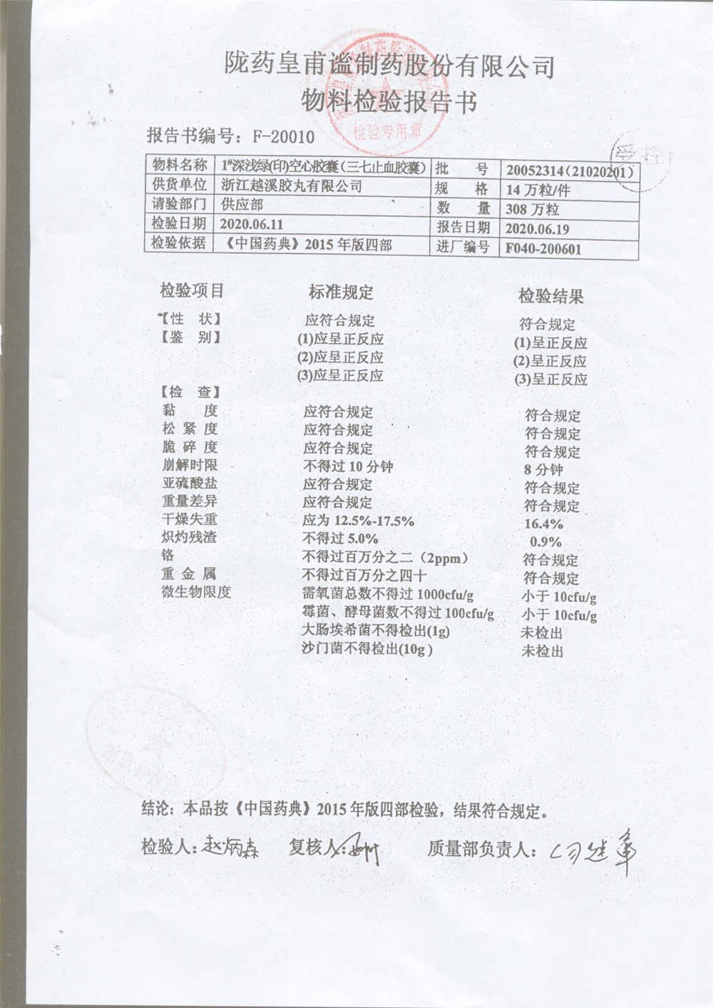 三七止血胶囊 | 0.3g*24粒 | 20110201(2/2) | 查看详情 |