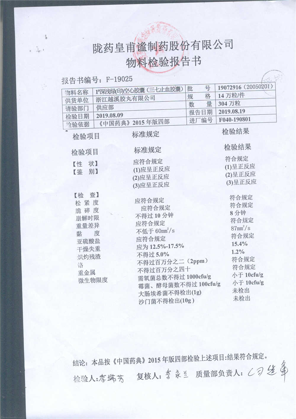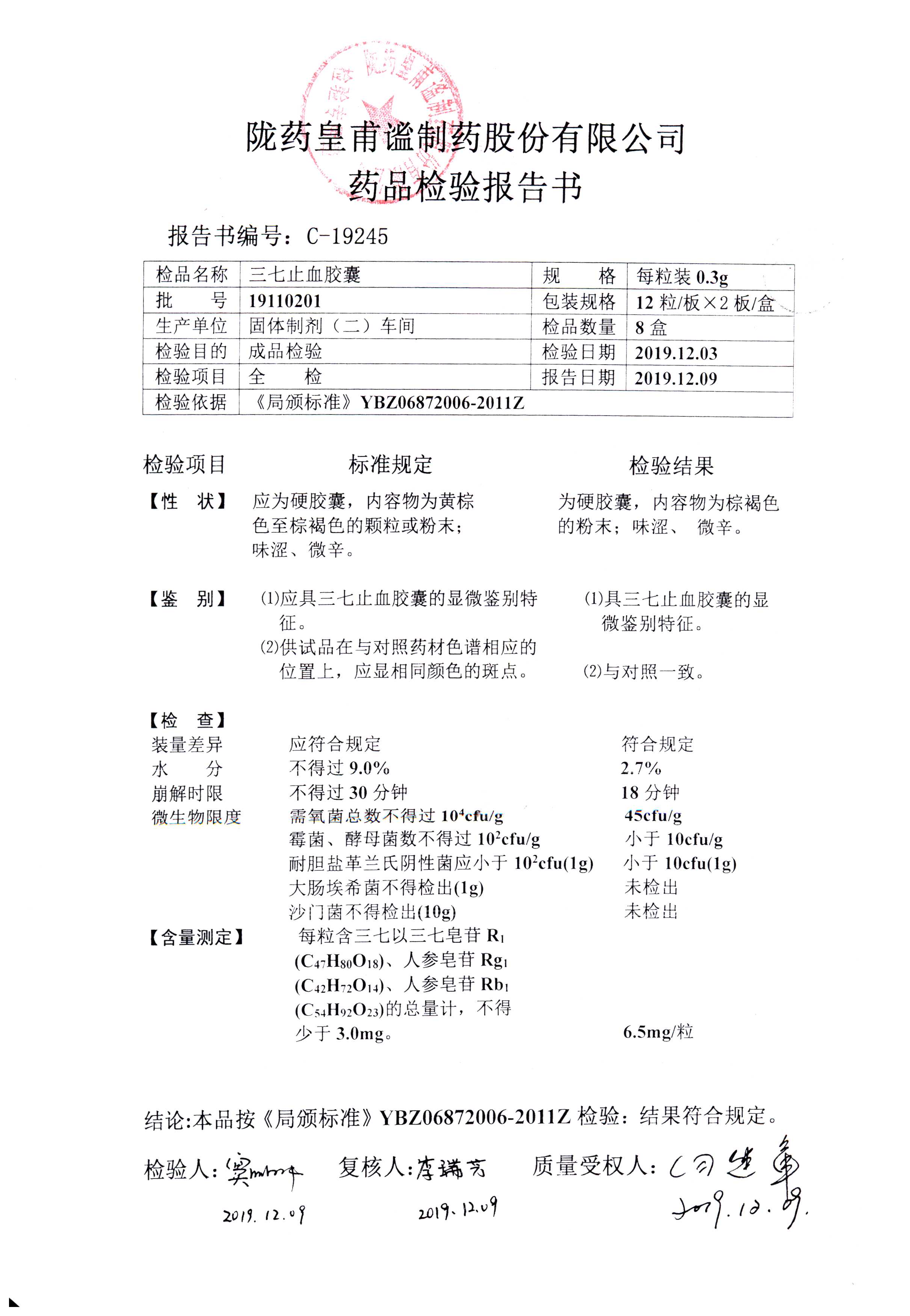 三七止血胶囊 | 0.3g*24粒 | 19030201(1/2) | 查看详情 |