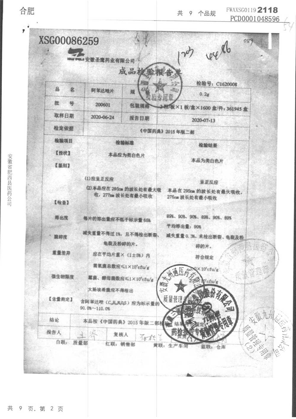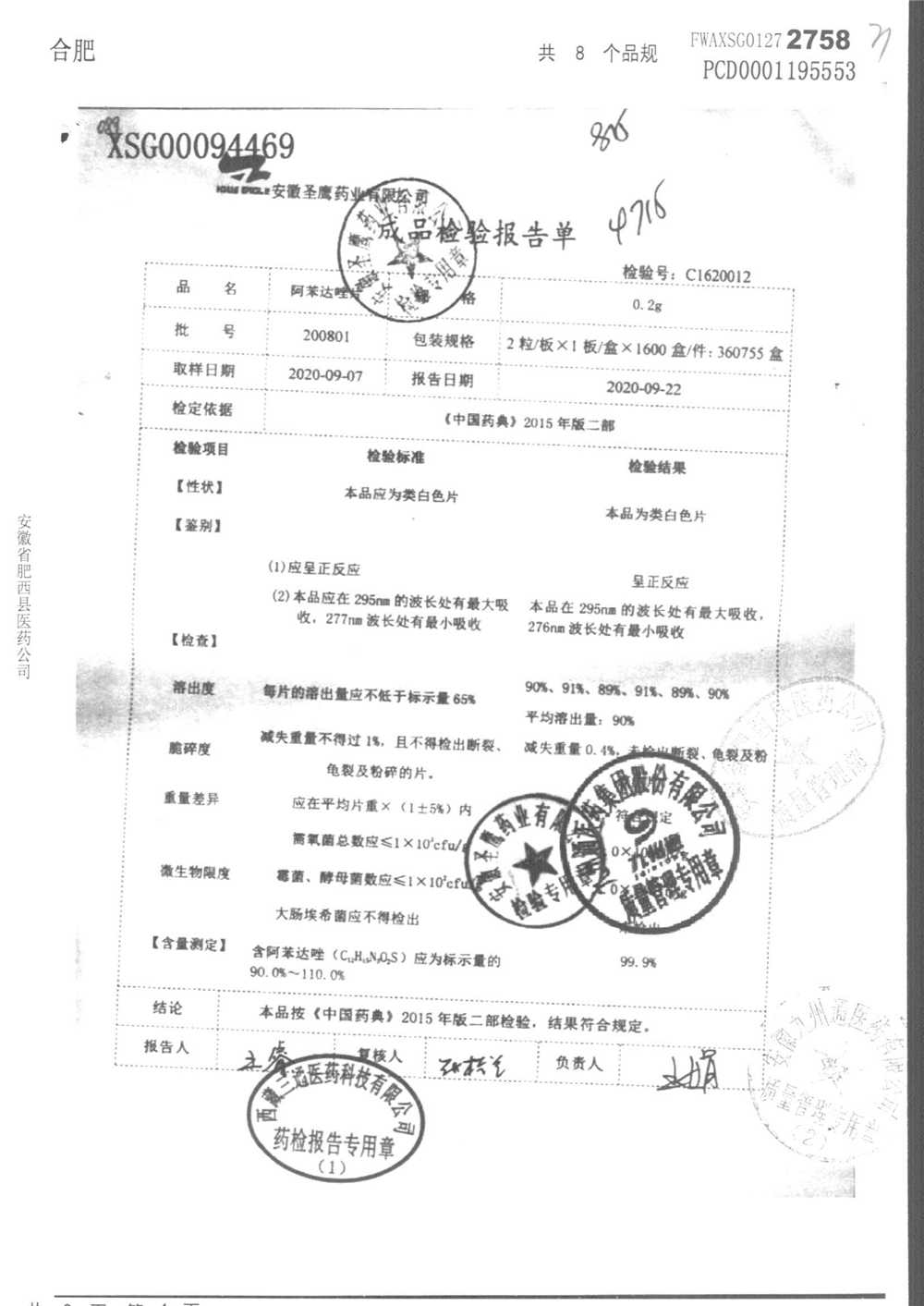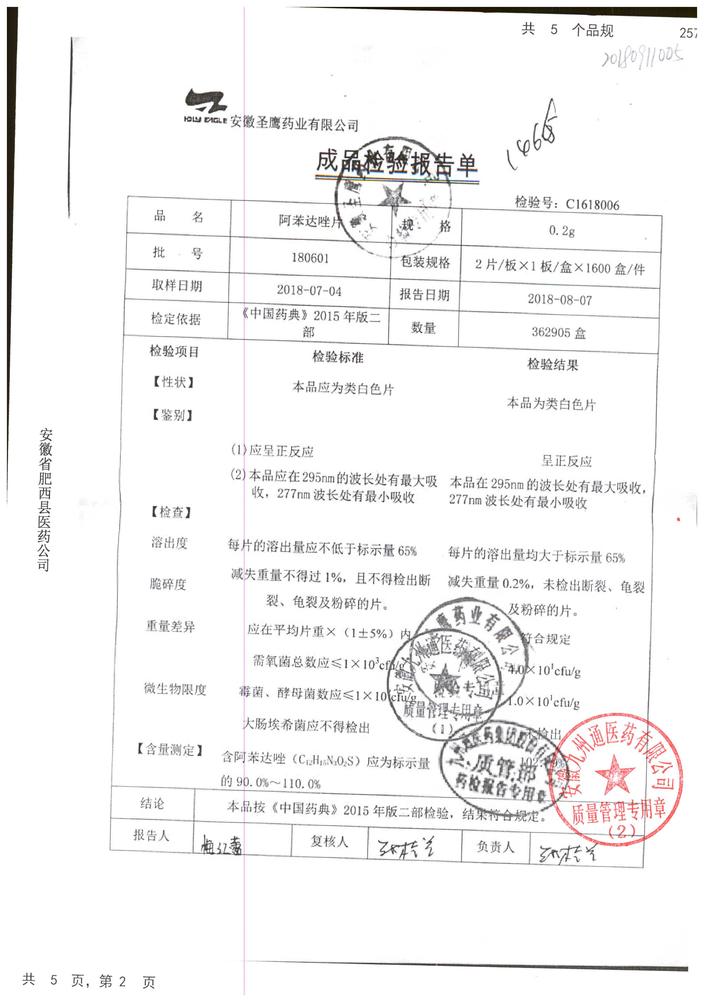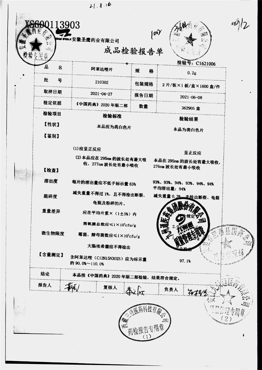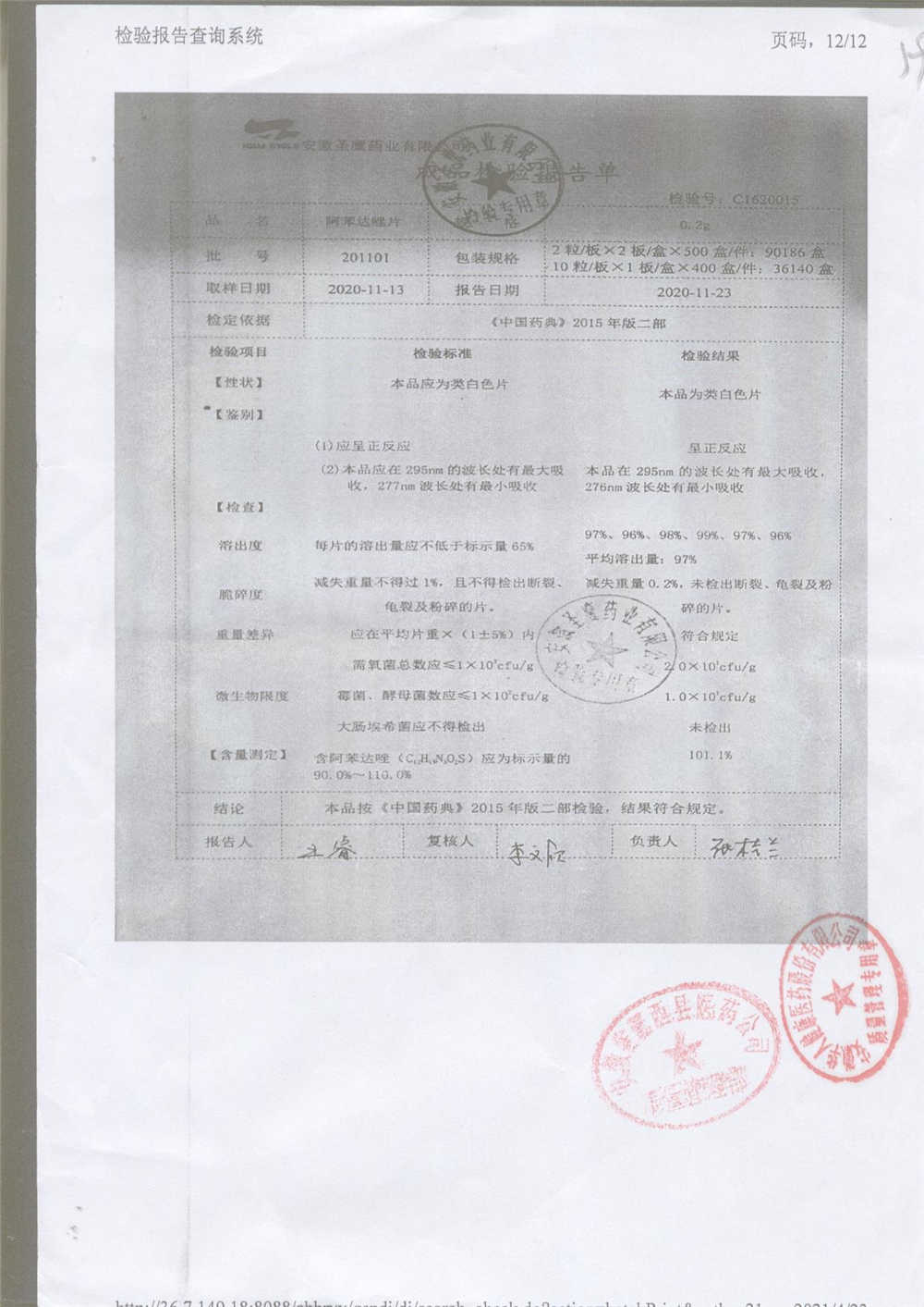 阿苯达唑片 | 0.2g*2片 | 210704 | 查看详情 |
