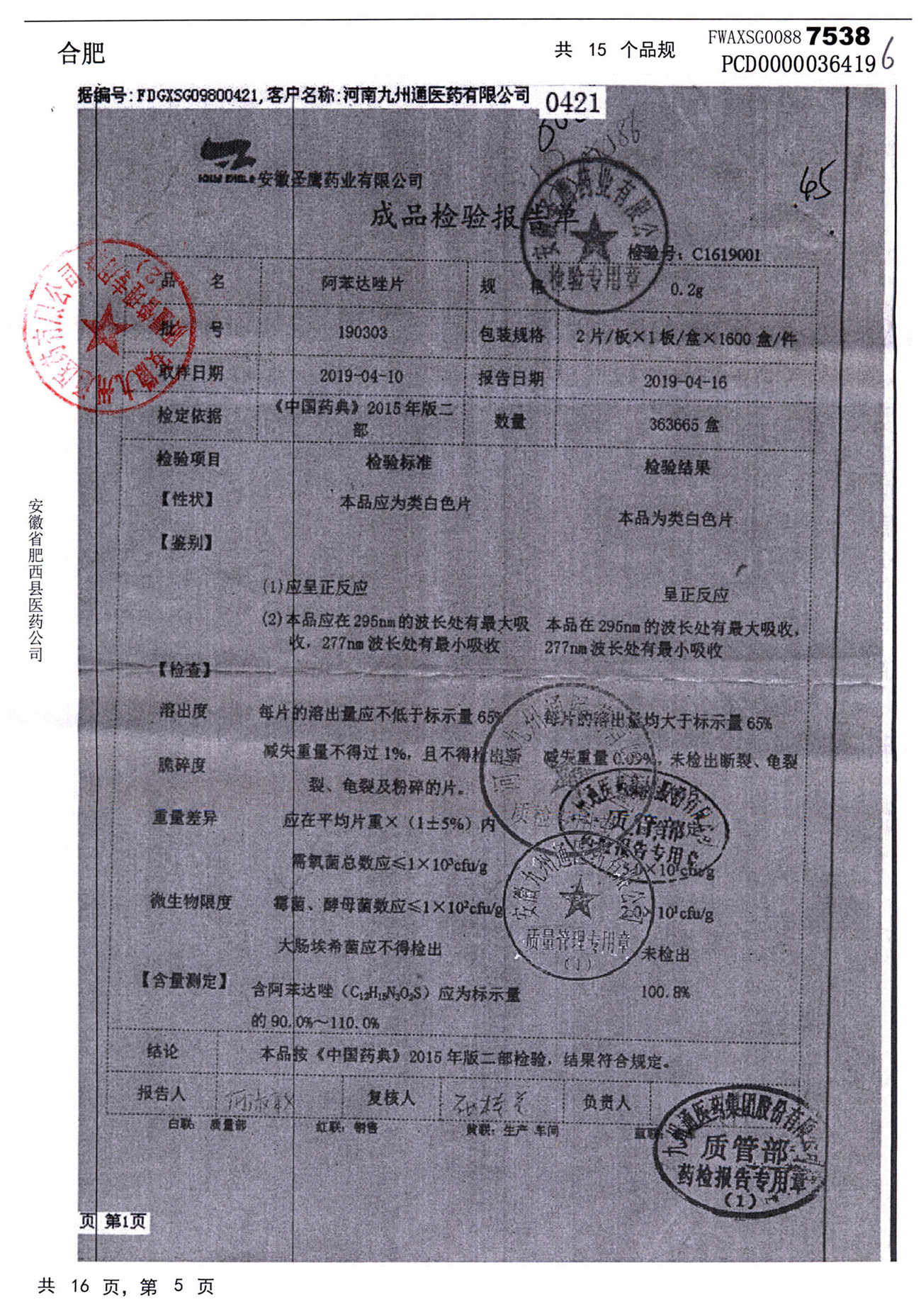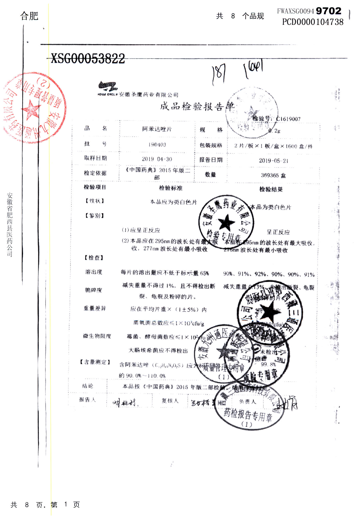 阿苯达唑片 | 0.2g*2片 | 190404 | 查看详情 |
