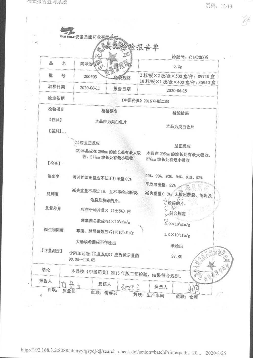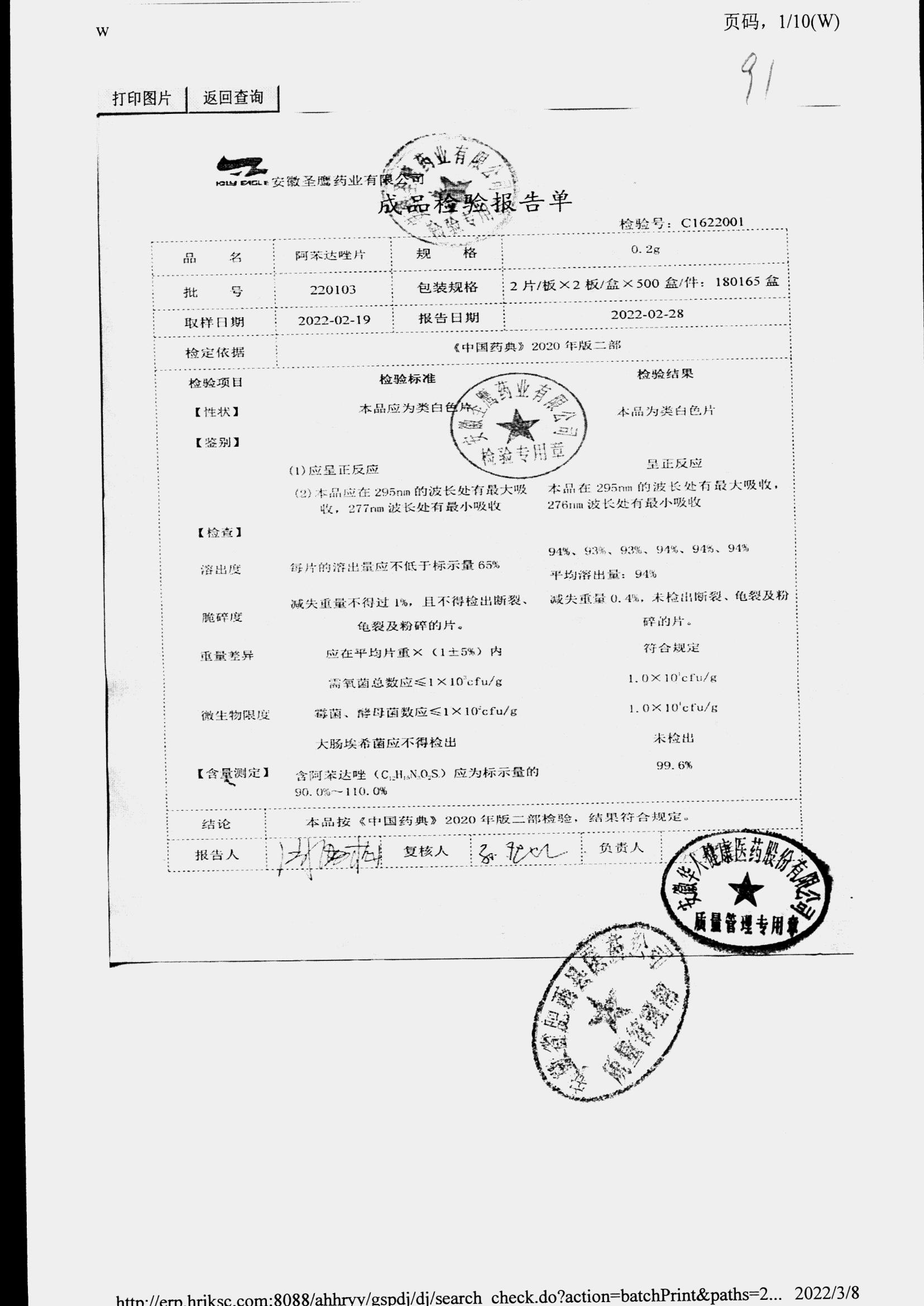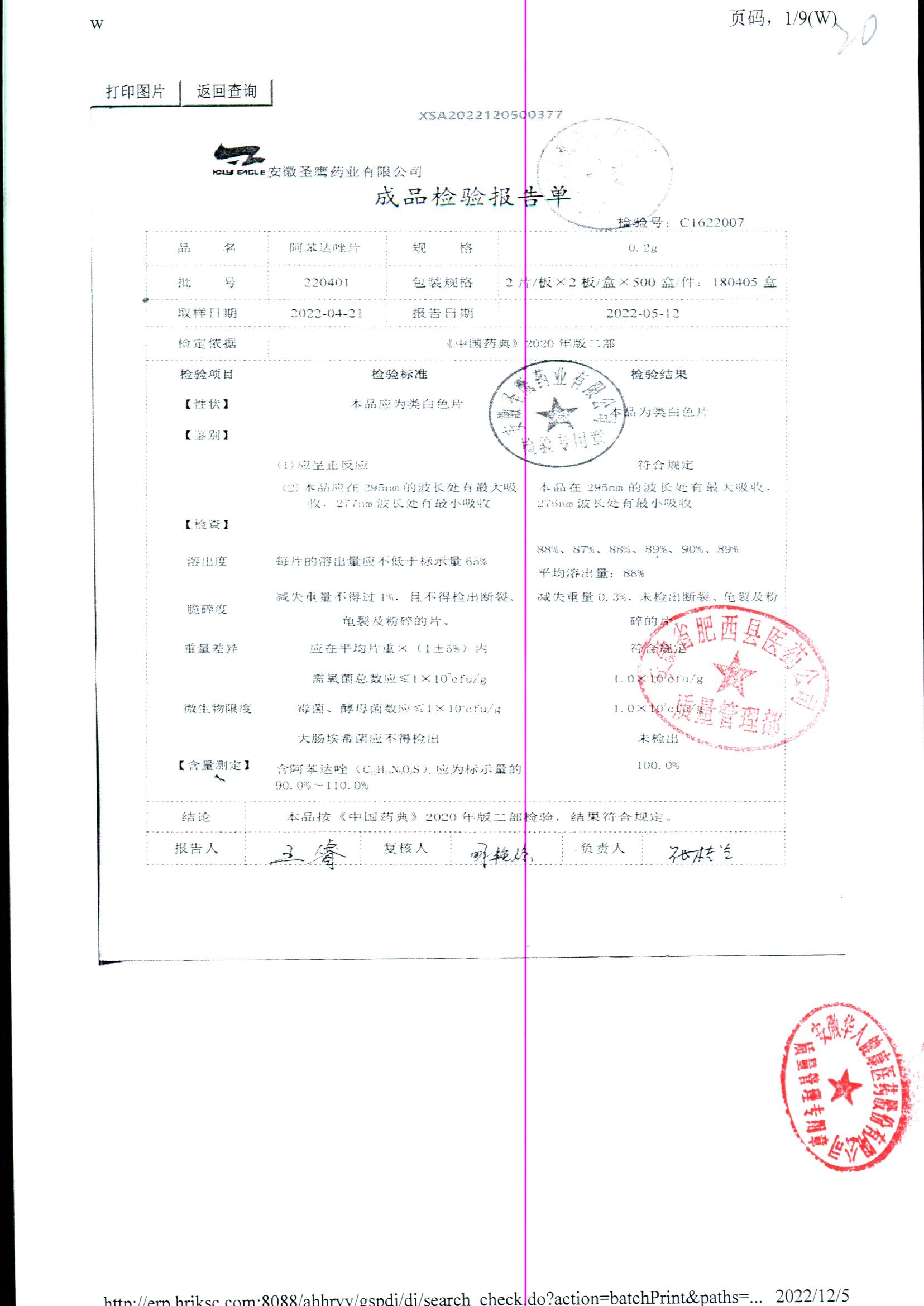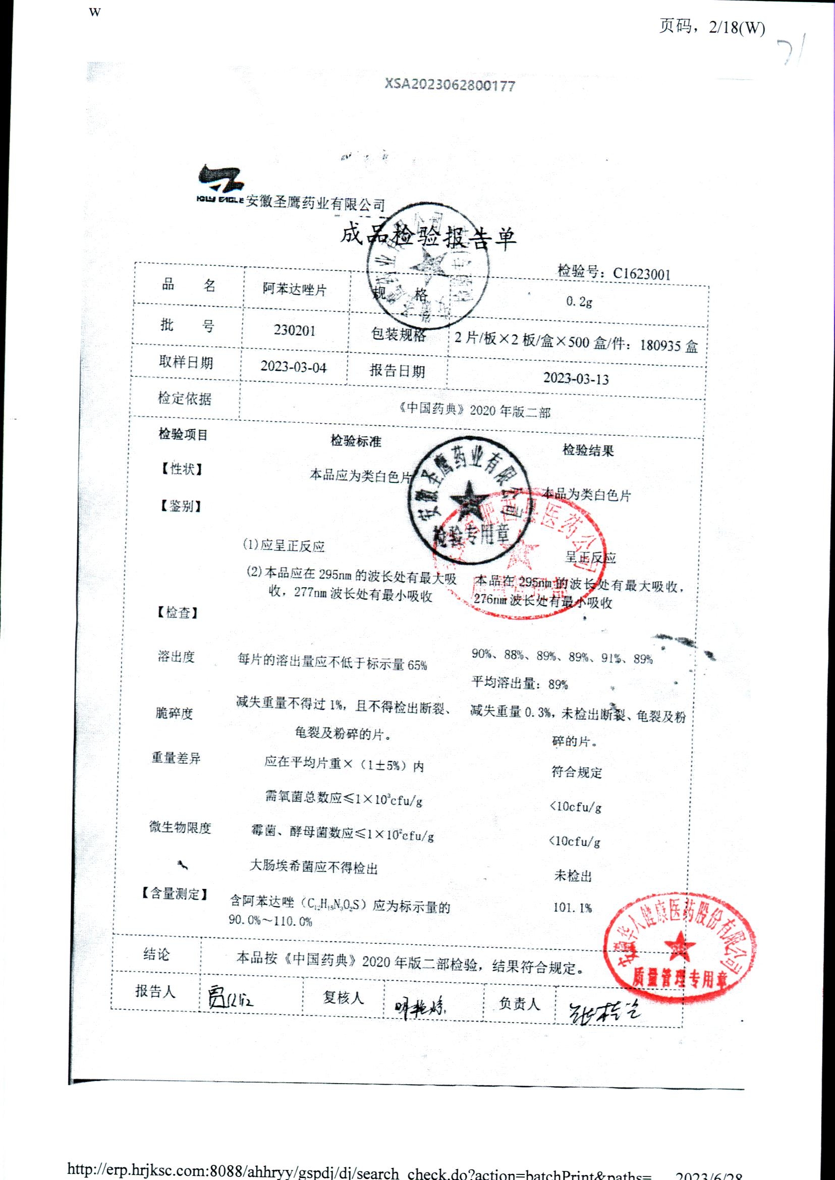 阿苯达唑片 | 0.2g*2片 | 210703 | 查看详情 |