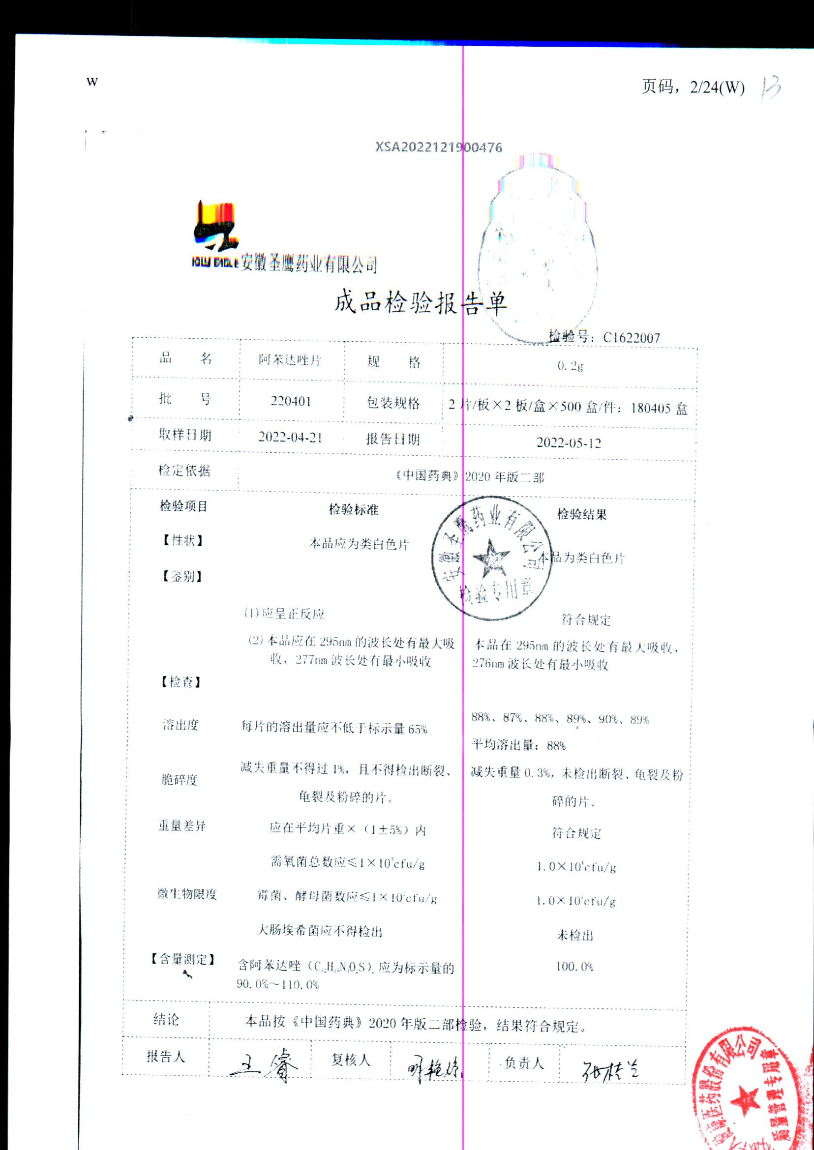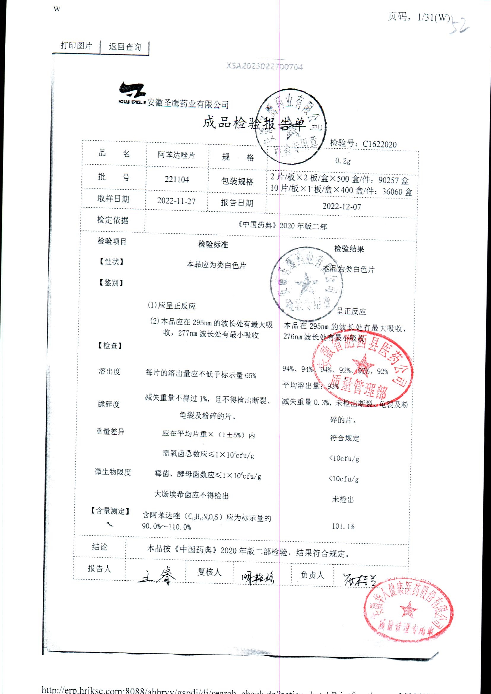 阿苯达唑片 | 0.2g*2片 | 221104 | 查看详情 |