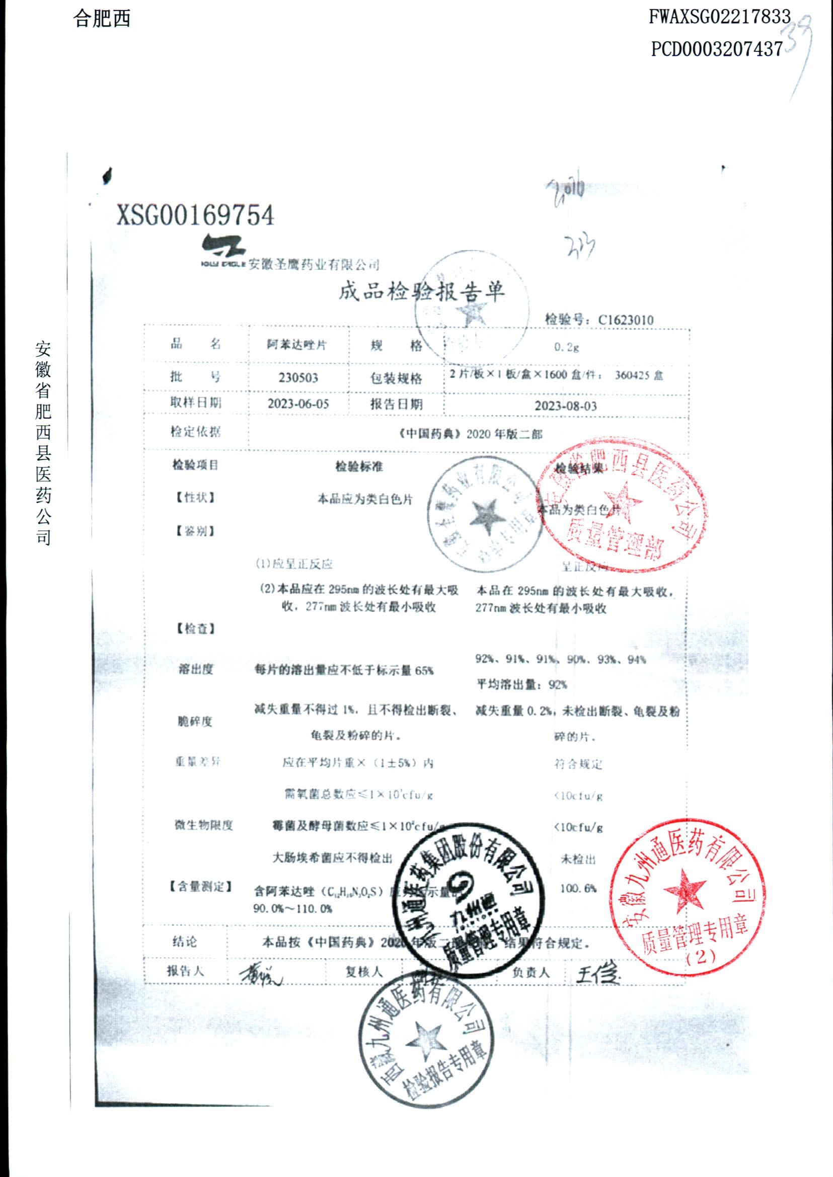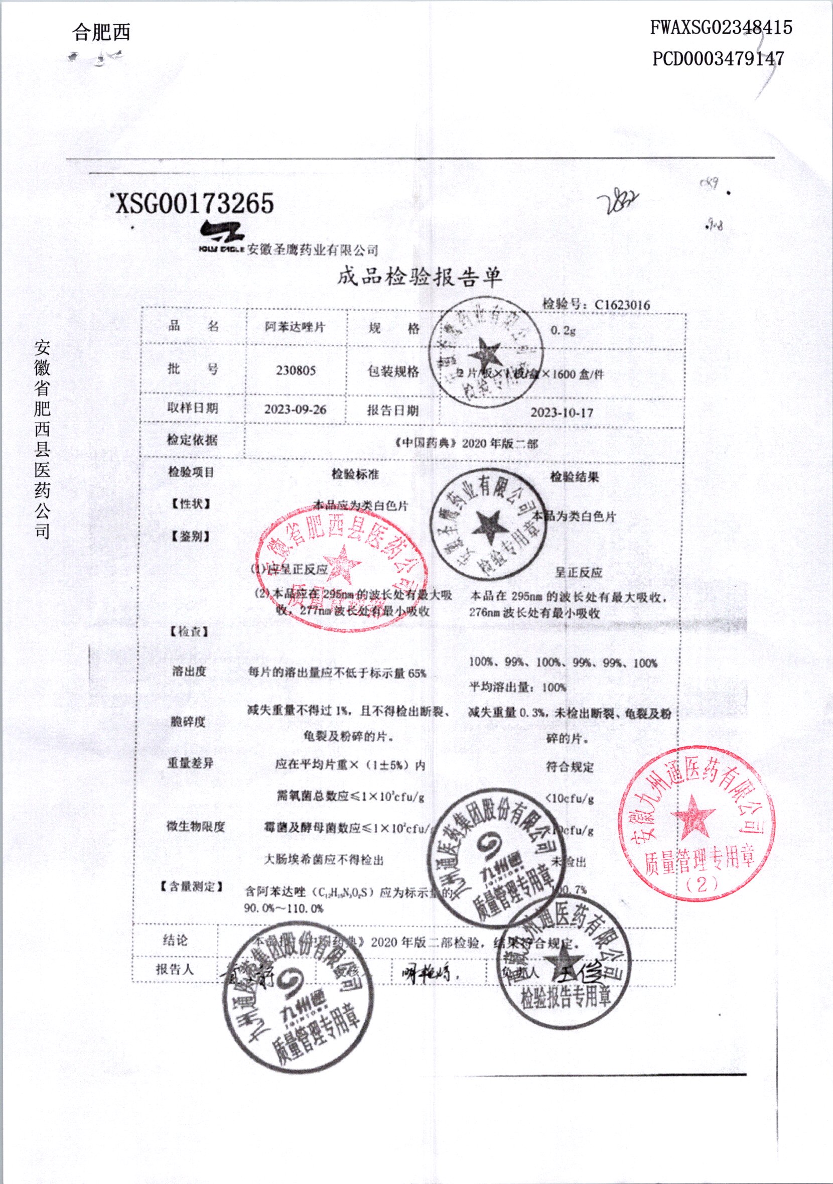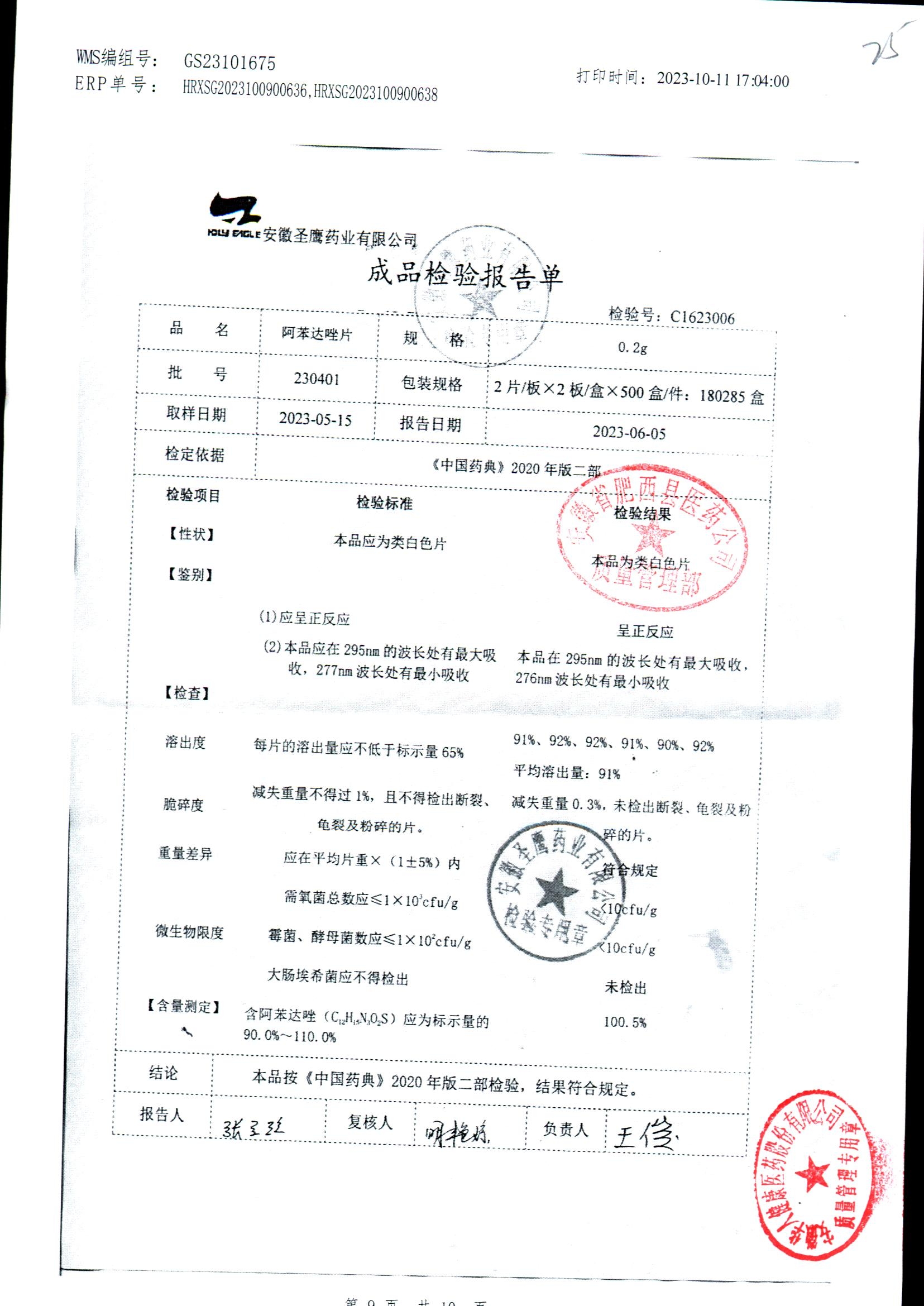 阿苯达唑片 | 0.2g*2片 | 230805 | 查看详情 |