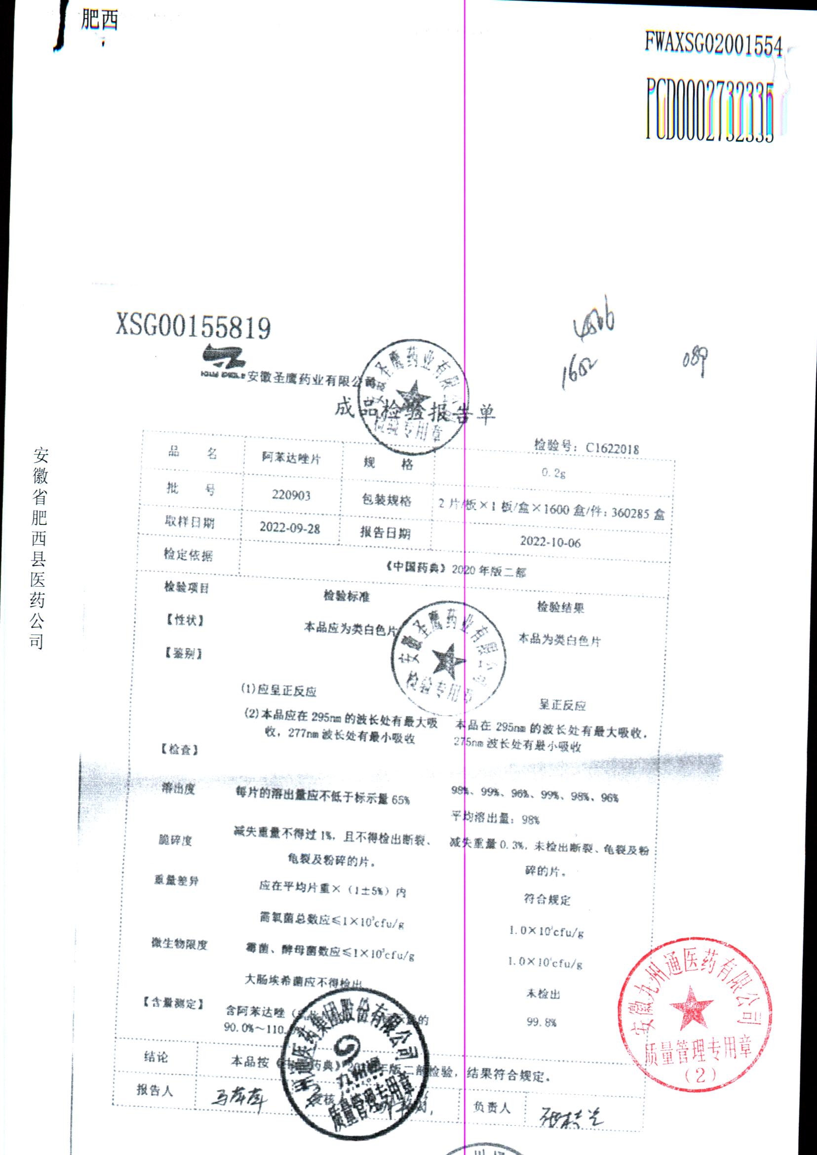 阿苯达唑片 | 0.2g*2片 | 220903 | 查看详情 |