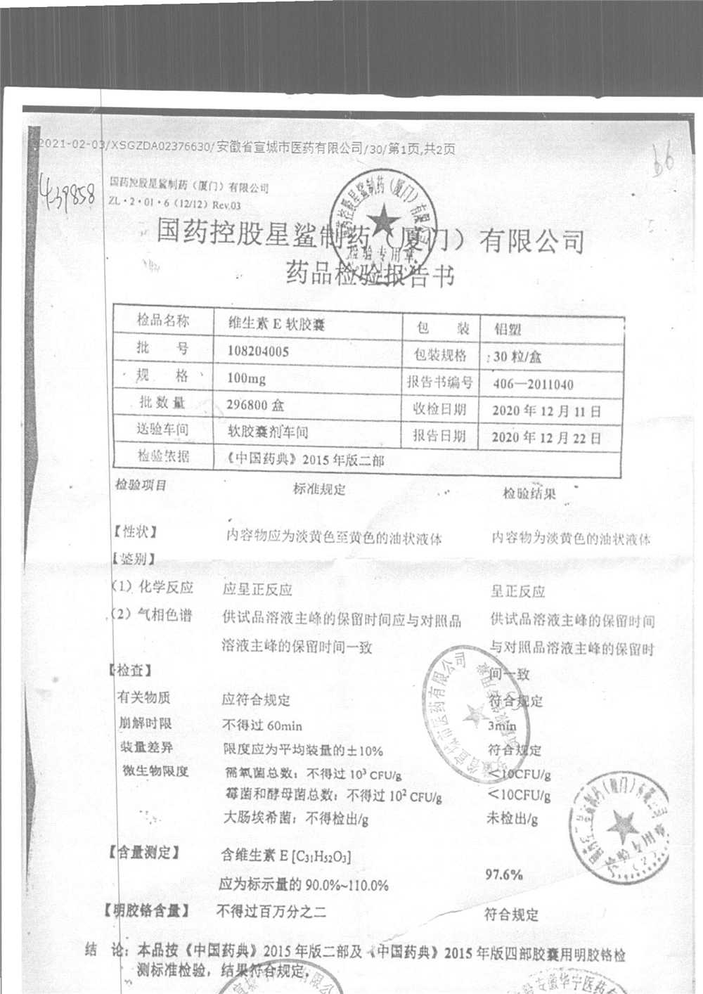维生素E软胶囊 | 30粒 | 10882008(2/2) | 查看详情 |