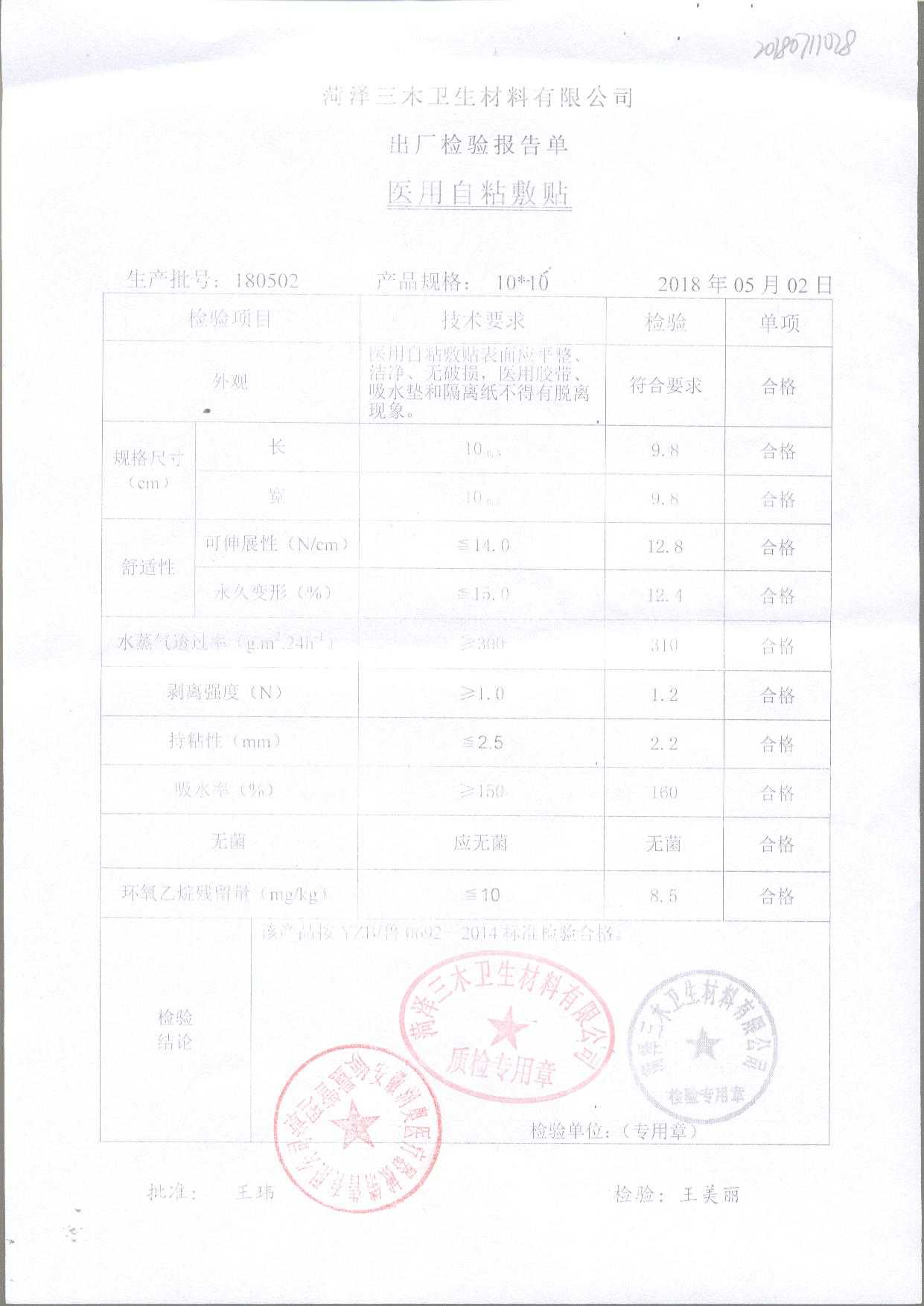 医用自粘敷贴 | 10*10 | 180502 | 查看详情 |