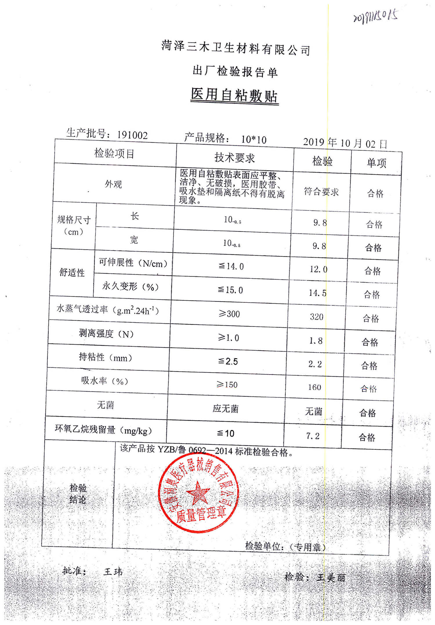 医用自粘敷贴 | 10*10 | 191002 | 查看详情 |