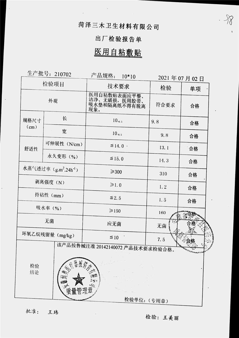 医用自粘敷贴 | 10*10 | 220702 | 查看详情 |