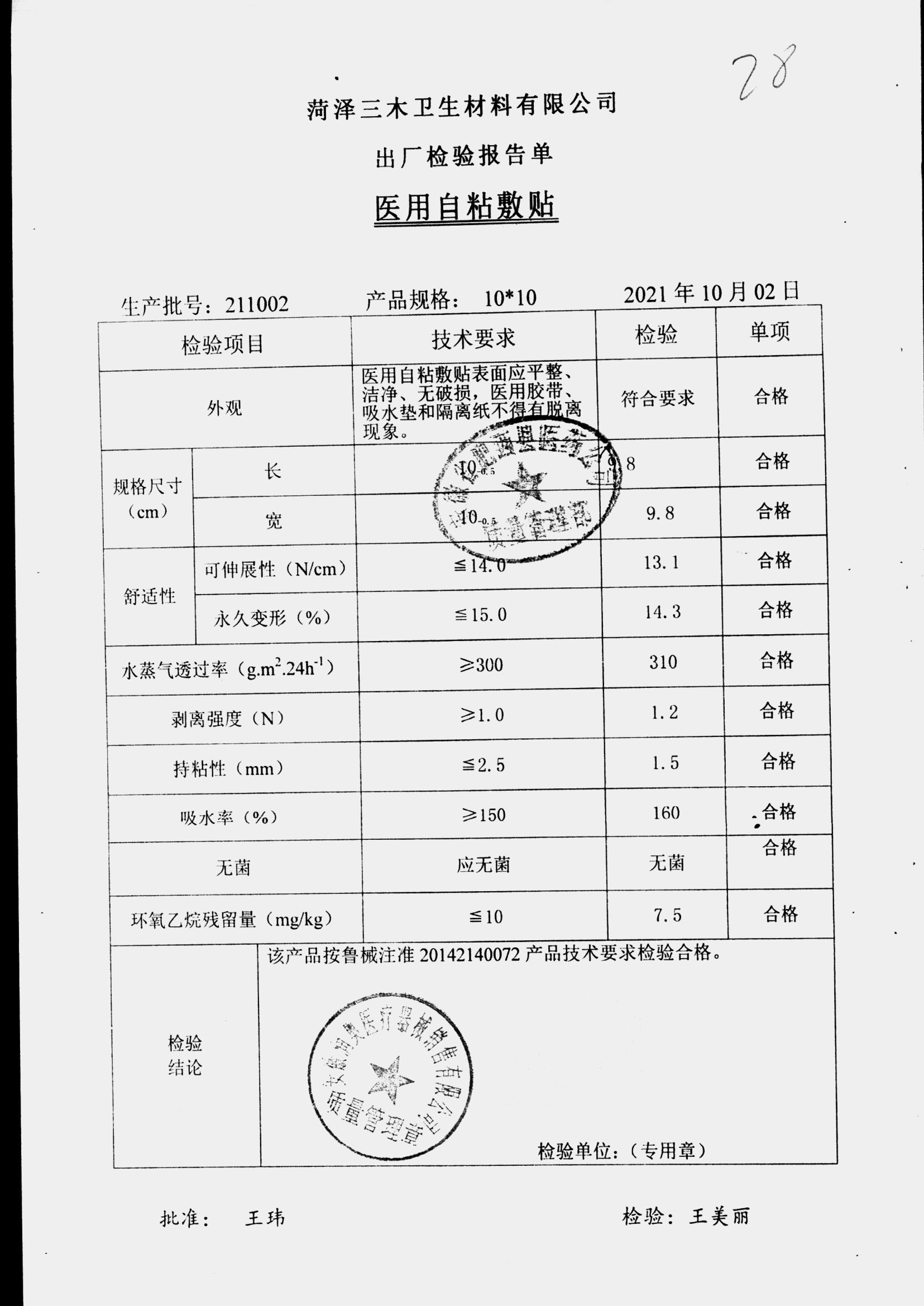 医用自粘敷贴 | 10*10 | 211002 | 查看详情 |