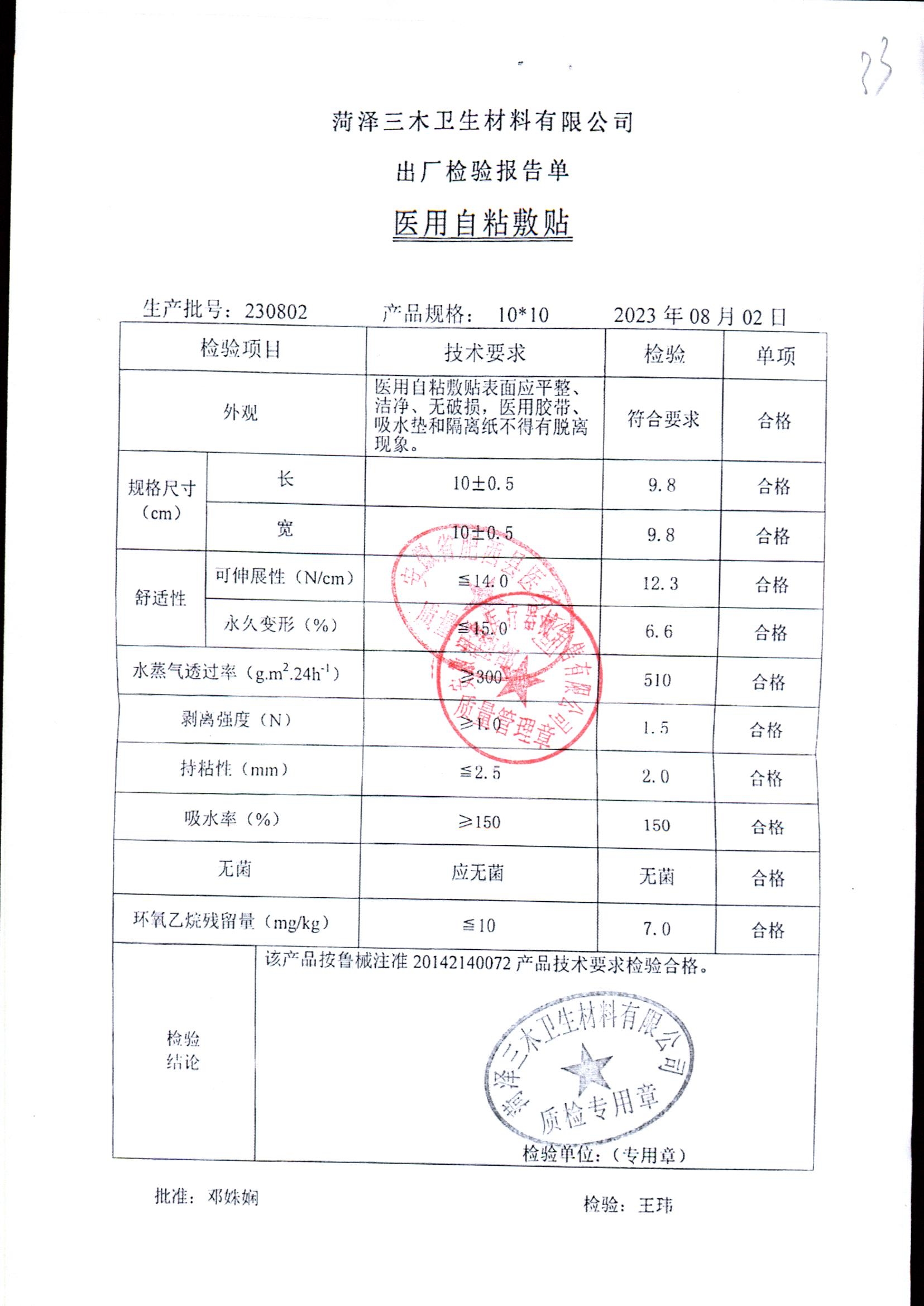 医用自粘敷贴 | 10*10 | 230802 | 查看详情 |