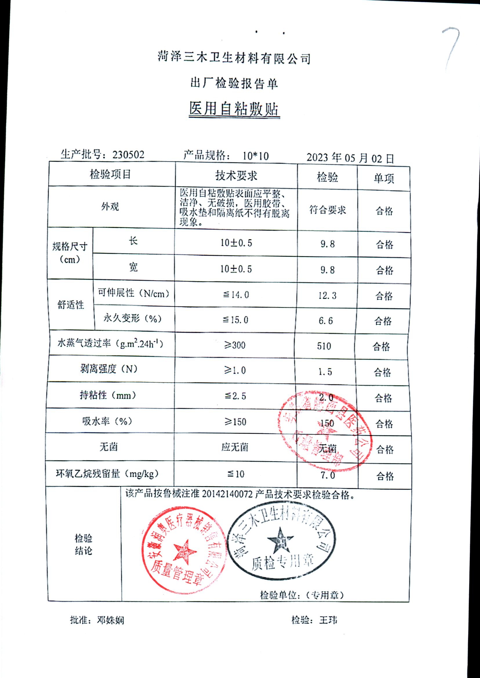 医用自粘敷贴 | 10*10 | 230502 | 查看详情 |