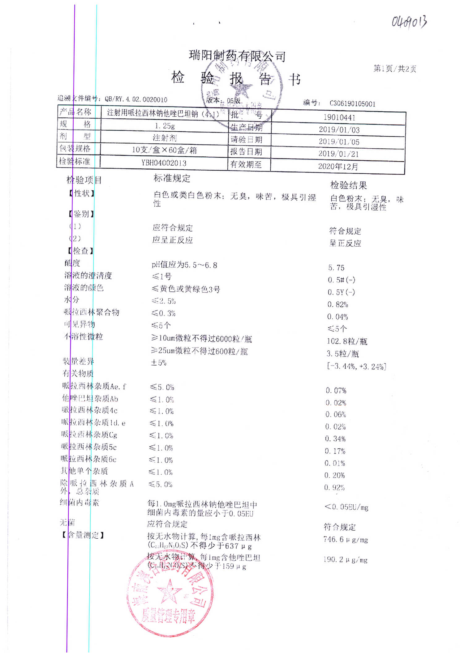 名称 | 规格 | 批号 | 药检报告 |