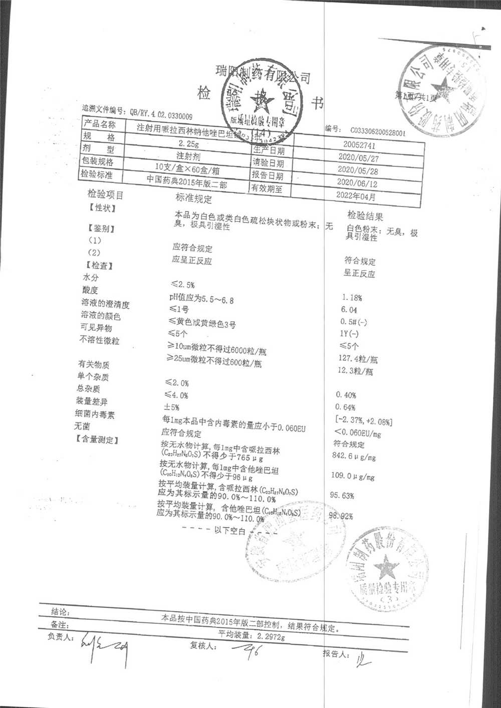 注射用哌拉西林钠舒巴坦钠 | 1.25g | 20052741(1/2) | 查看详情 |