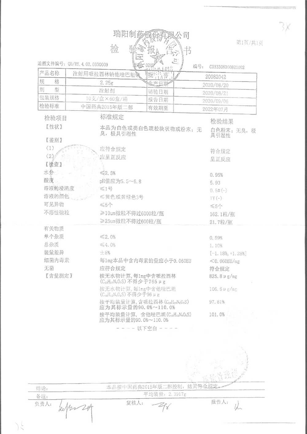 注射用哌拉西林钠舒巴坦钠 | 1.25g | 20052741(2/2) | 查看详情 |
