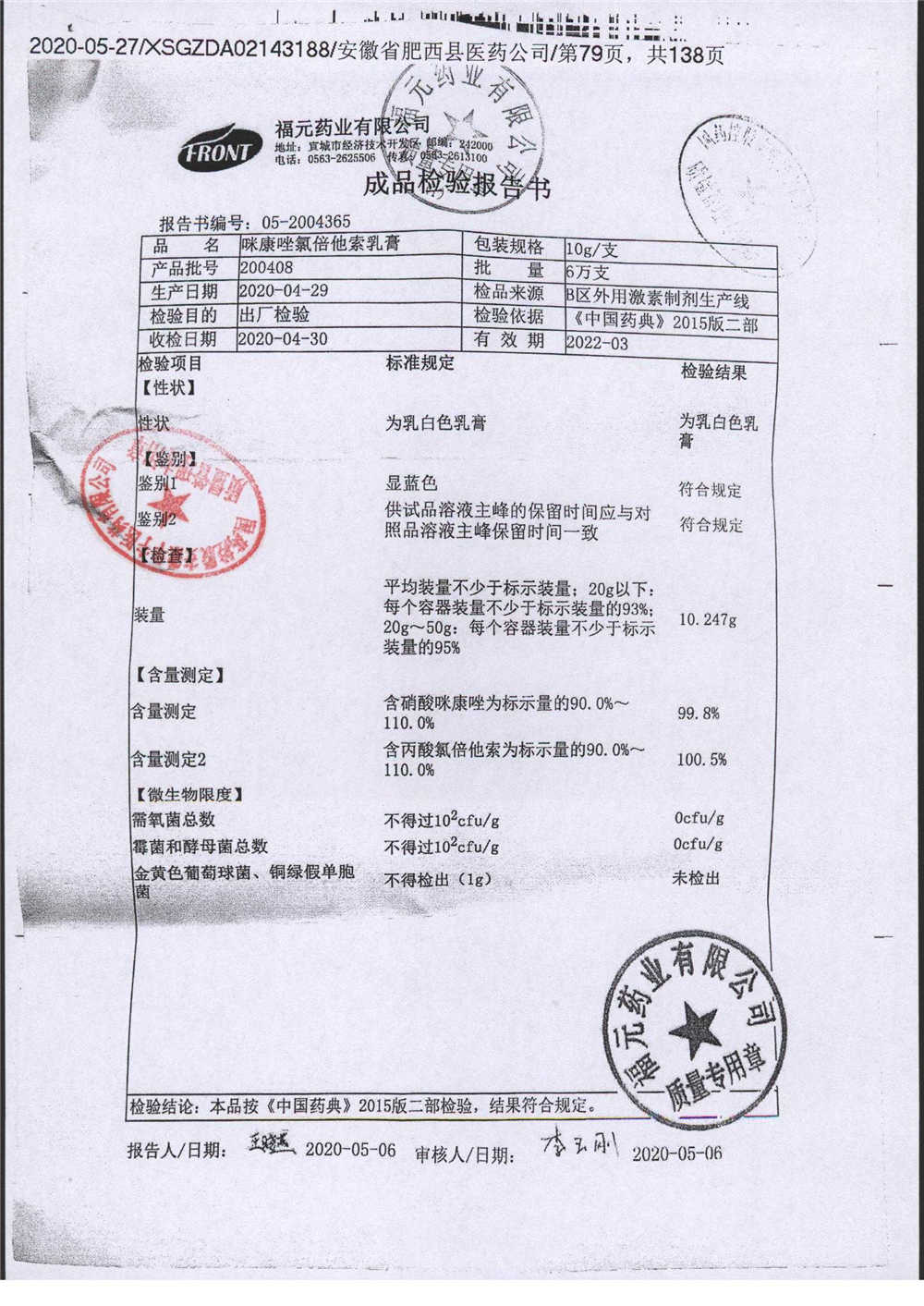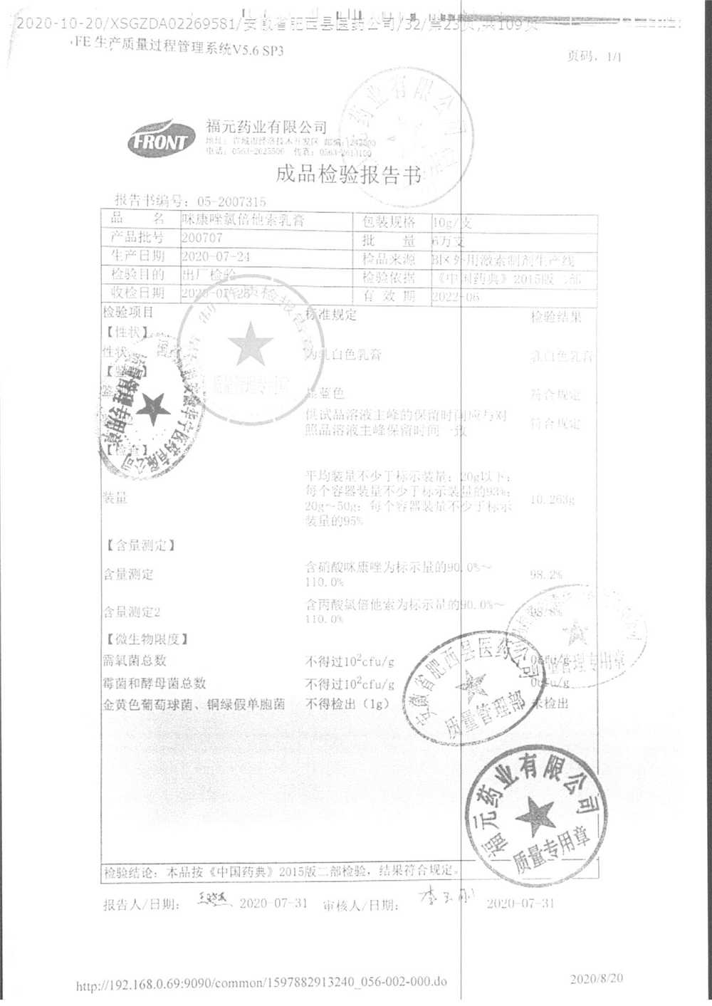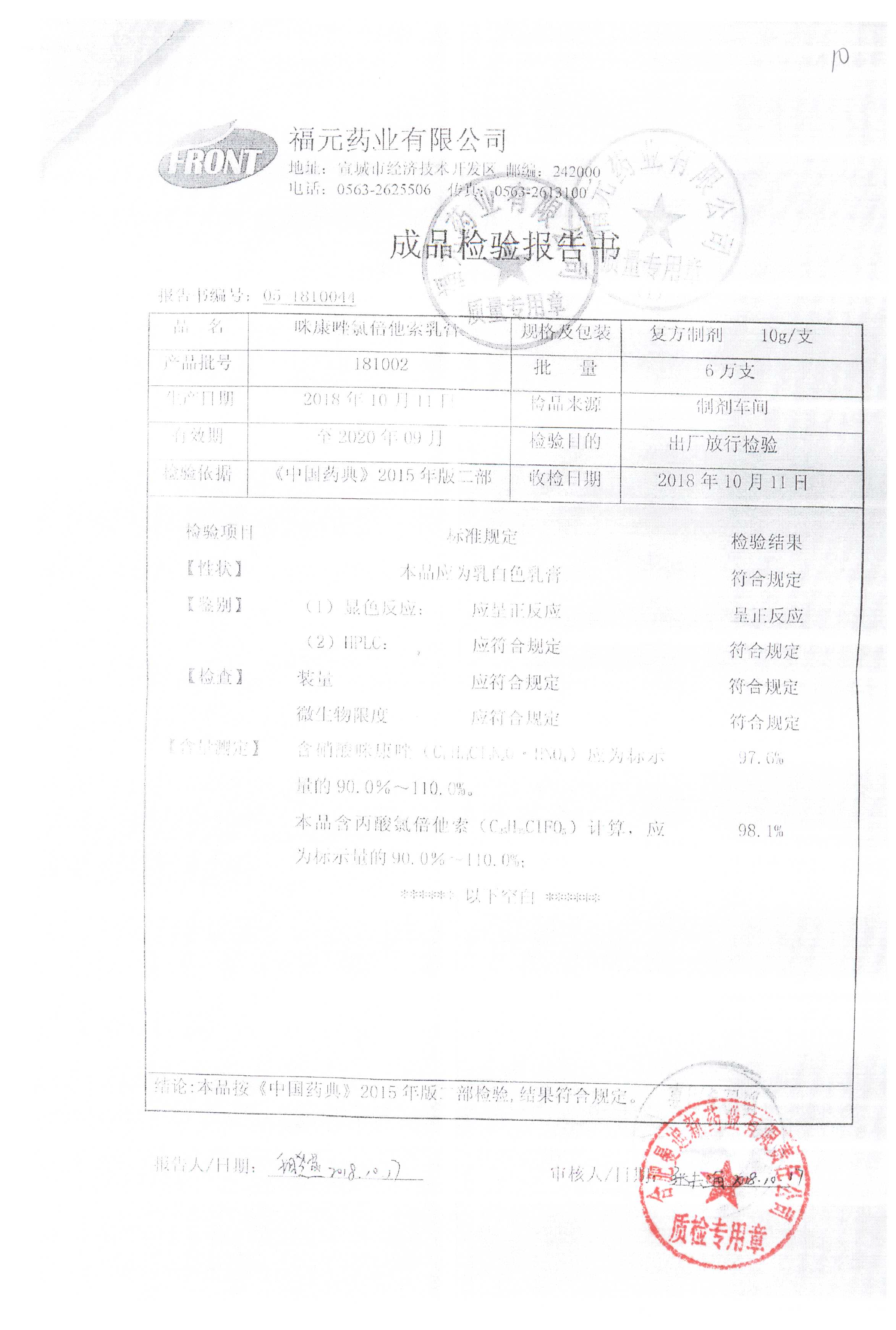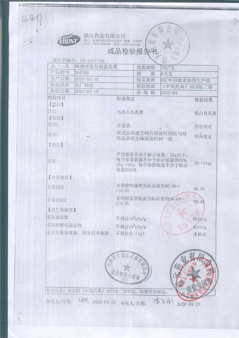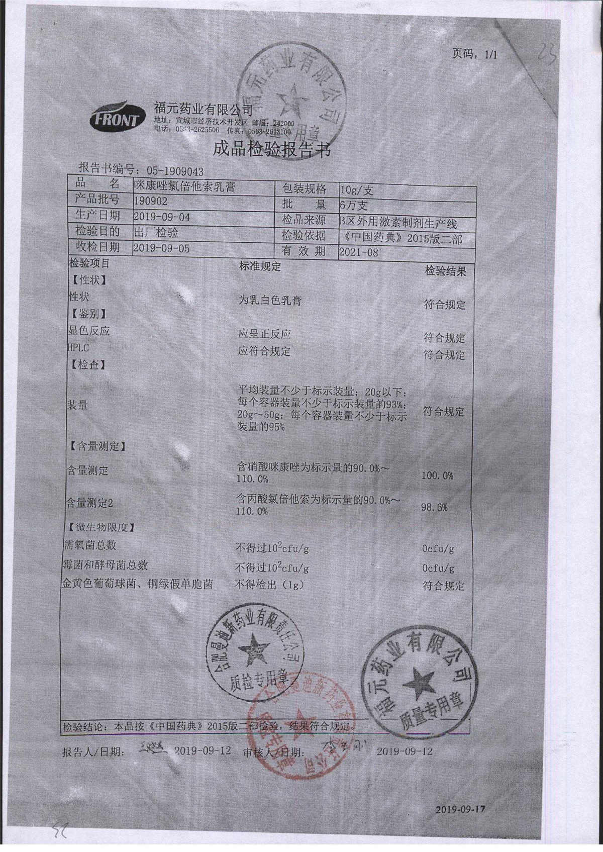 咪康唑氯倍他索乳膏 | 10g | 190902 | 查看详情 |