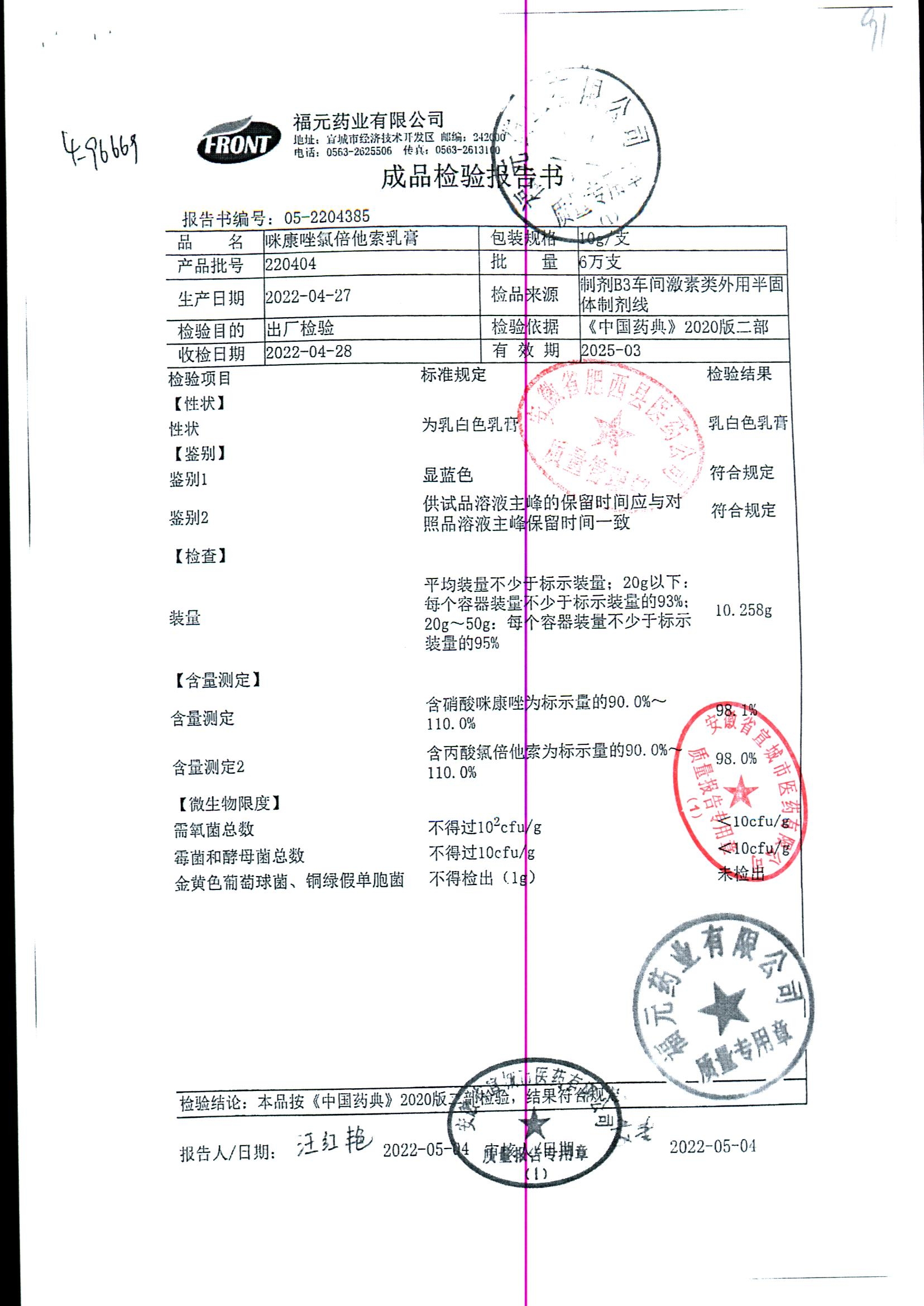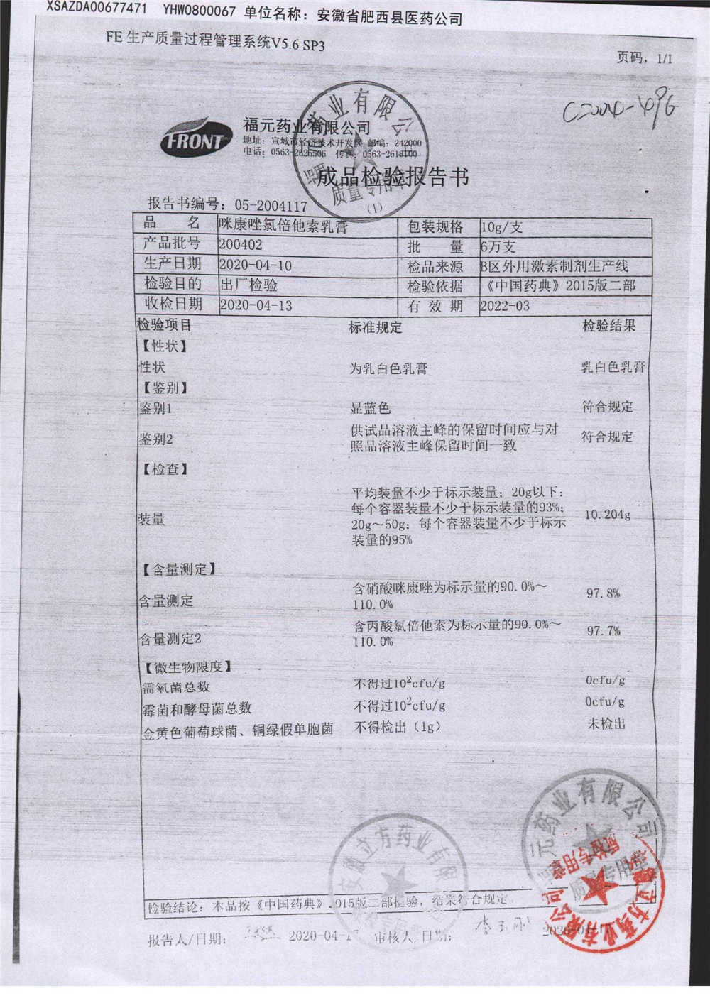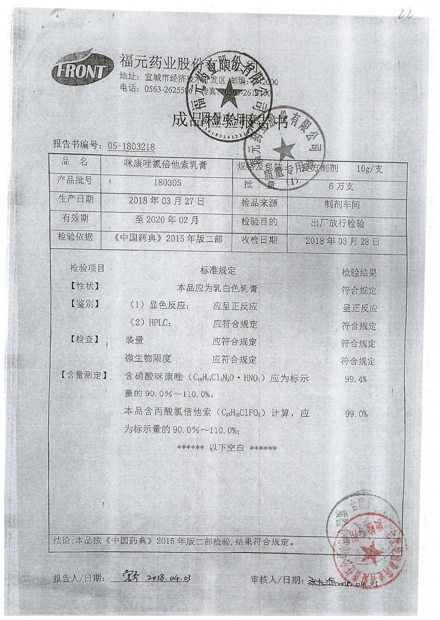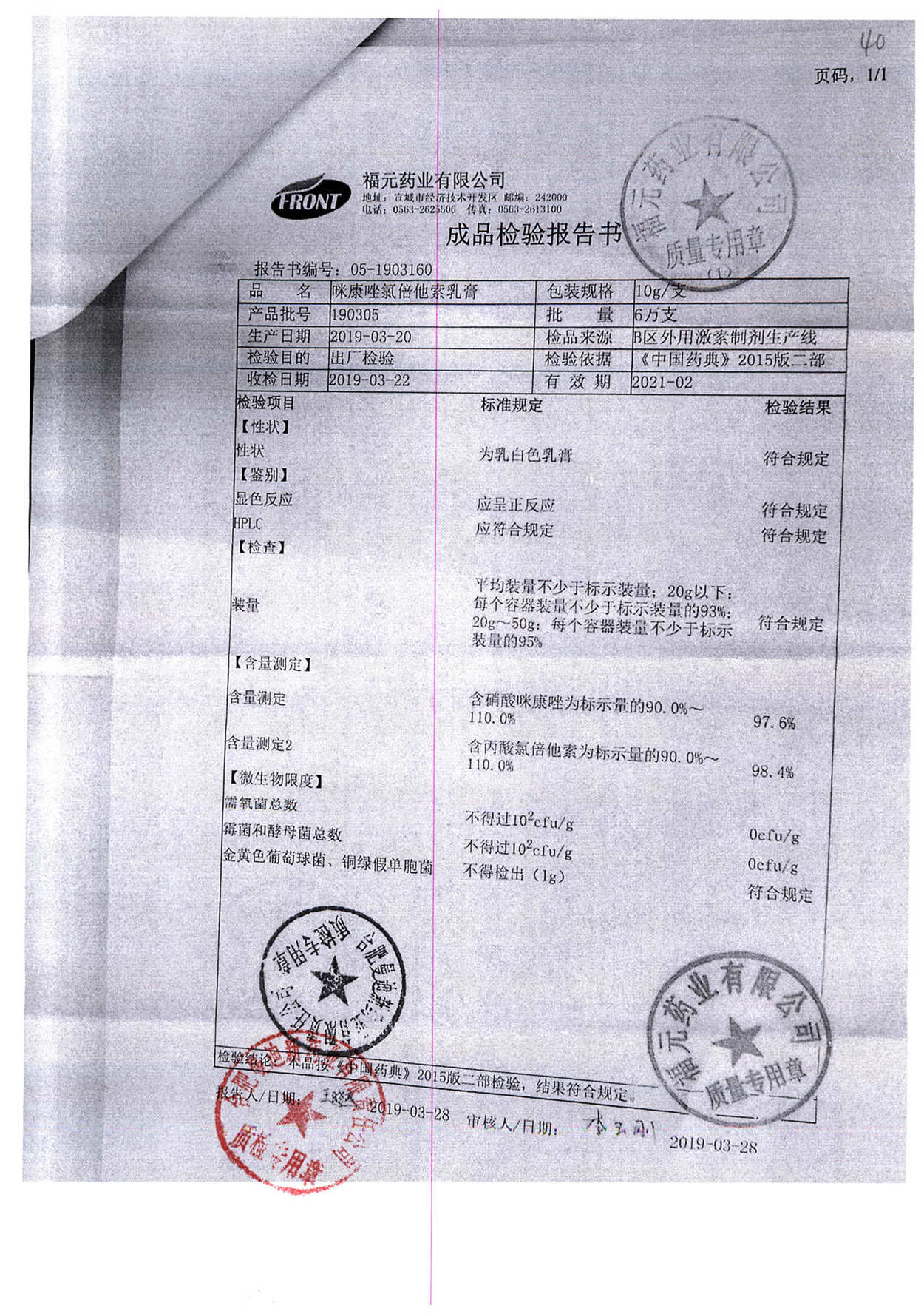 咪康唑氯倍他索乳膏 | 10g | 190402 | 查看详情 |