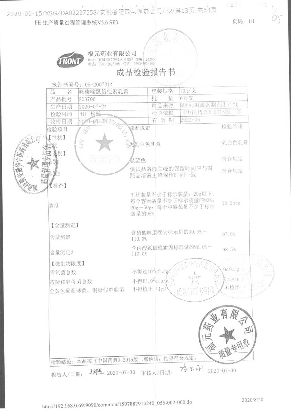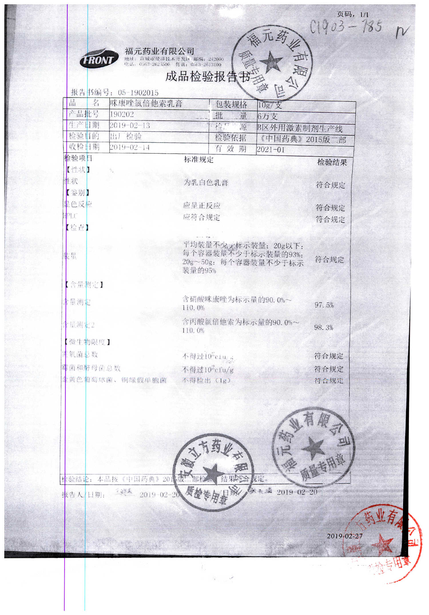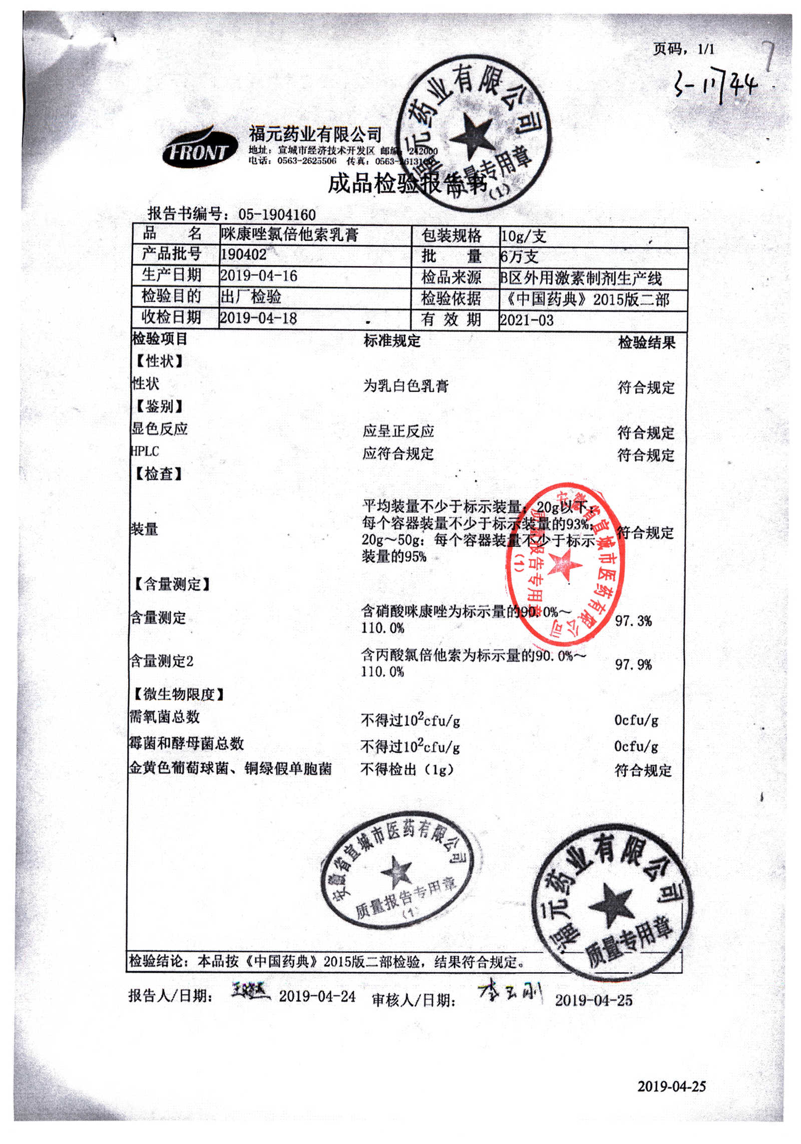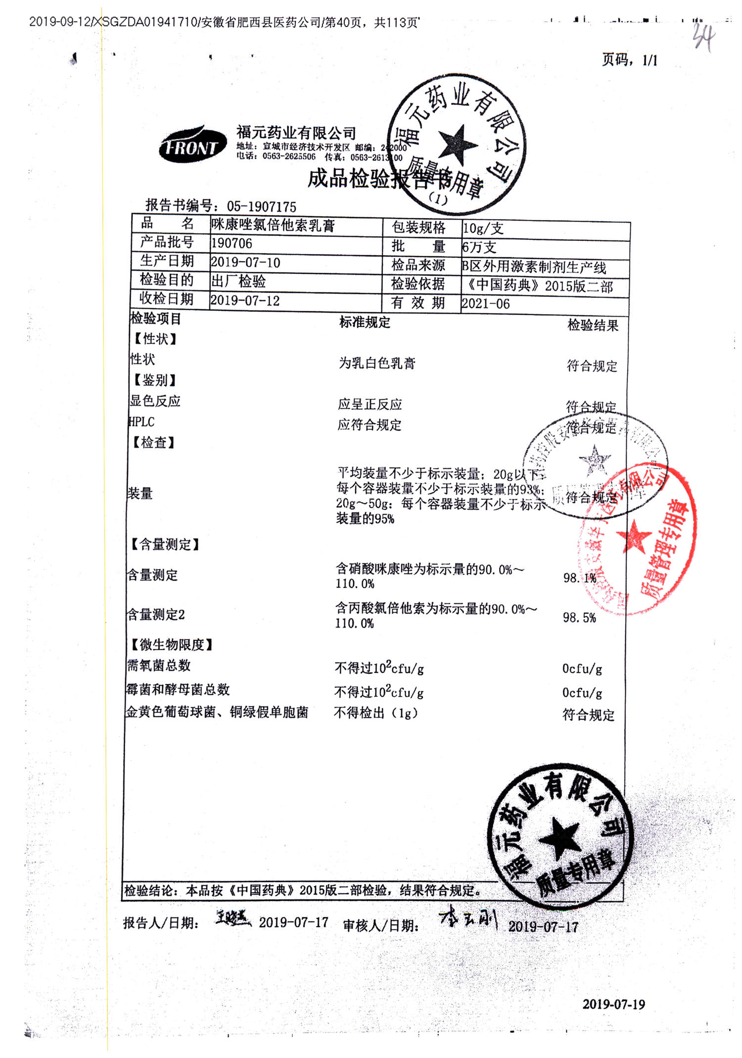 咪康唑氯倍他索乳膏 | 10g | 190706 | 查看详情 |