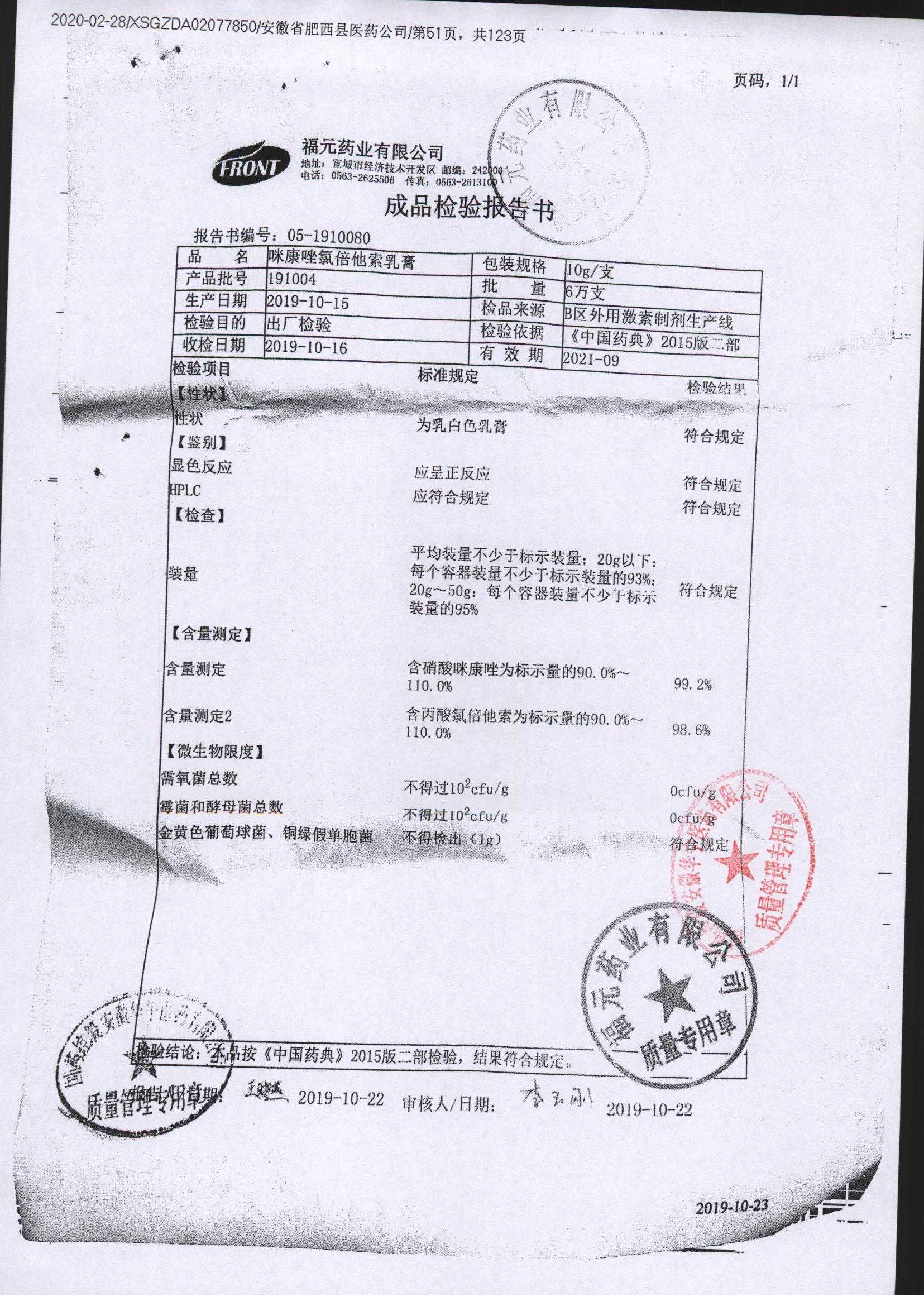 咪康唑氯倍他索乳膏 | 10g | 191004 | 查看详情 |