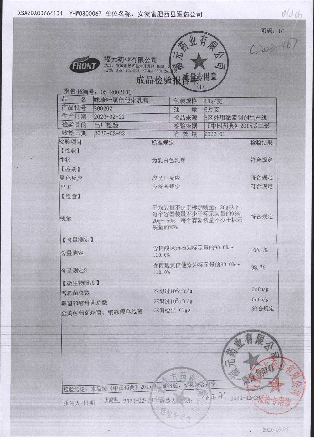 咪康唑氯倍他索乳膏 | 10g | 190202 | 查看详情 |
