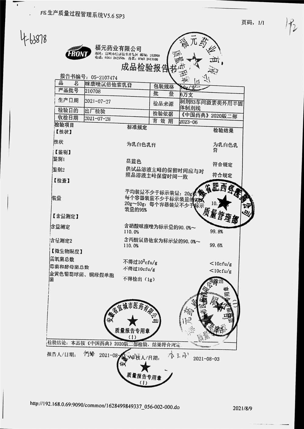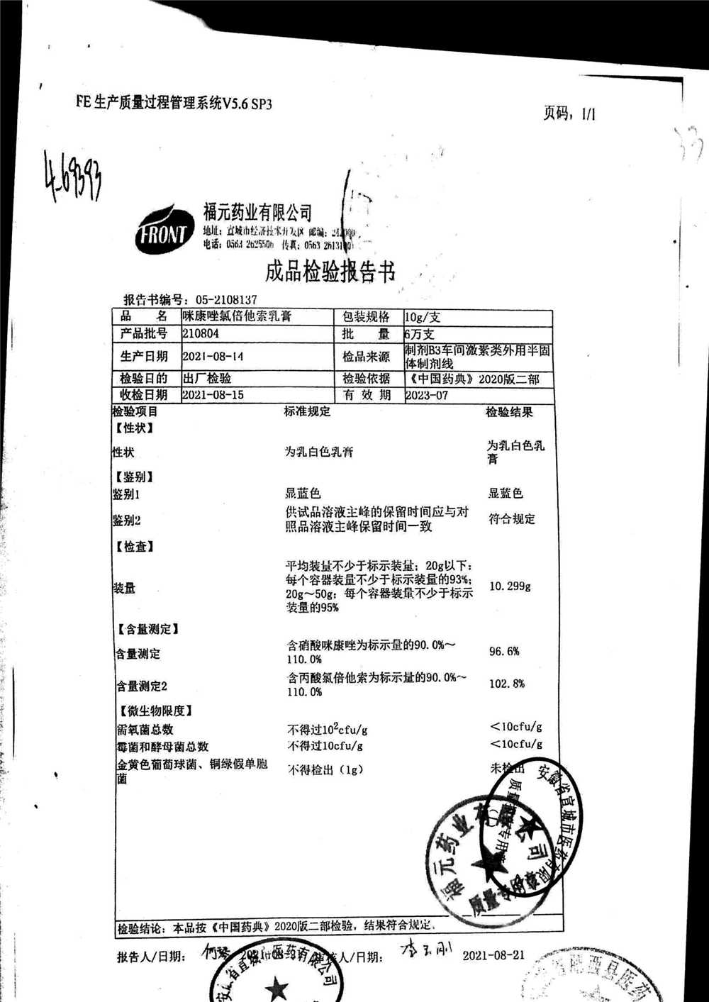 咪康唑氯倍他索乳膏 | 10g | 210804 | 查看详情 |