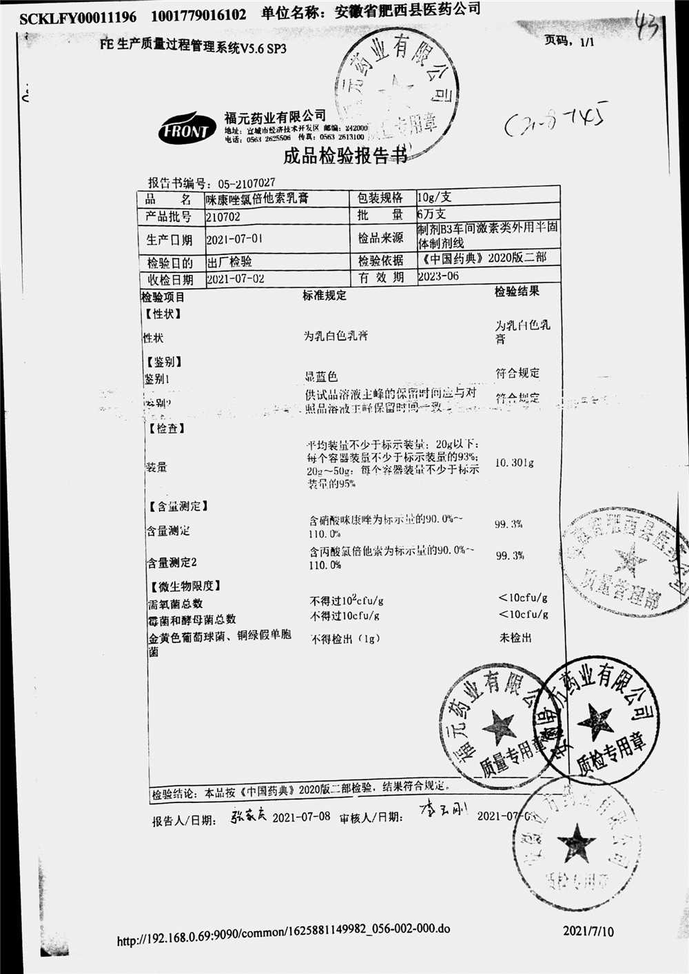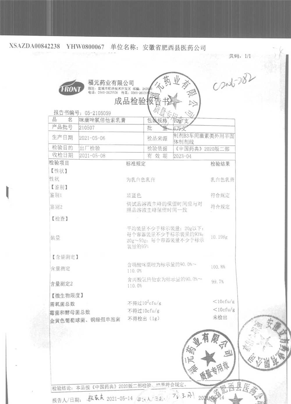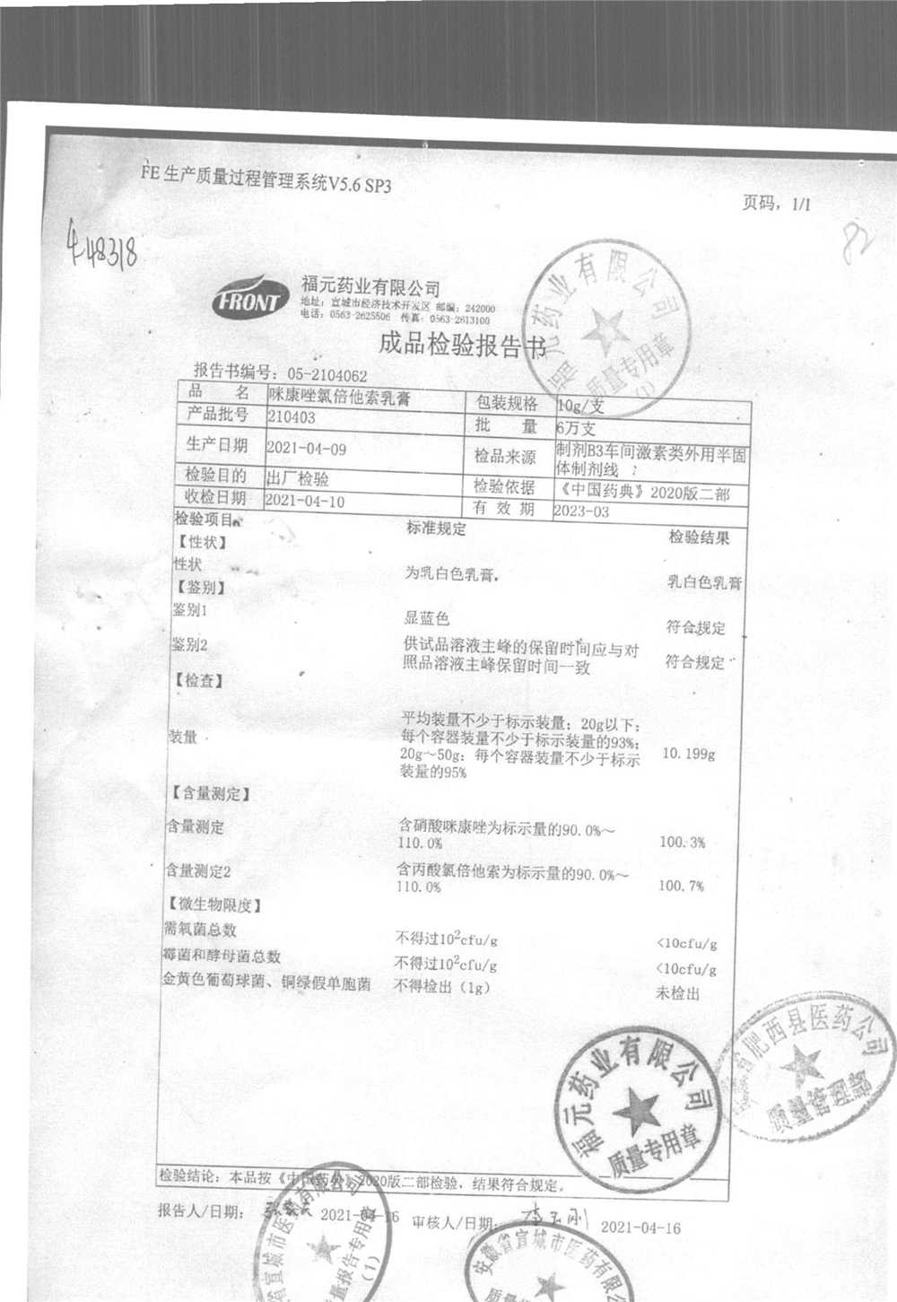 咪康唑氯倍他索乳膏 | 10g | 210507 | 查看详情 |